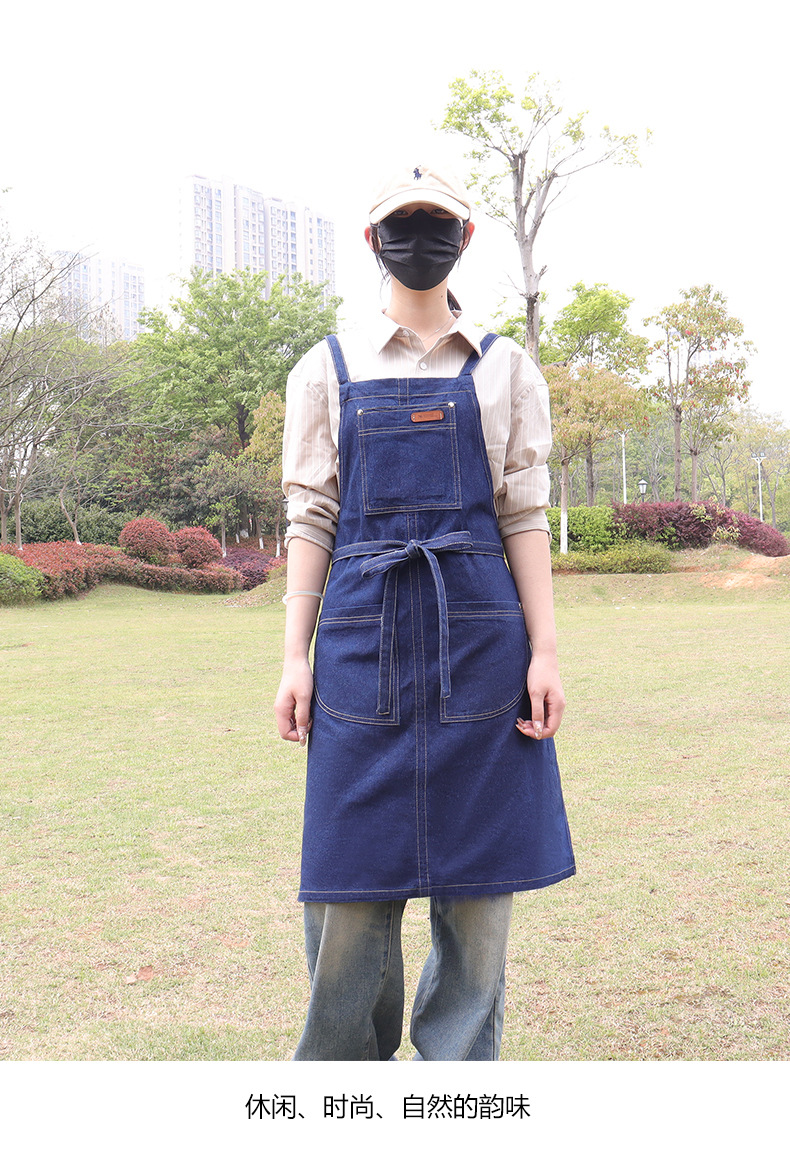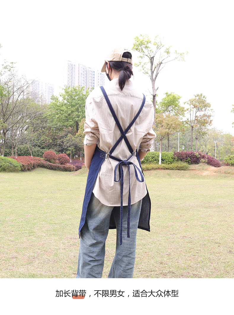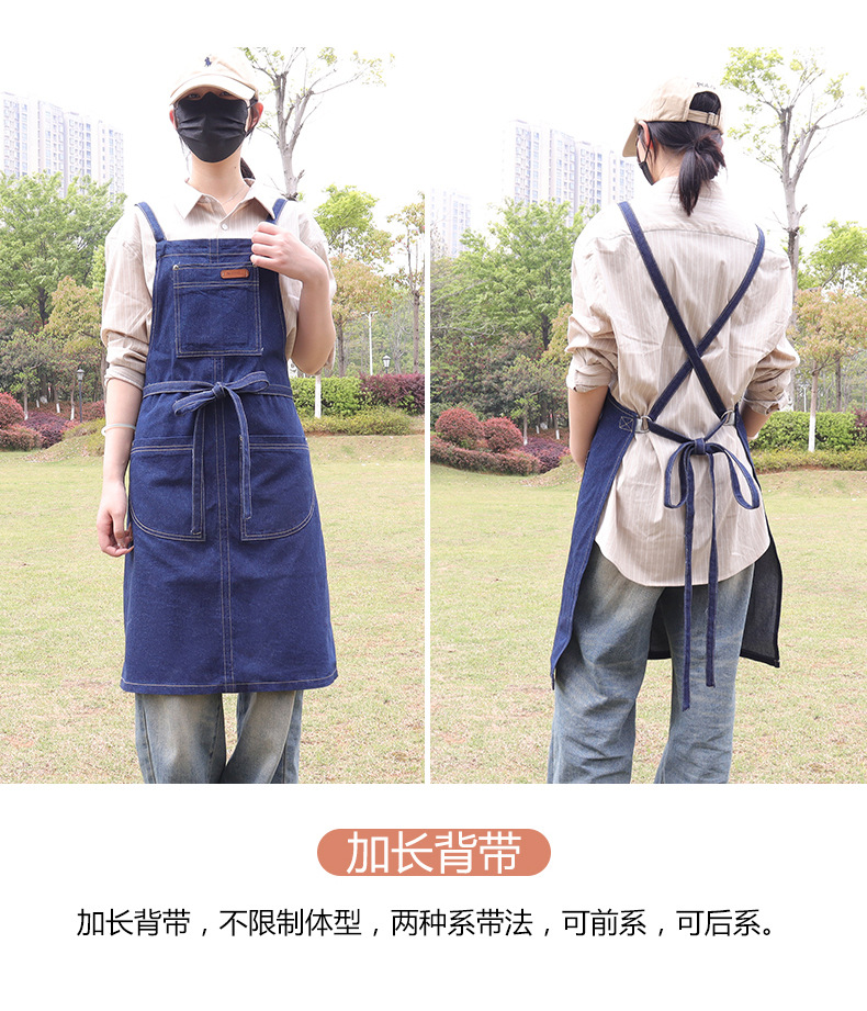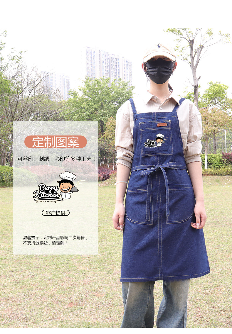 跨境直供日韩风水洗牛仔围裙广告家务围裙厨房围腰工作服批发定制