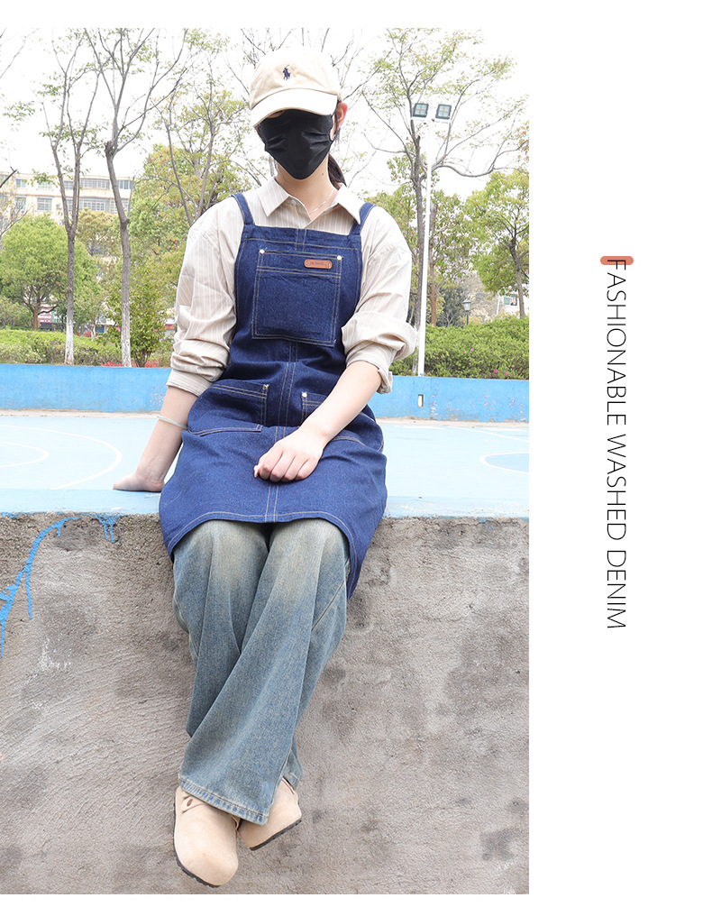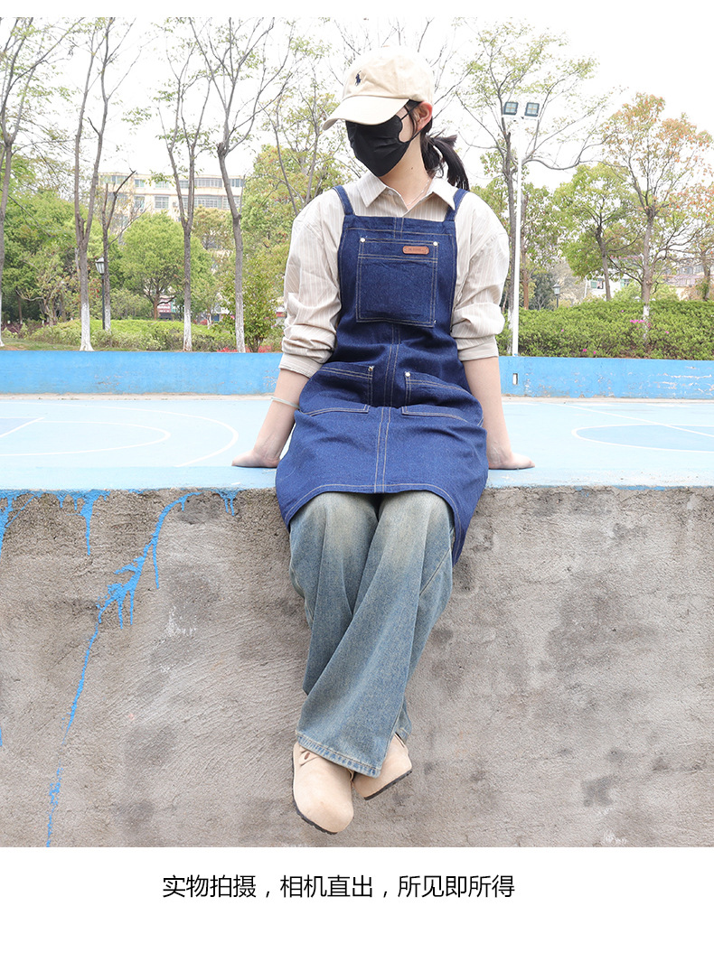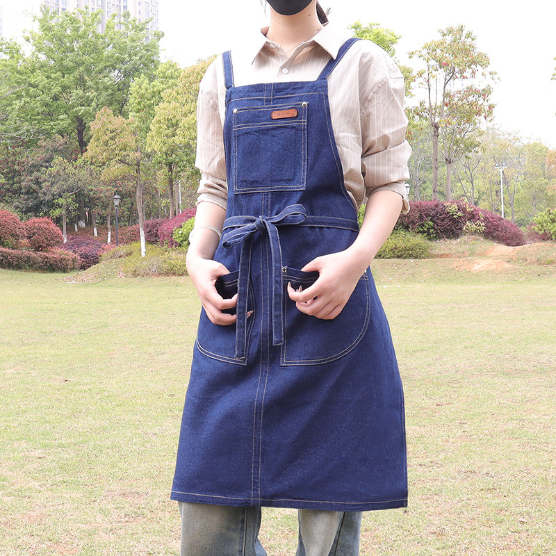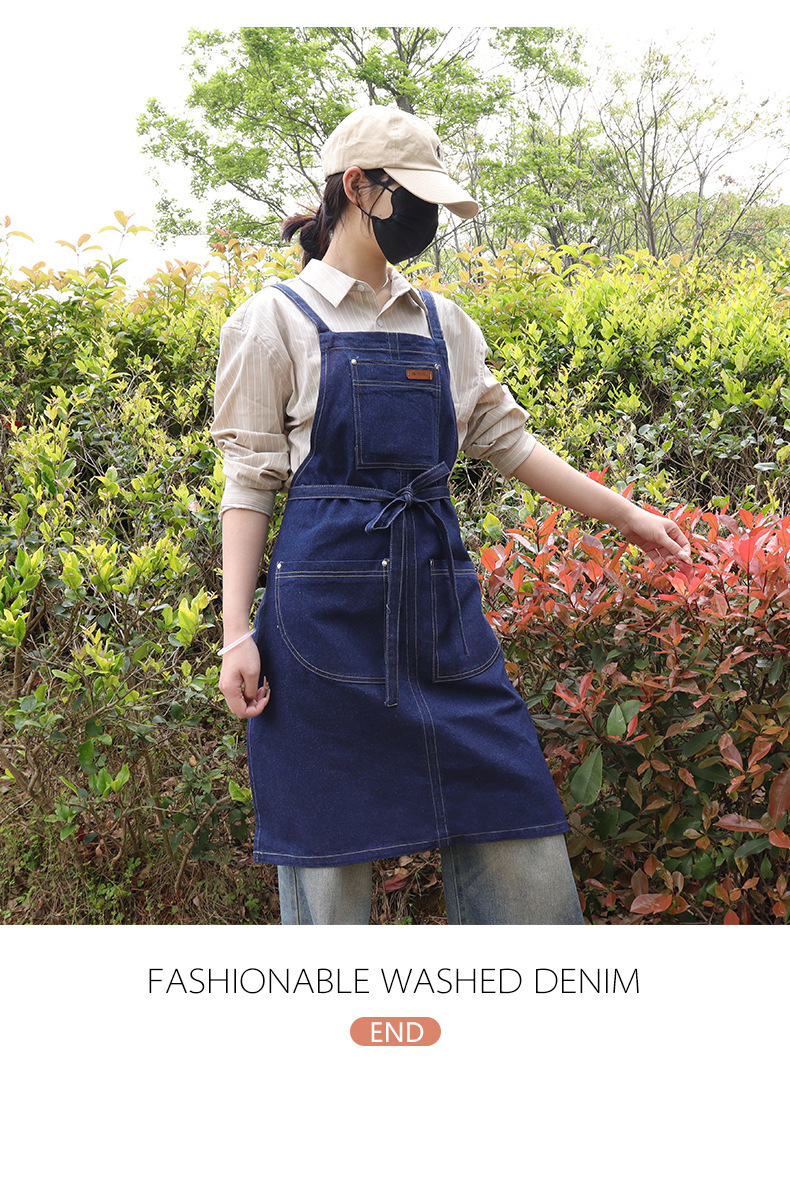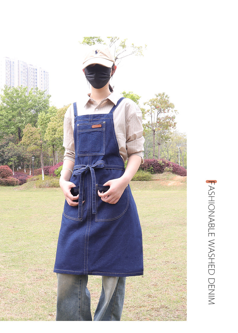 跨境直供日韩风水洗牛仔围裙广告家务围裙厨房围腰工作服批发定制