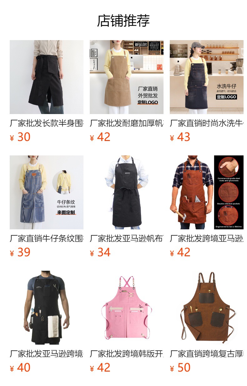 국경 간 수출 무역 일본 한국 면화 데님 광고 앞치마 주방 턱받이 작업복 도매 관습