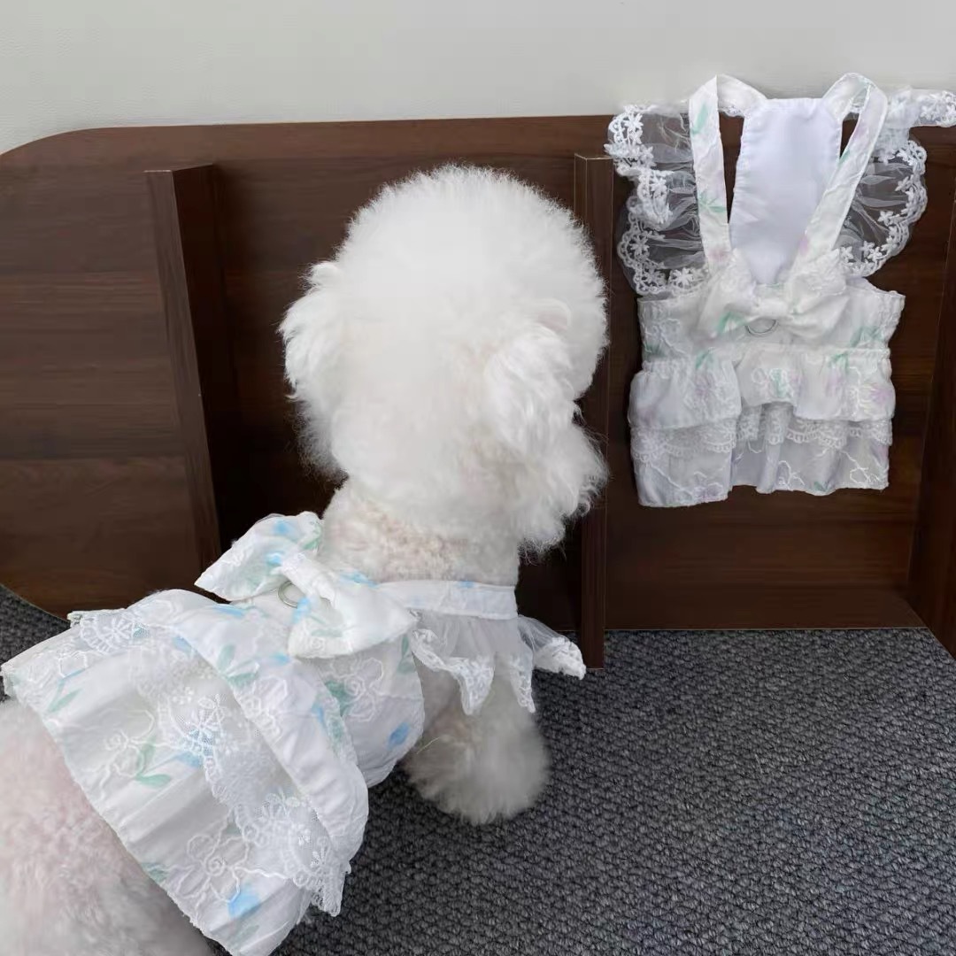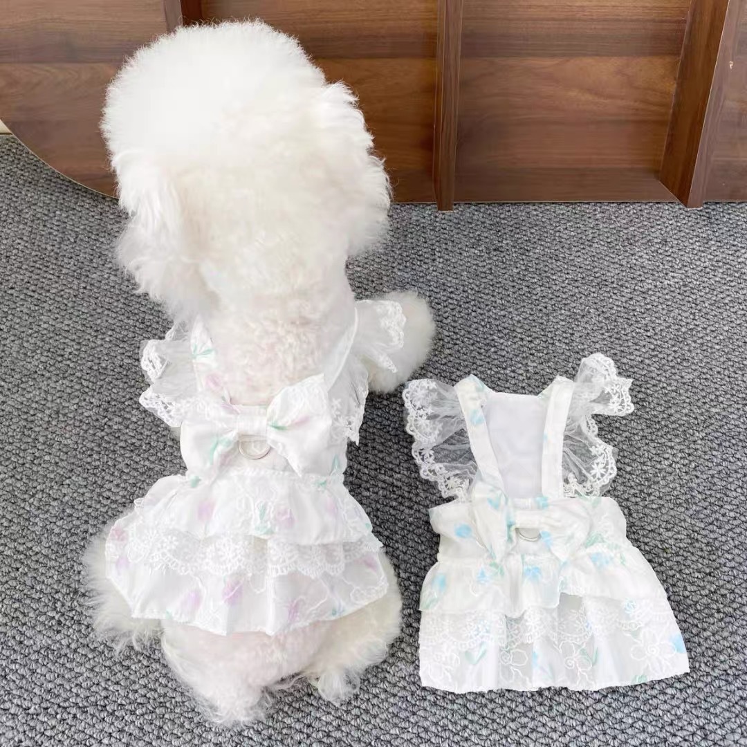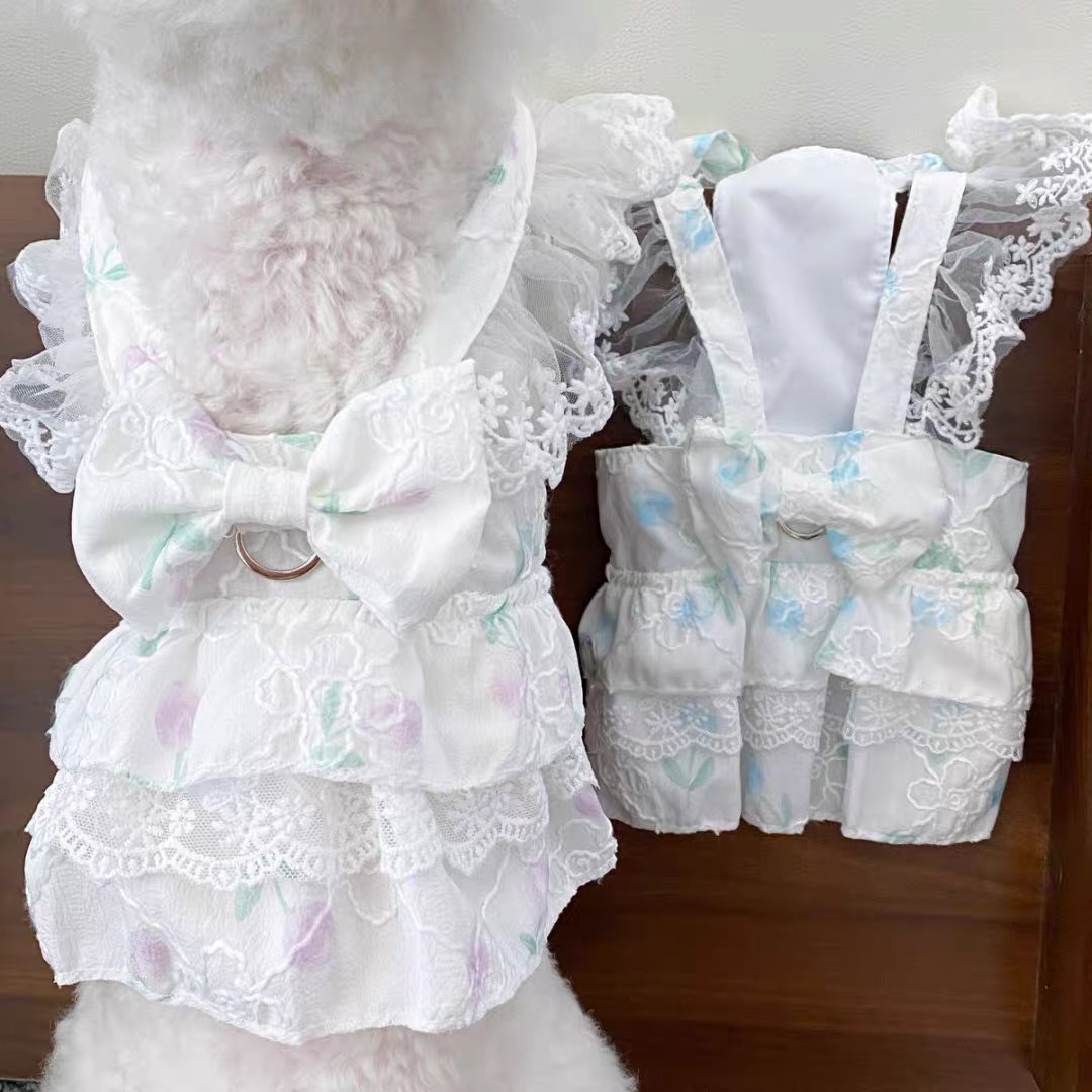 강아지 봄과 여름 신선한 중공 스커트 고양이 개 꽃 원피스 작고 중간 크기의 진동 치마 애완 동물 옷스토어 가기
