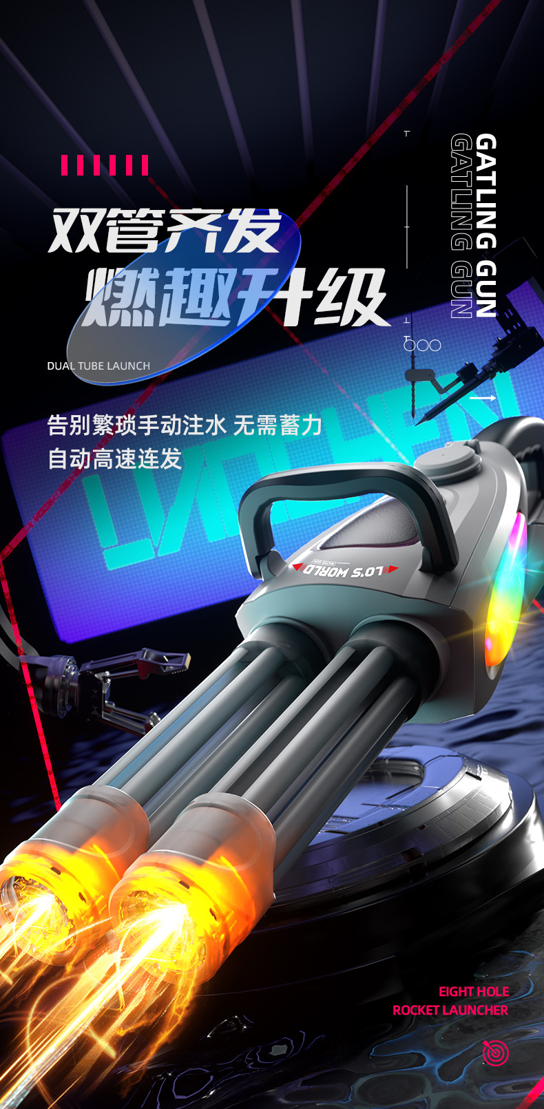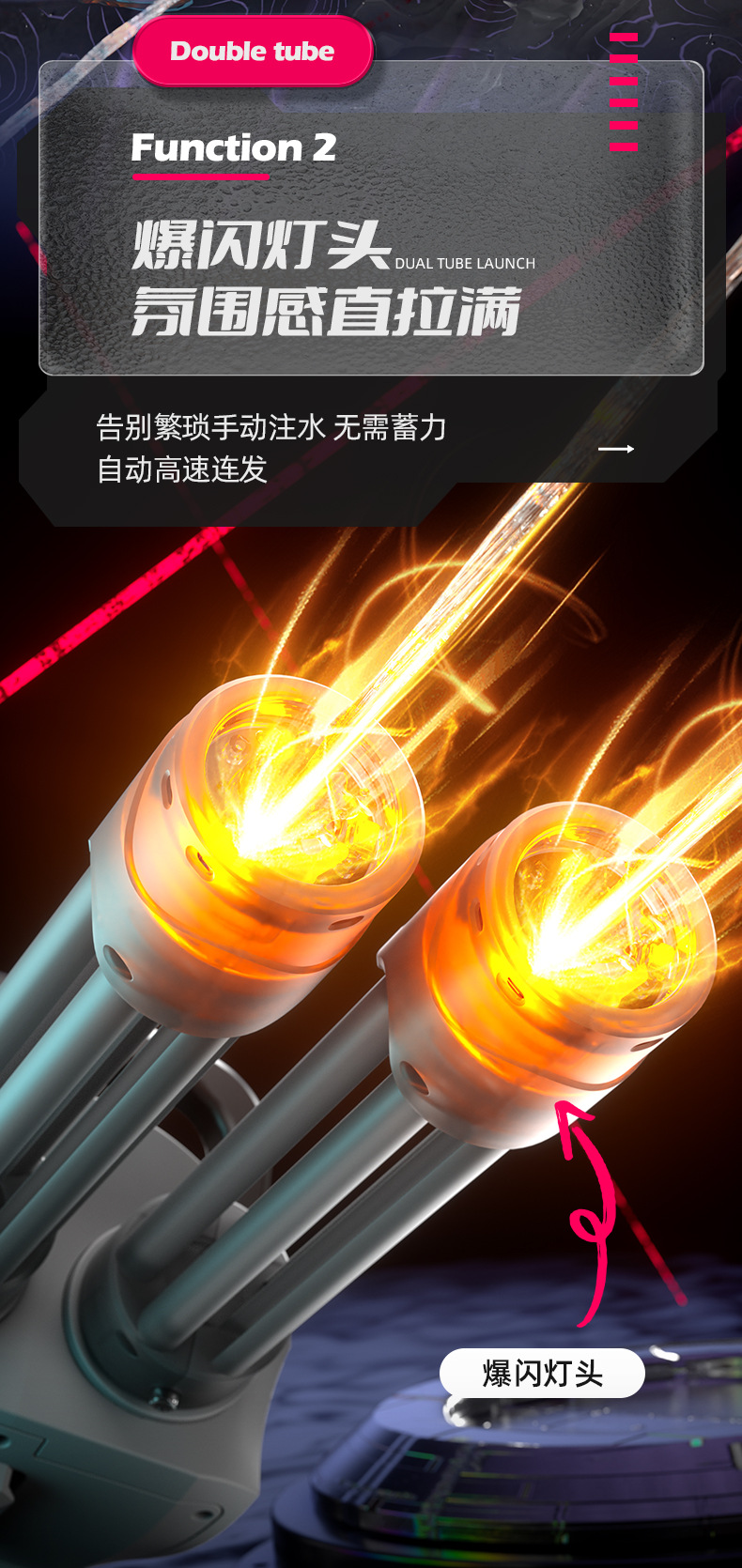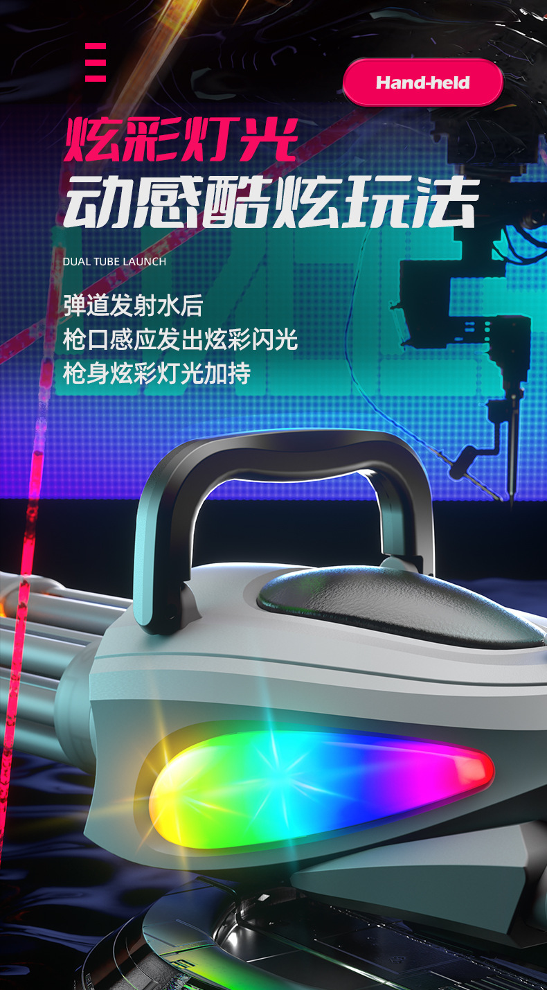跨境火光双管加特林水枪玩具大容量酷炫流光电动连发喷水枪射程远