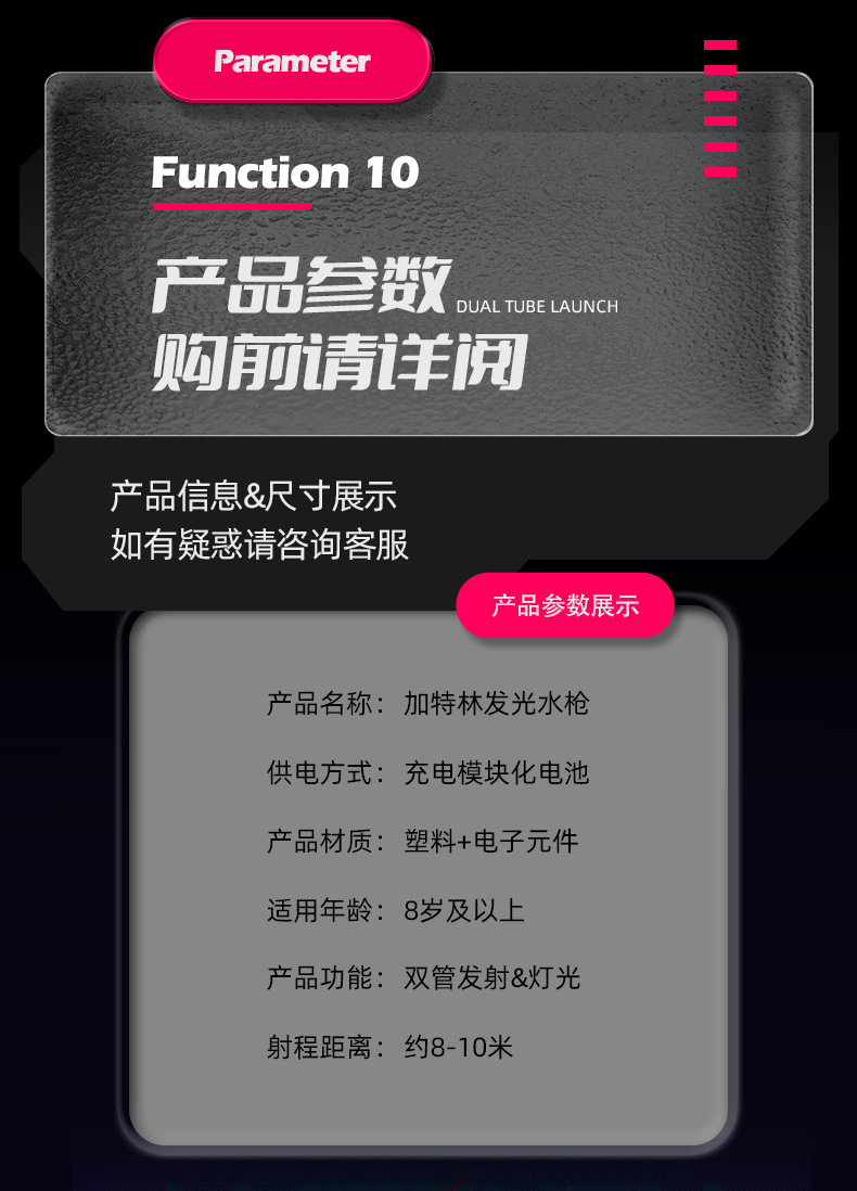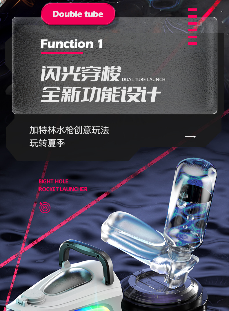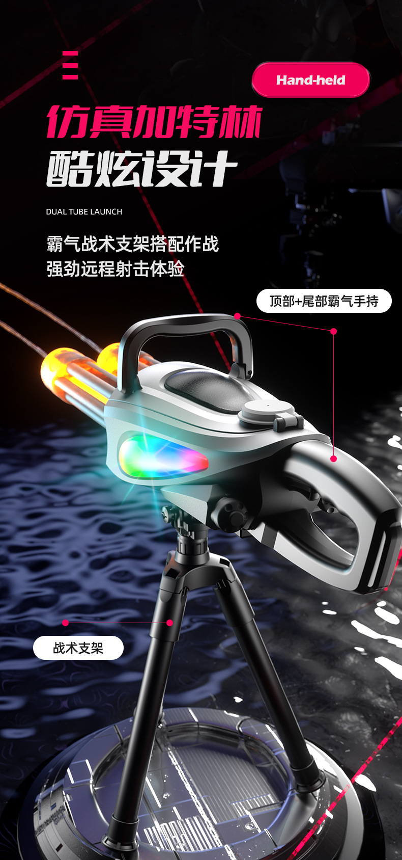 跨境火光双管加特林水枪玩具大容量酷炫流光电动连发喷水枪射程远