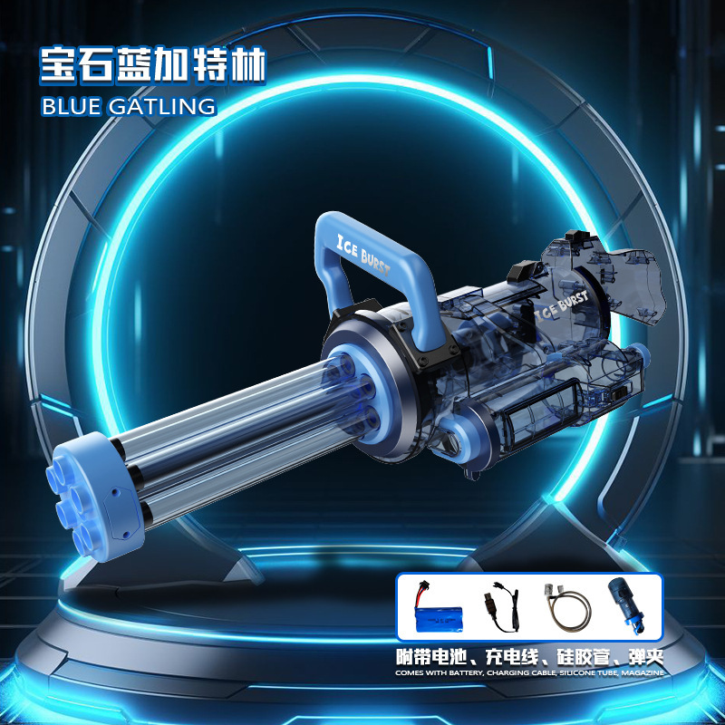 跨境冰爆加特林水枪大号抢大容量电动连发滋水枪酷炫灯光水枪批发