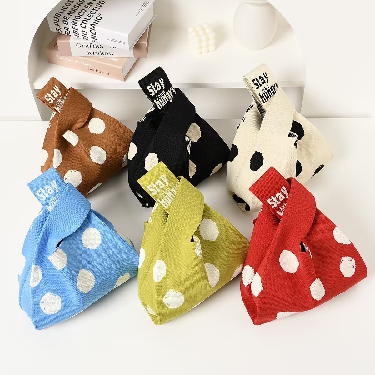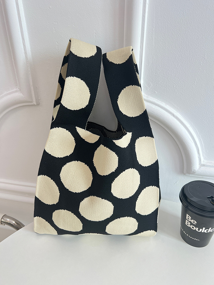 하이 엔드 폴카 도트 흑백 폴카 도트 니트 가방 대용량 토트 백 학생 짠 핸드백 핸드백 여성용 가방스토어 가기