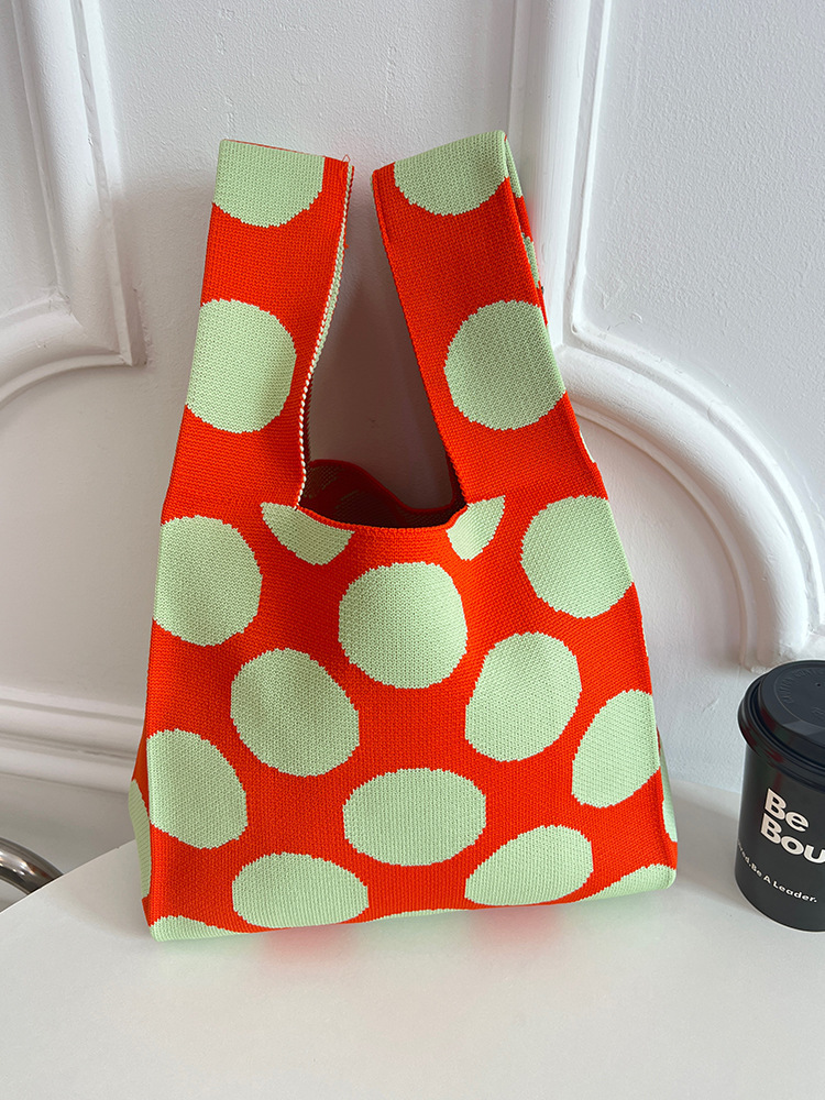 하이 엔드 폴카 도트 흑백 폴카 도트 니트 가방 대용량 토트 백 학생 짠 핸드백 핸드백 여성용 가방