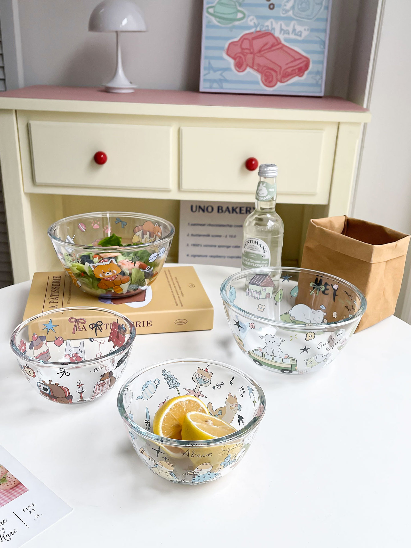 봄 메신저 시리즈 고붕소 유리 가정용 다기능 및 세면대 샐러드 그릇 내열성 두꺼운 국수 그릇스토어 가기