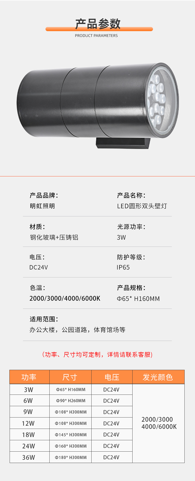 • Ф65* H160MM 3W 더블 헤드 벽 조명