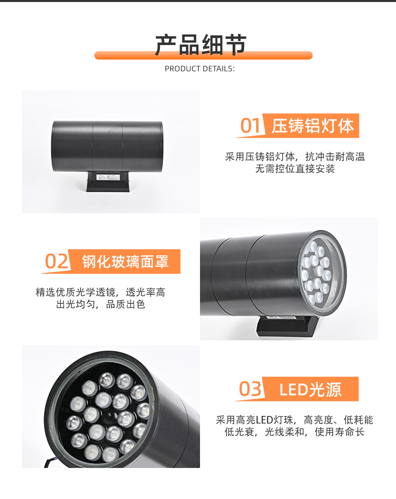 • Ф180* H200MM 36W 단일 헤드 벽 조명