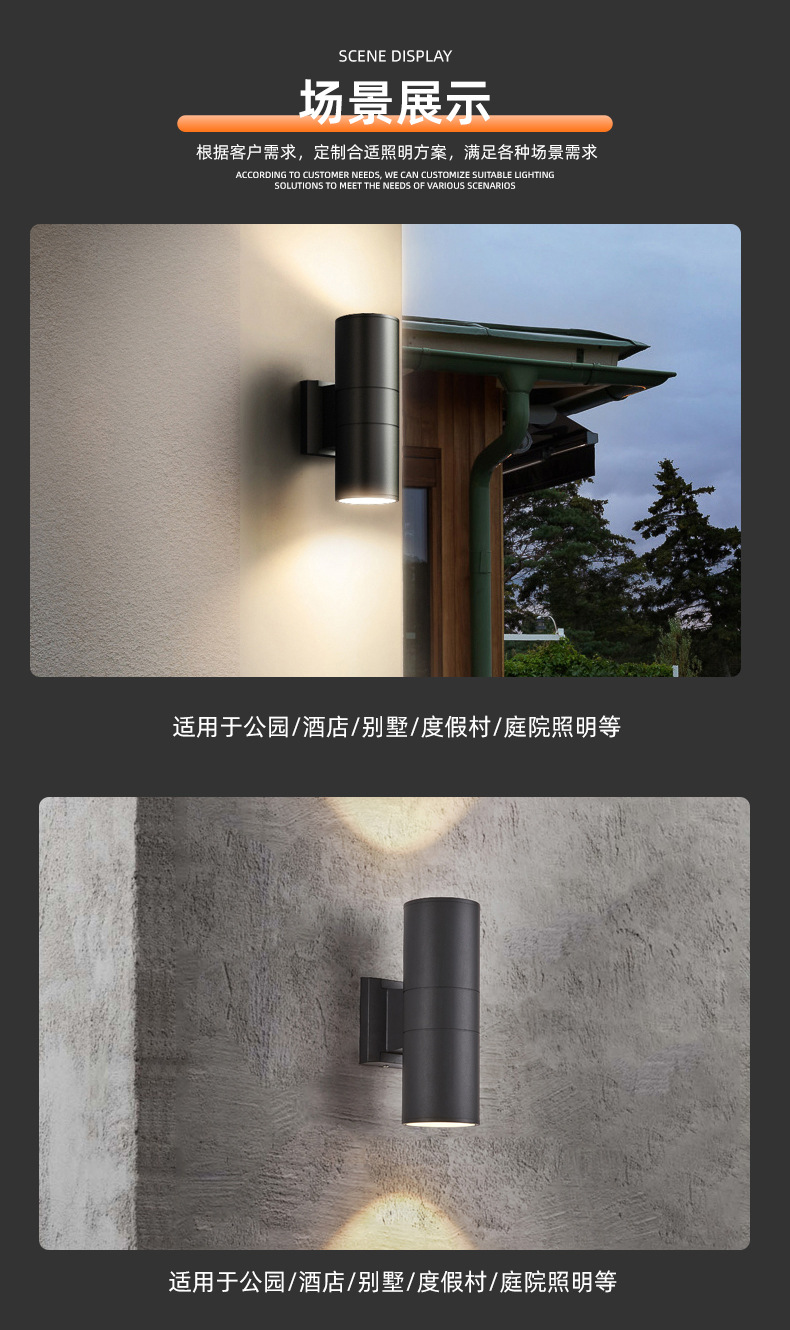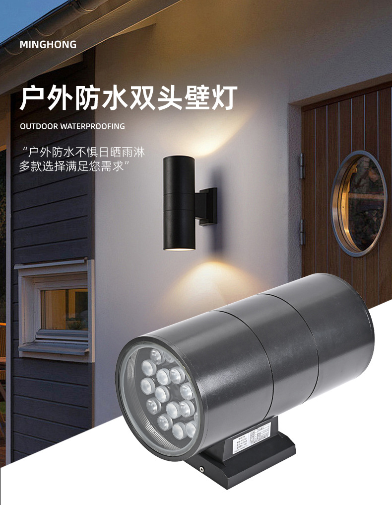 도매 안뜰 외벽 문 기둥 위아래로 빛나는 스포트라이트 라운드 외부 벽 램프 LED 야외 방수 벽 램프스토어 가기