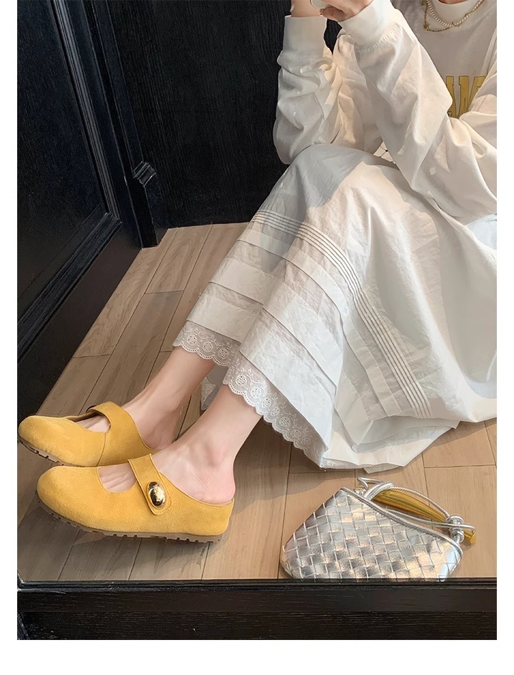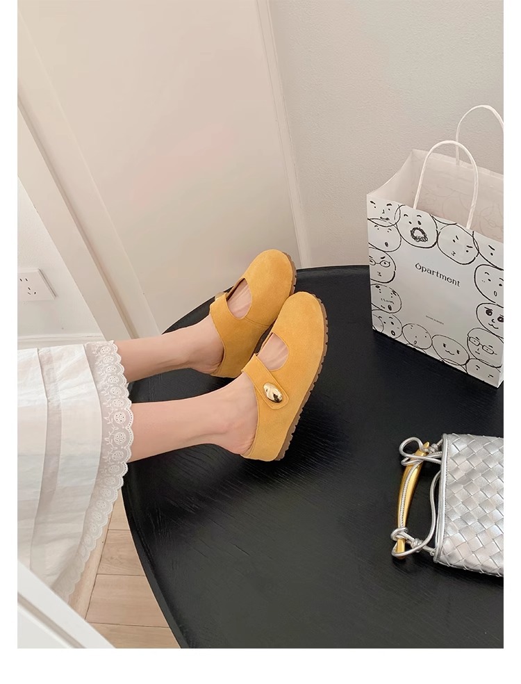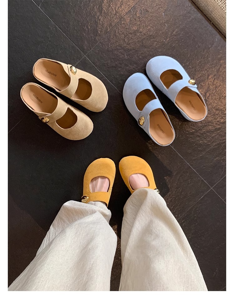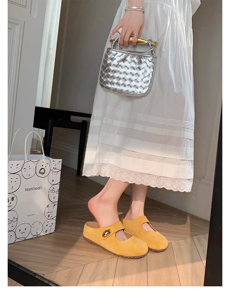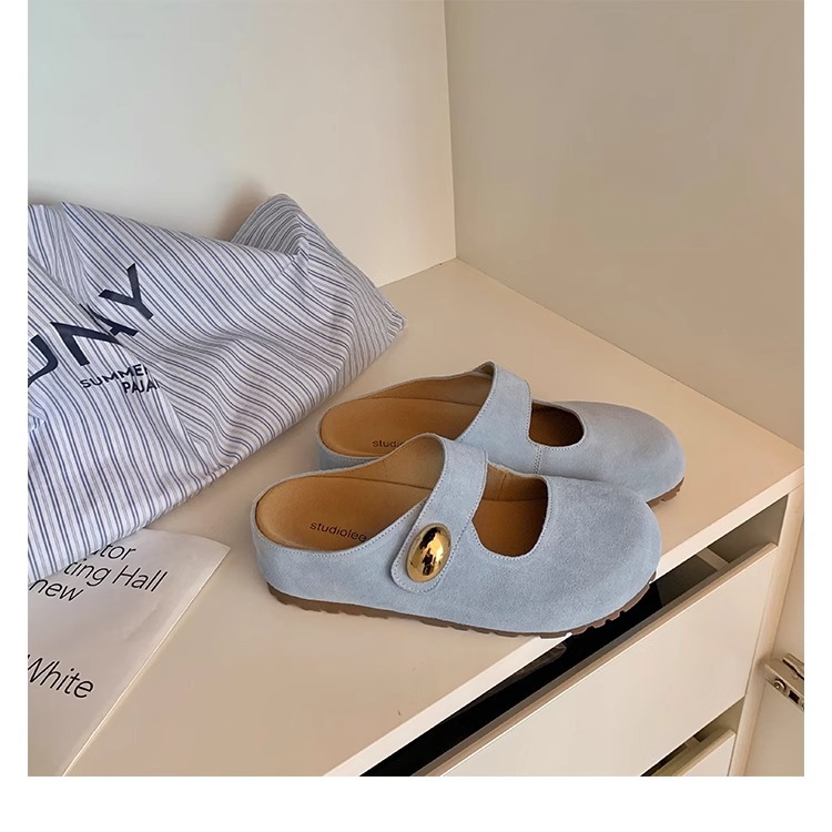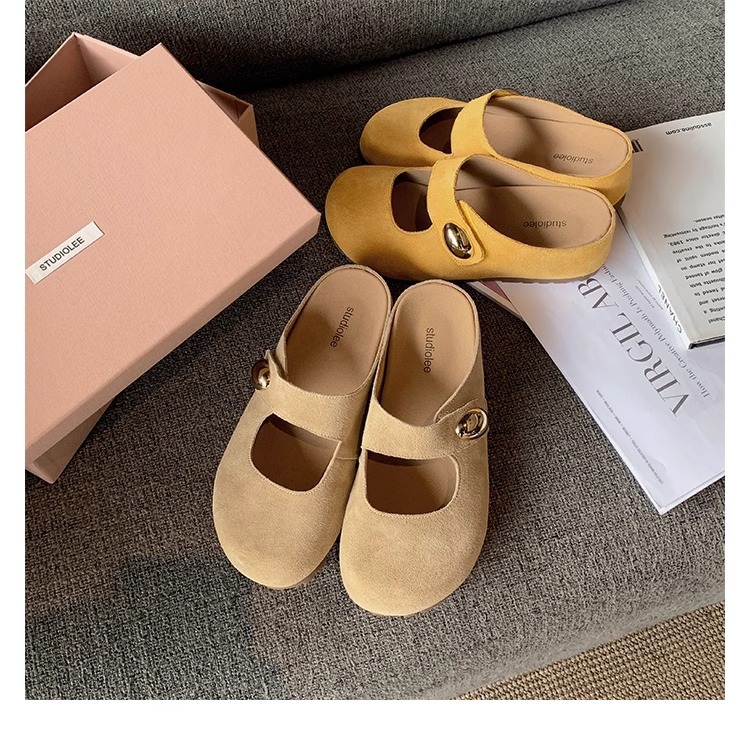 포도맘과 같은 스타일 2026년 신상 천연가죽 두꺼운 밑창 작은 금콩 모양의 여성용 슬리퍼, 내부 키높이 5CM 여성화스토어 가기