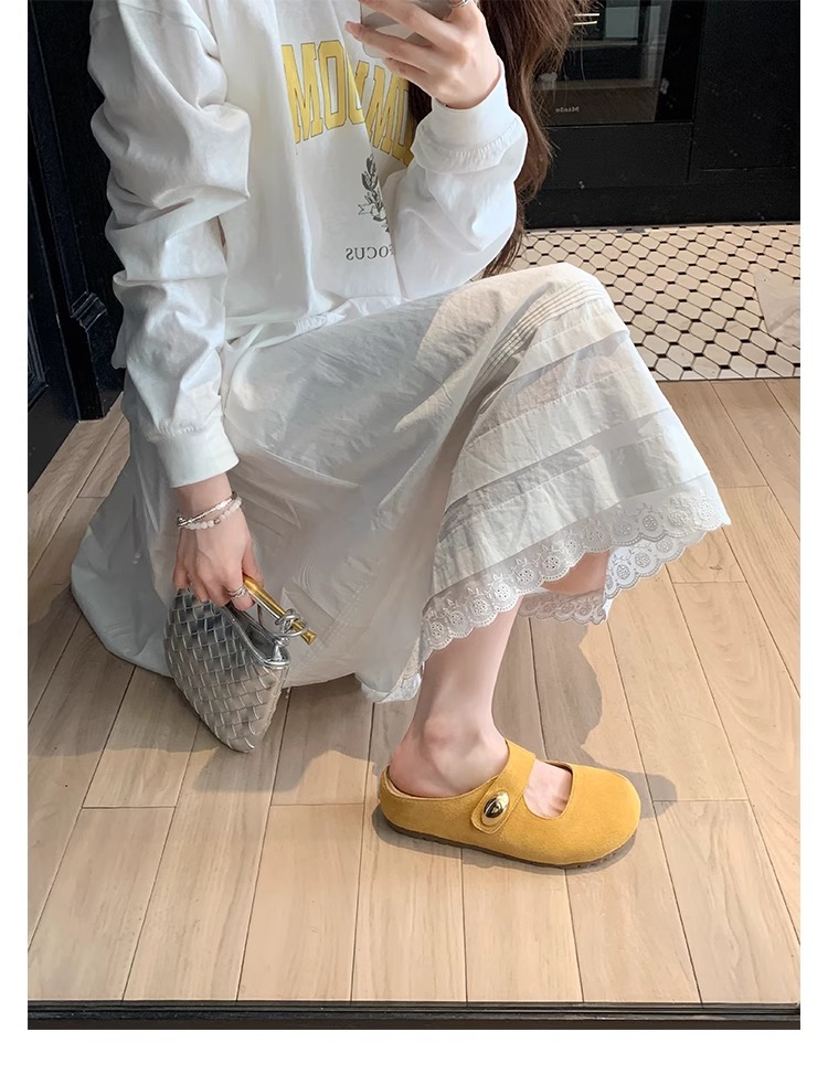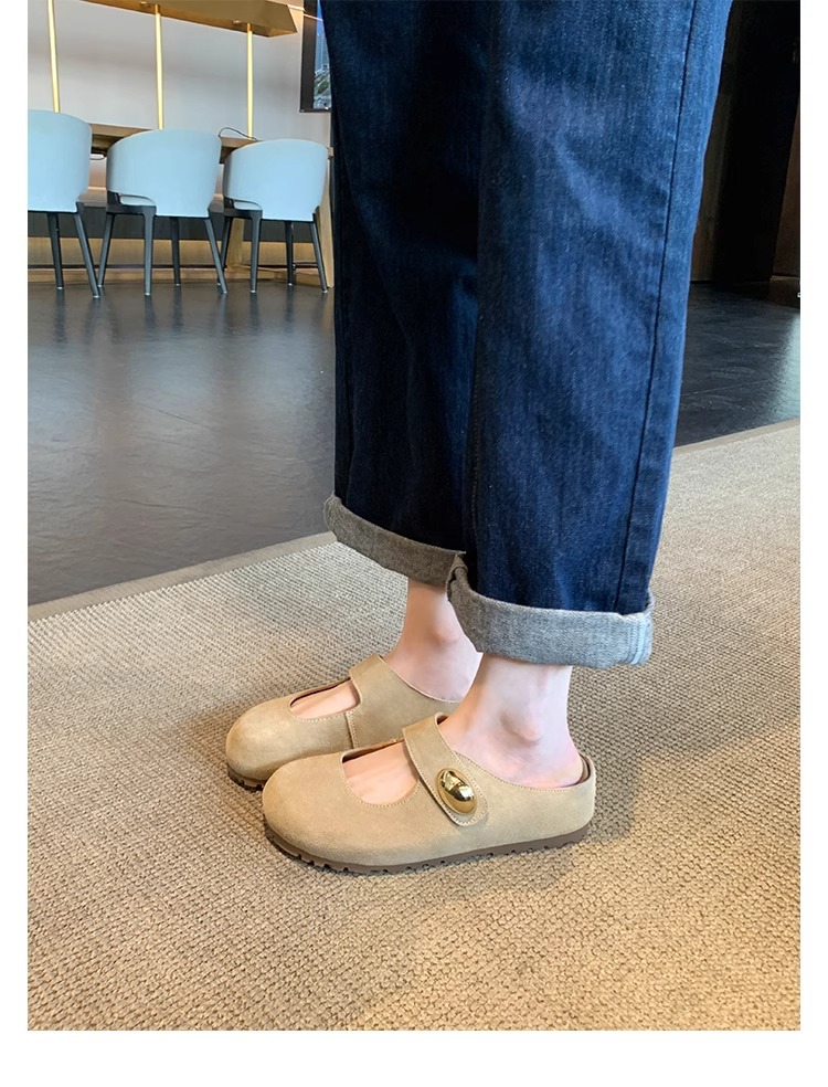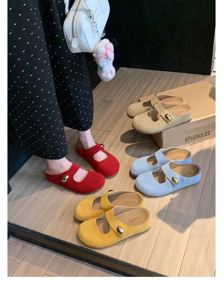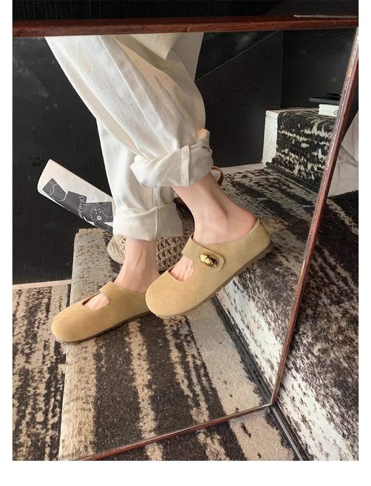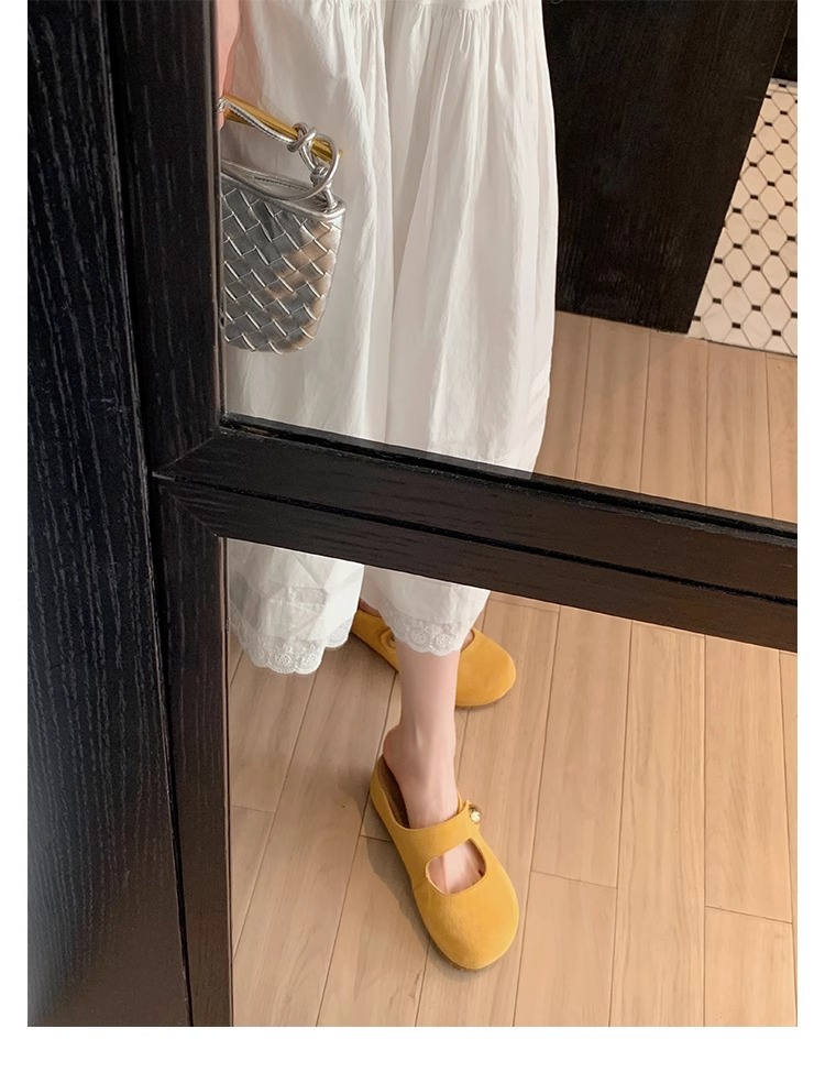 포도맘과 같은 스타일 2026년 신상 천연가죽 두꺼운 밑창 작은 금콩 모양의 여성용 슬리퍼, 내부 키높이 5CM 여성화스토어 가기