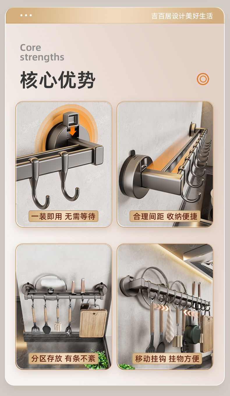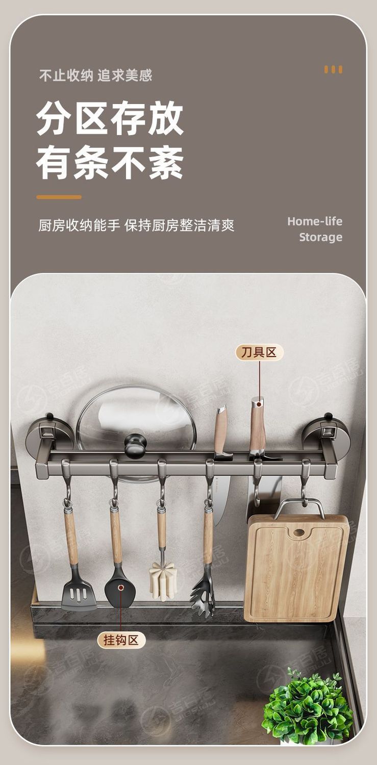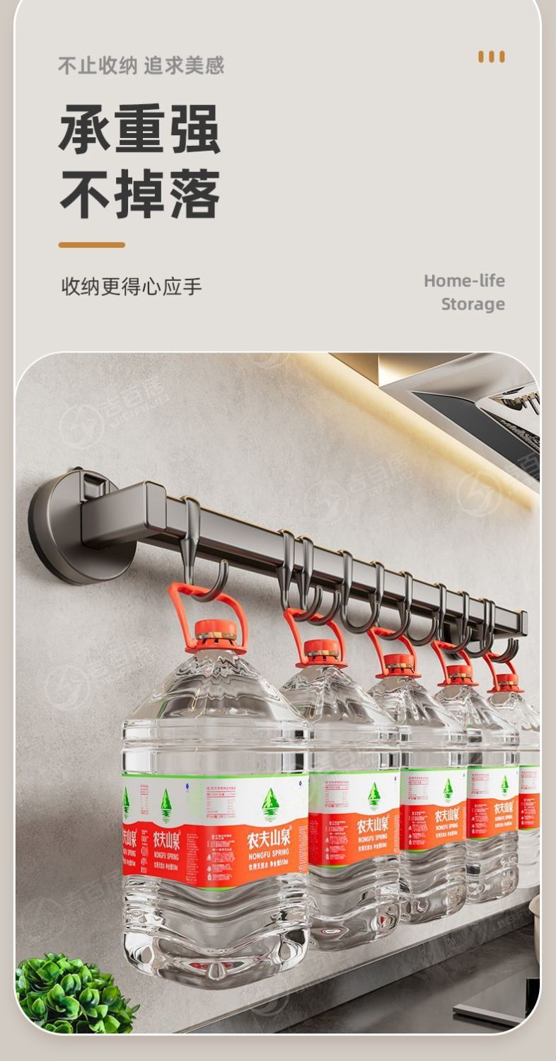 공장 공급 주방 후크 랙 비 천공 흡입 컵 후크 랙 다기능 캐비닛 스푼 스토리지 랙