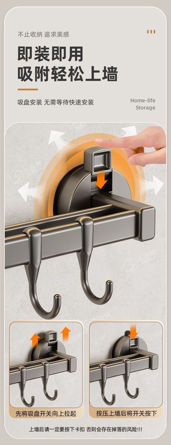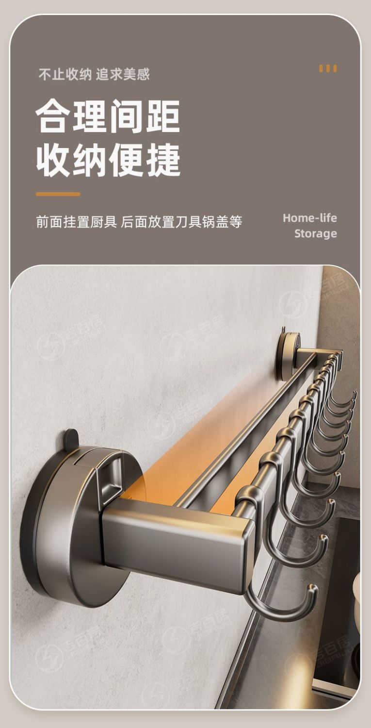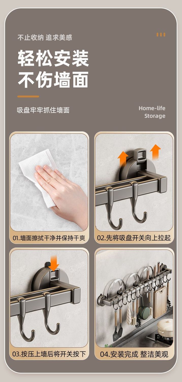 공장 공급 주방 후크 랙 비 천공 흡입 컵 후크 랙 다기능 캐비닛 스푼 스토리지 랙