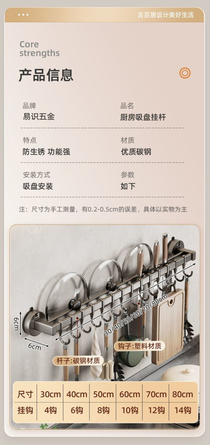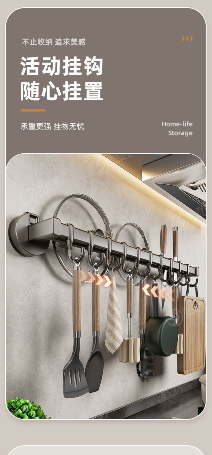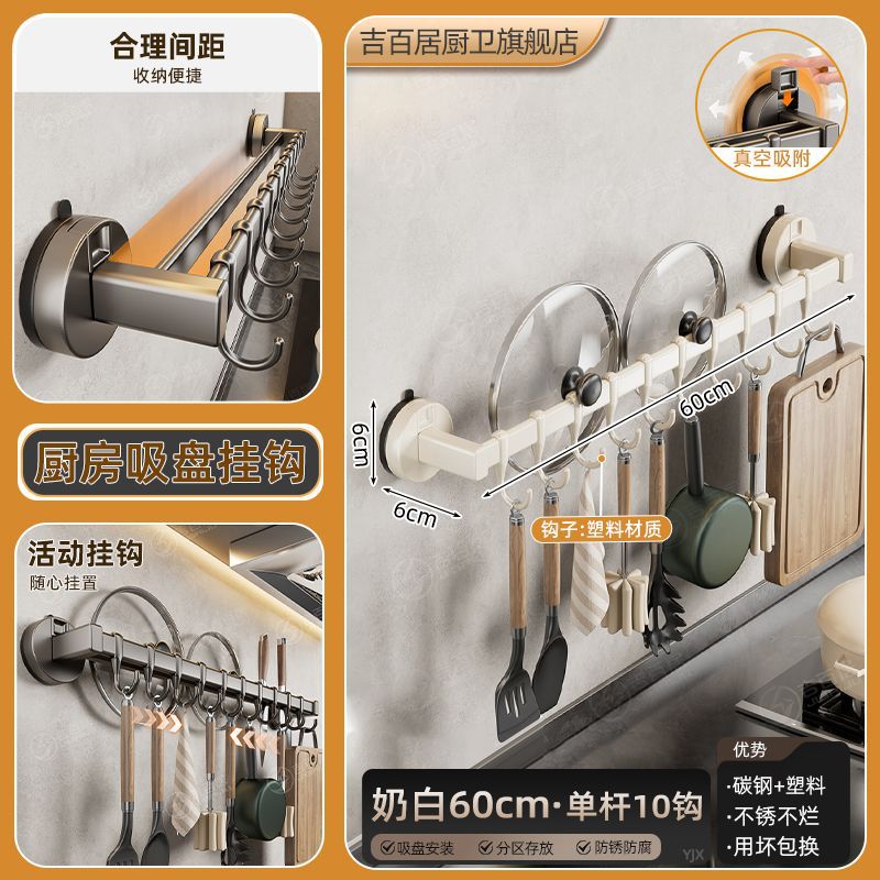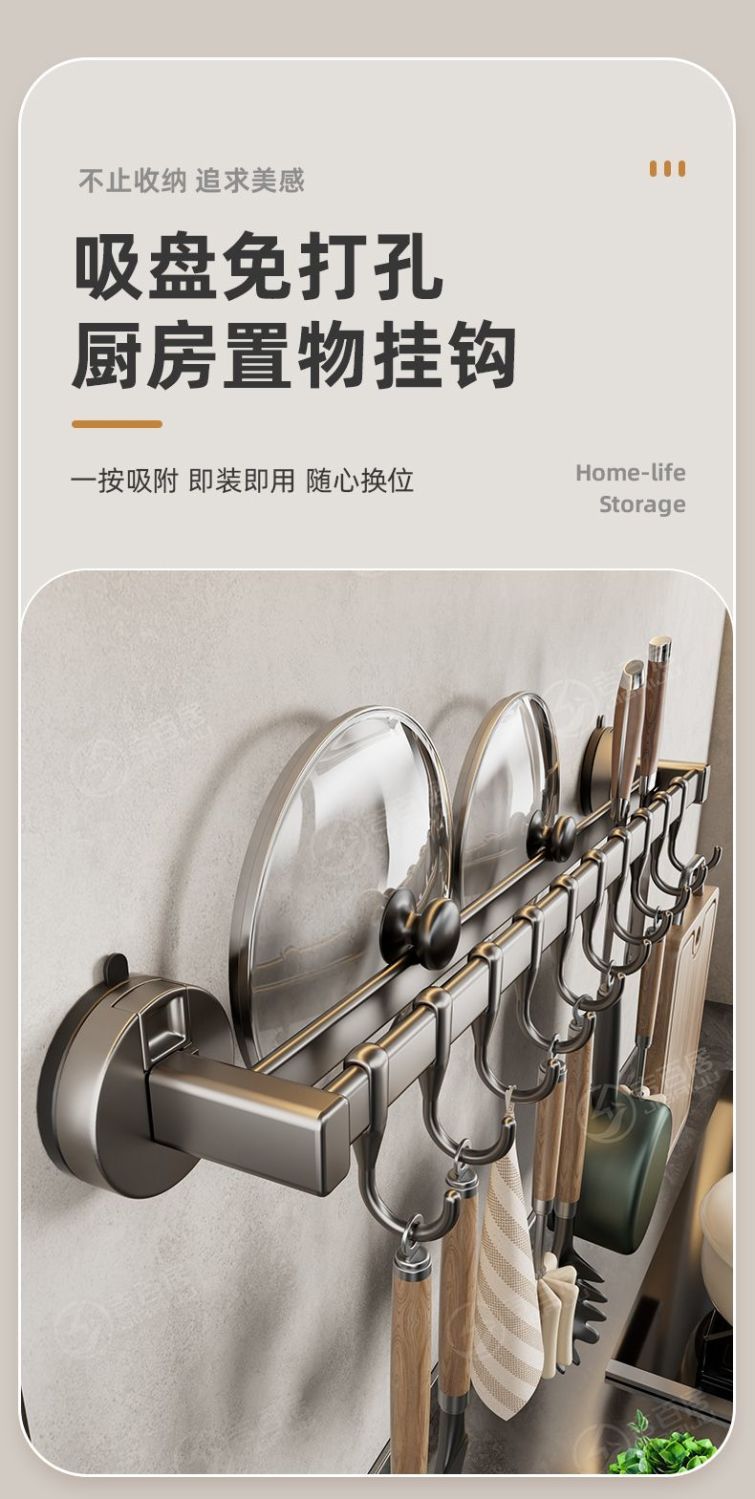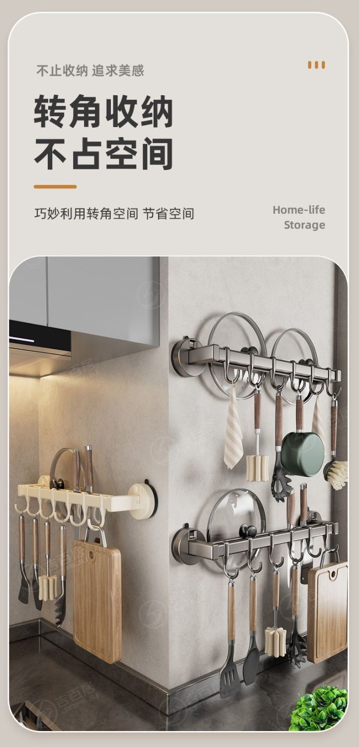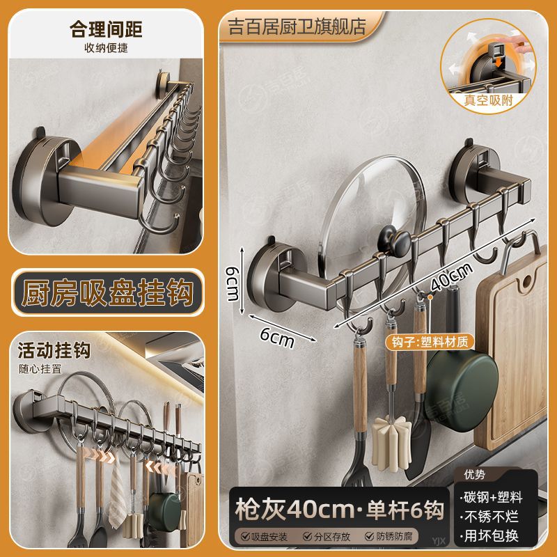 공장 공급 주방 후크 랙 비 천공 흡입 컵 후크 랙 다기능 캐비닛 스푼 스토리지 랙스토어 가기