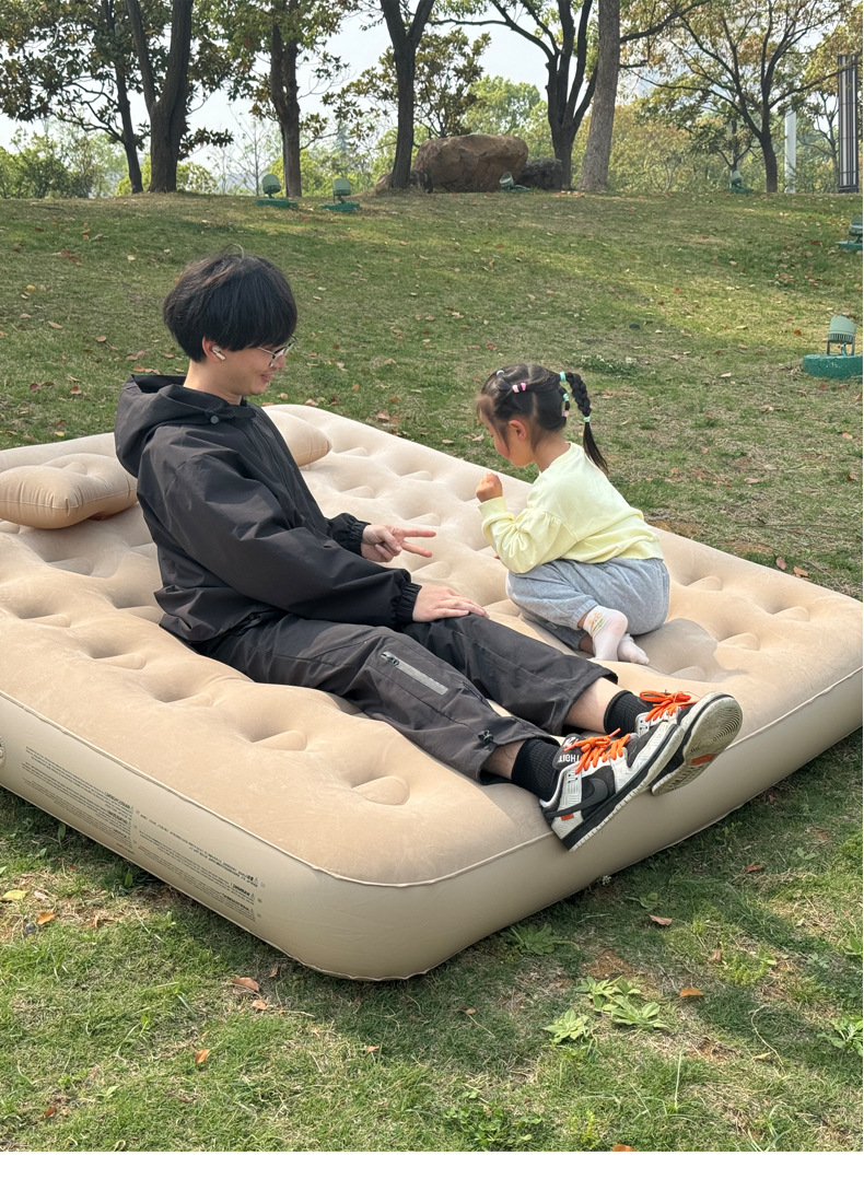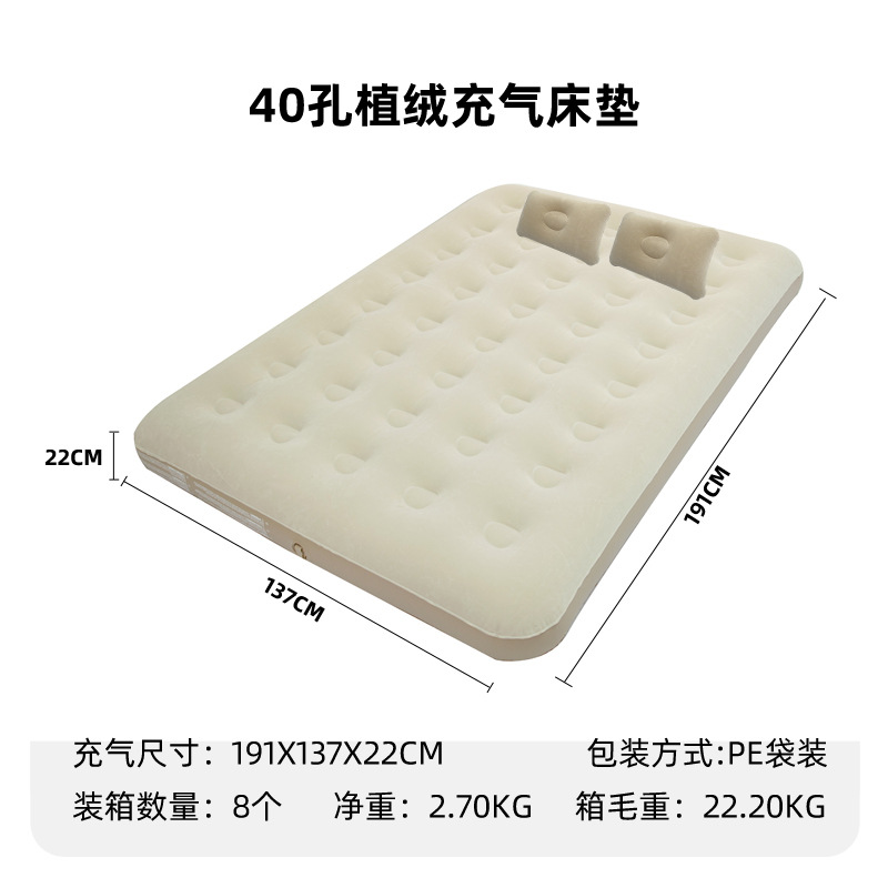 • 【191*137*22cm】비자체 충전식 플록 에어 매트리스 + 베개*2