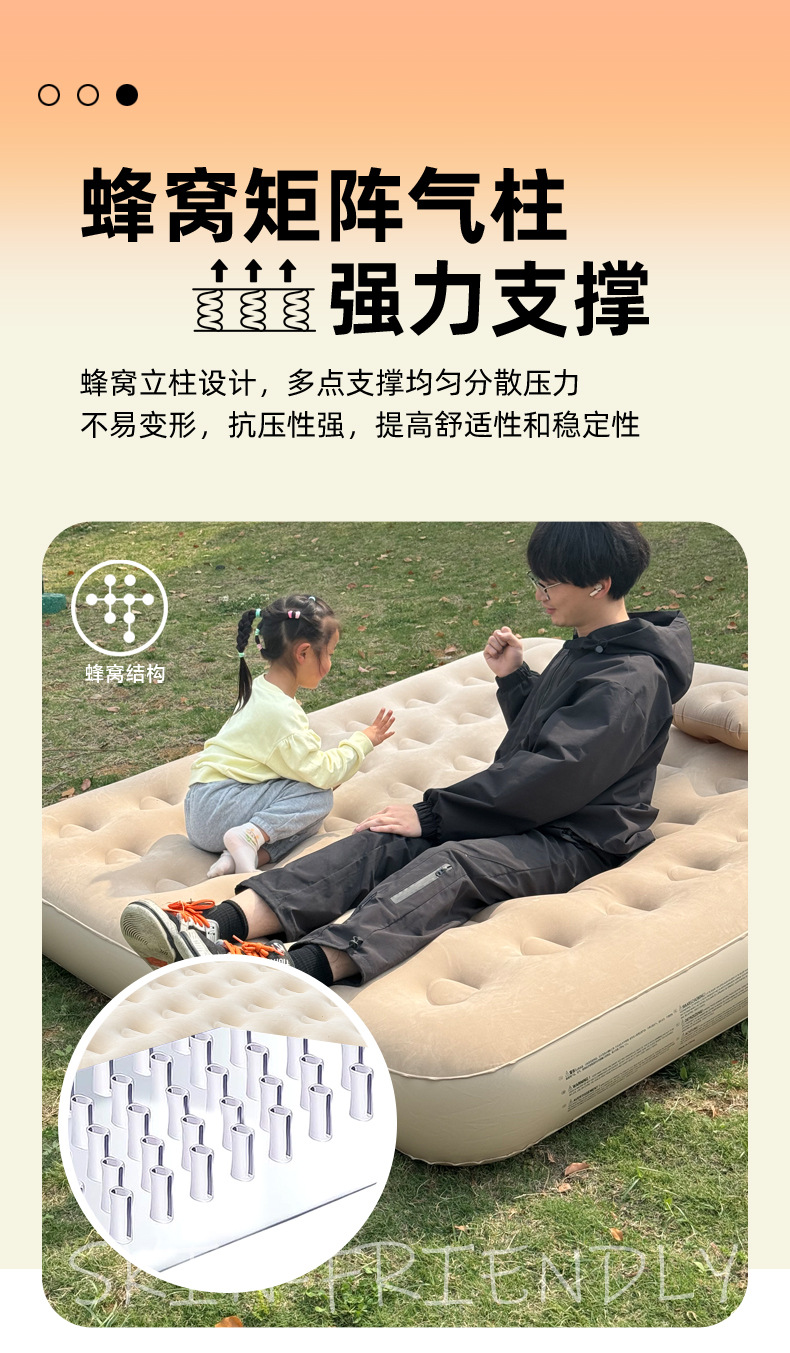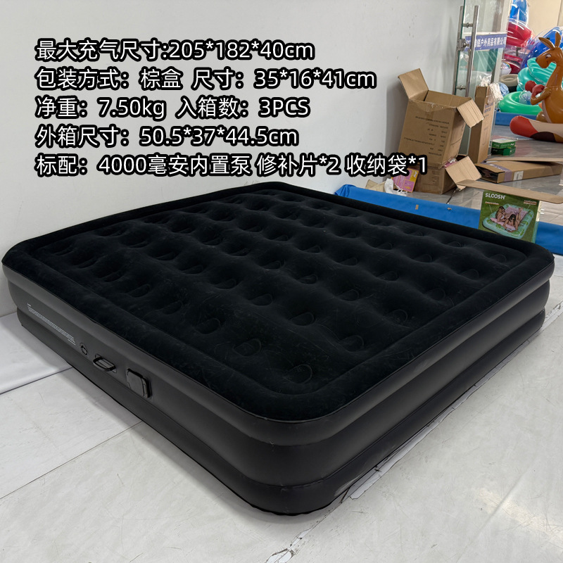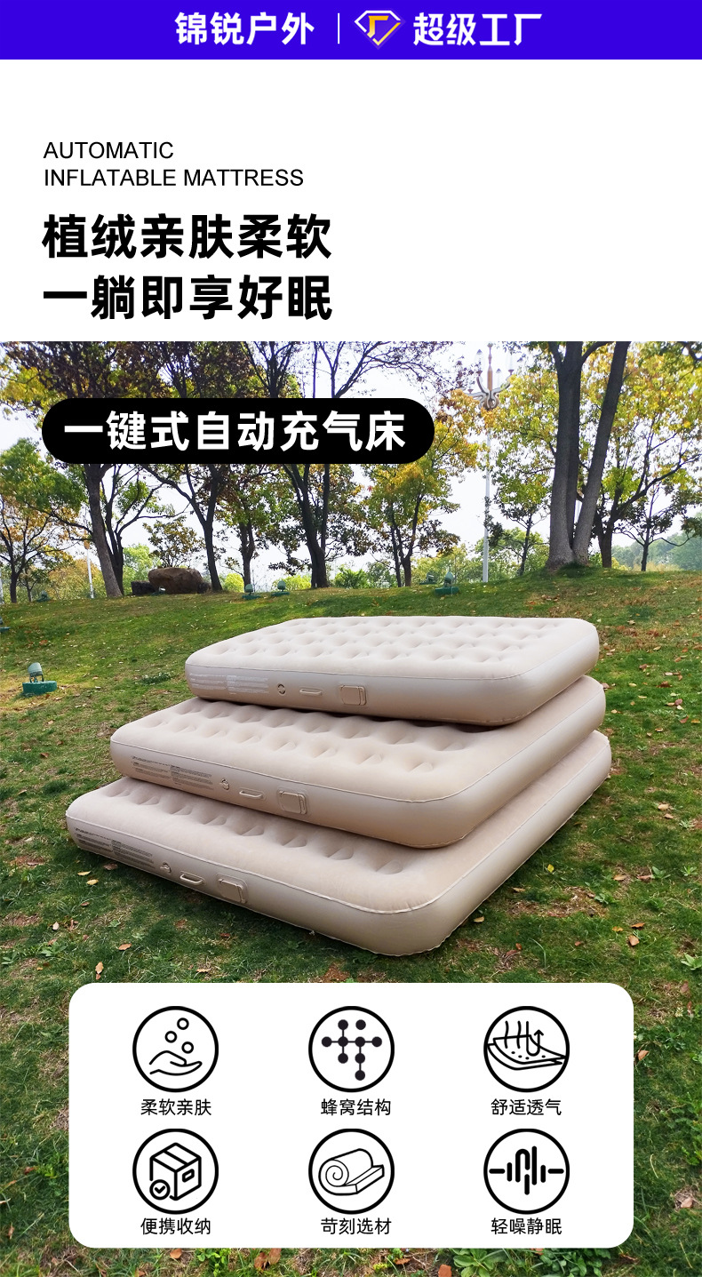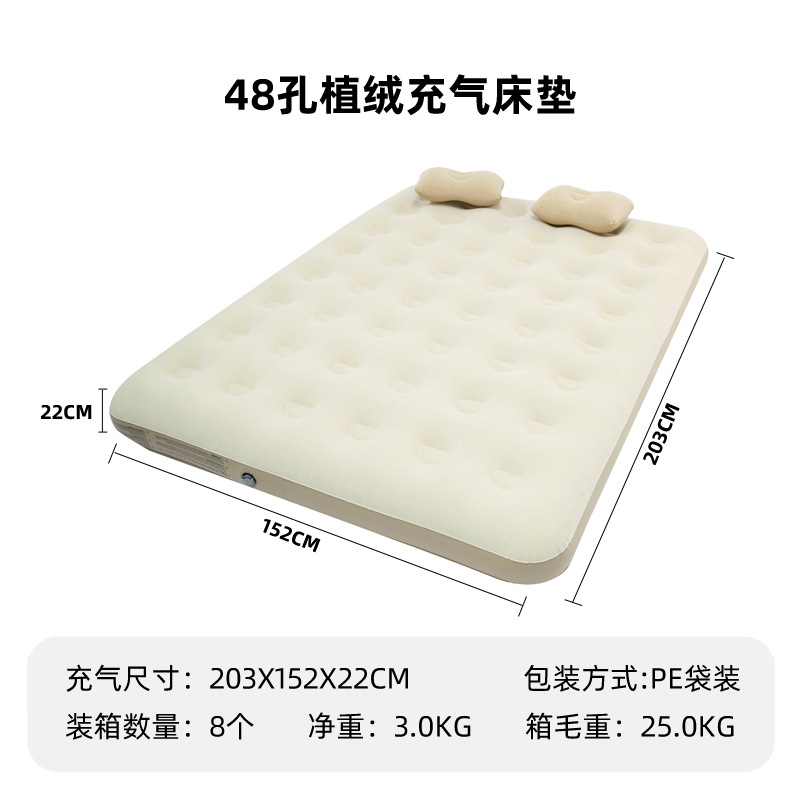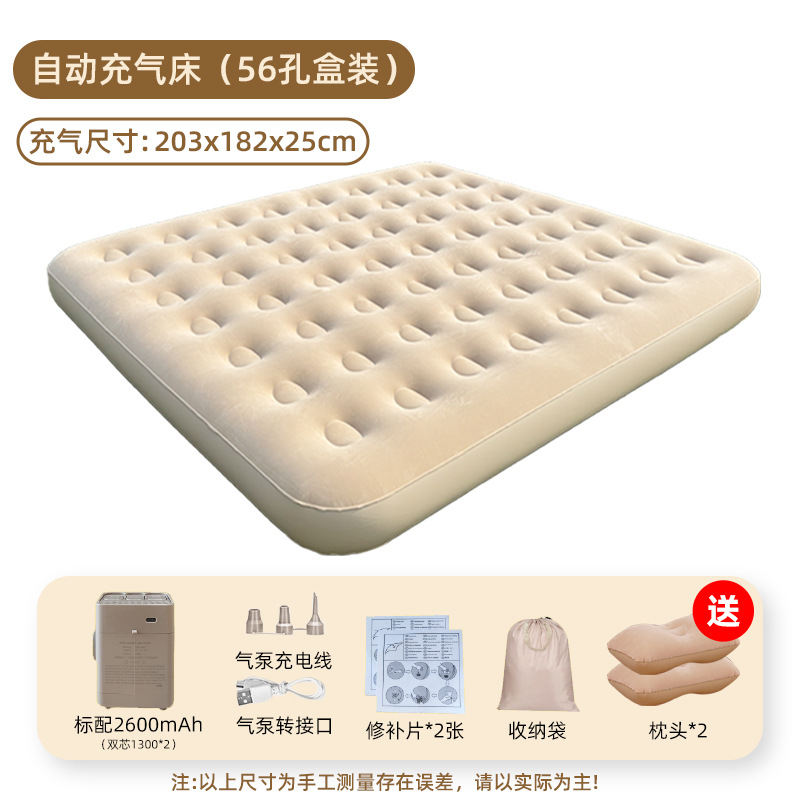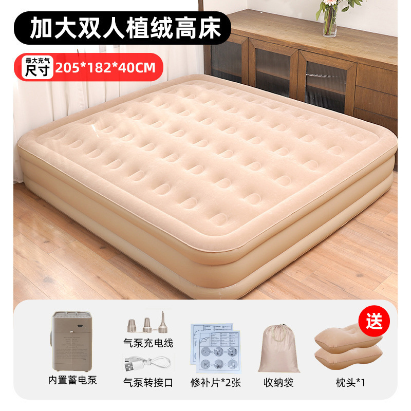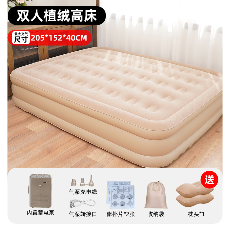 • 【203*152*22cm】비자체 충전식 플록 가공 에어 매트리스 + 베개*2