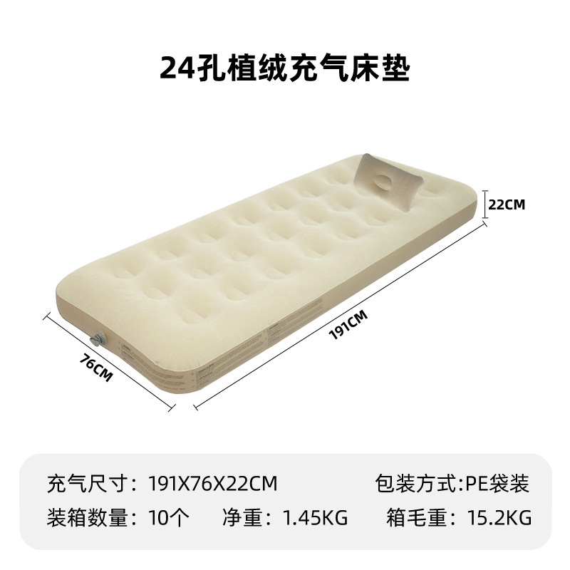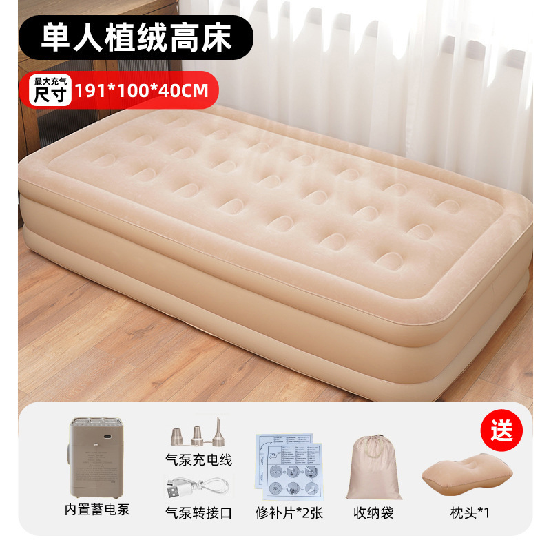 • 【191*76*22cm】비자체 충전식 플록 에어 매트리스 + 베개*1