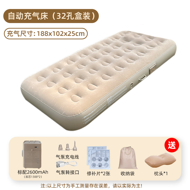 • 베이지 - 1인용 자동 팽창식 하이베드 [무료 베개*1+전동펌프*1+수납가방*1+수리패치*2]