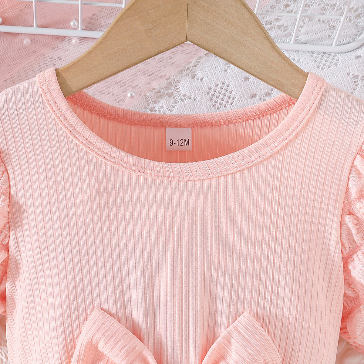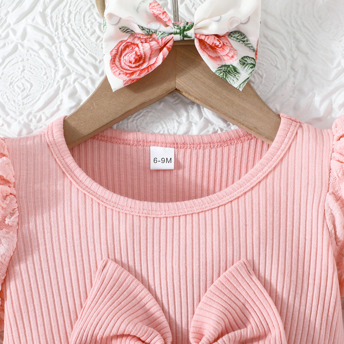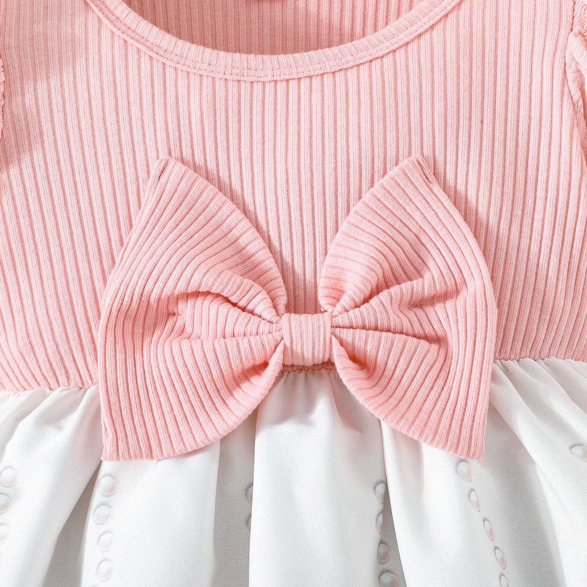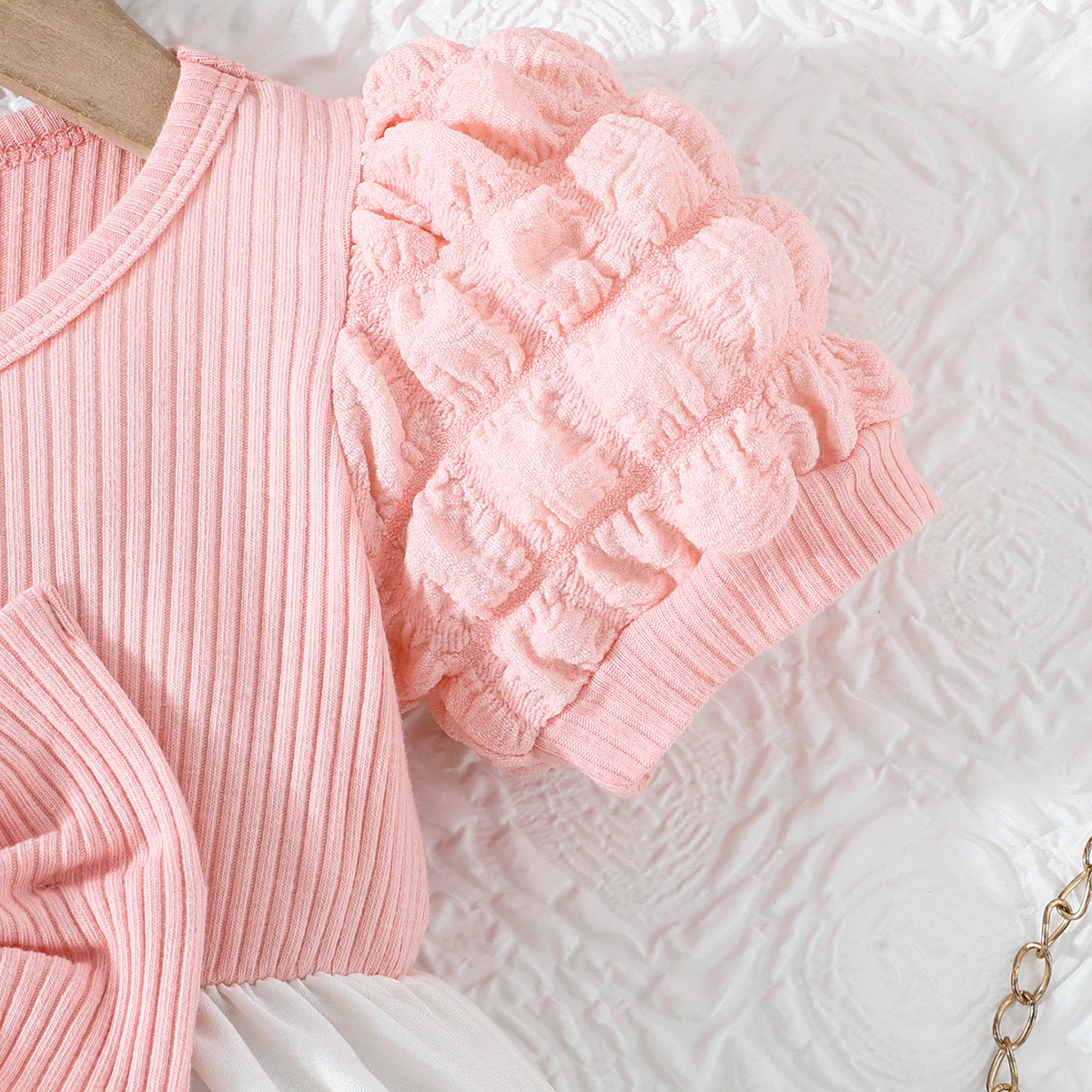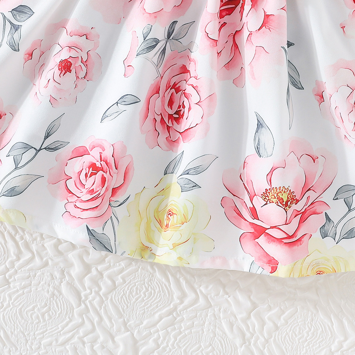 원제조사 여아 퍼프소매 꽃무늬 공주 드레스 여름 스타일 골지 리본 원피스, 같은 스타일의 헤어 액세서리 증정