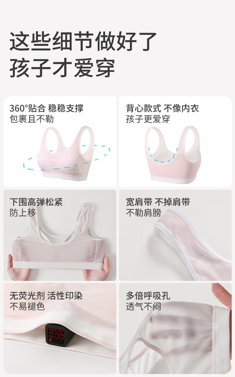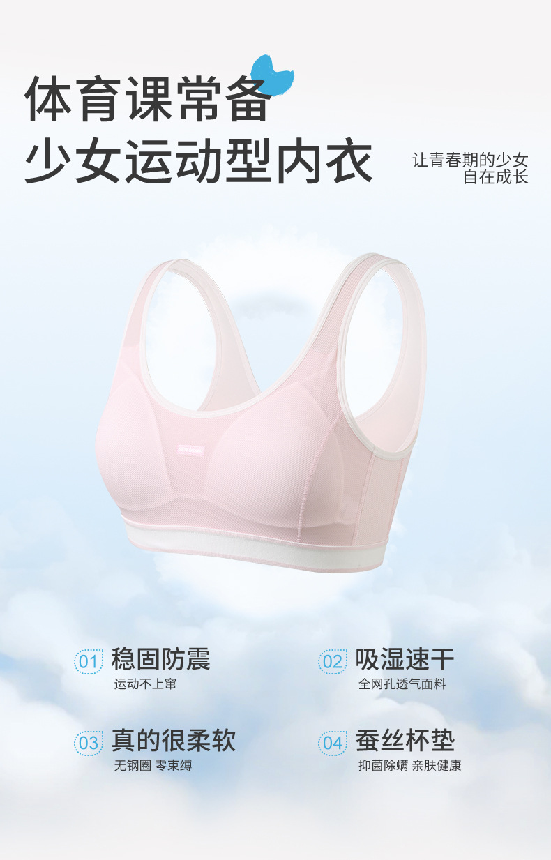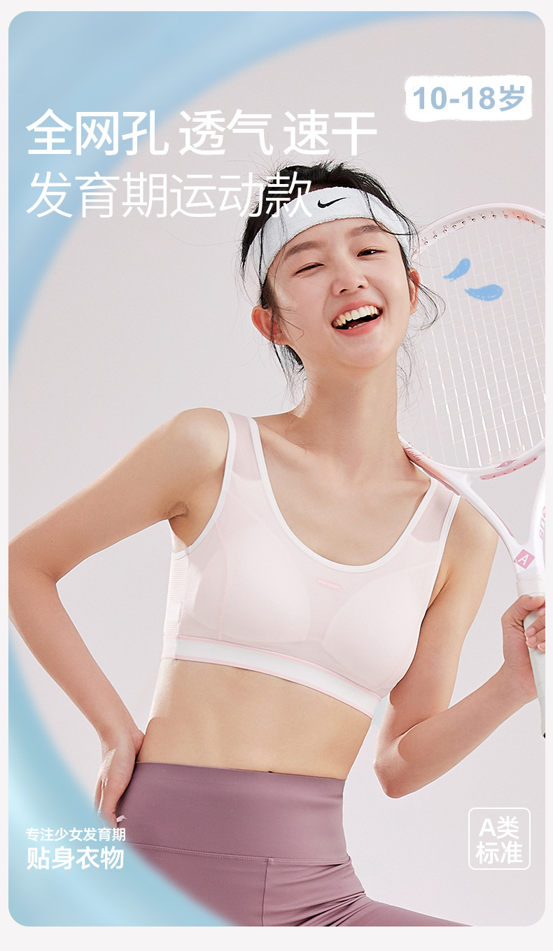 중학생 여학생 속옷, 고등학생용 통기성 메쉬 브라, 학생 발달 2단계 충격 방지 스포츠 조끼스토어 가기