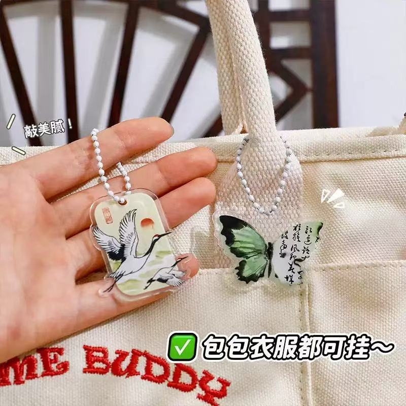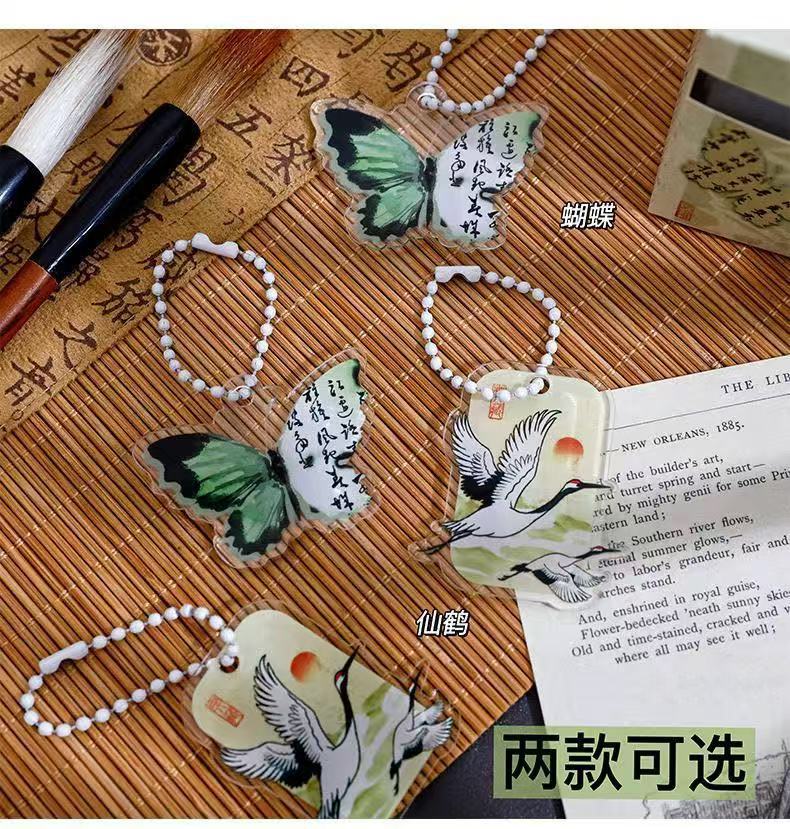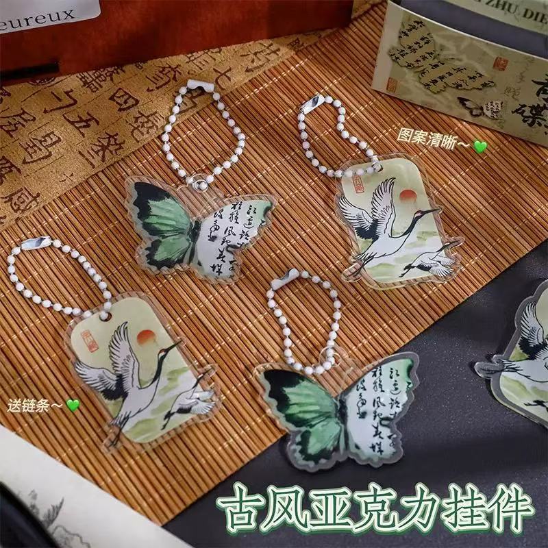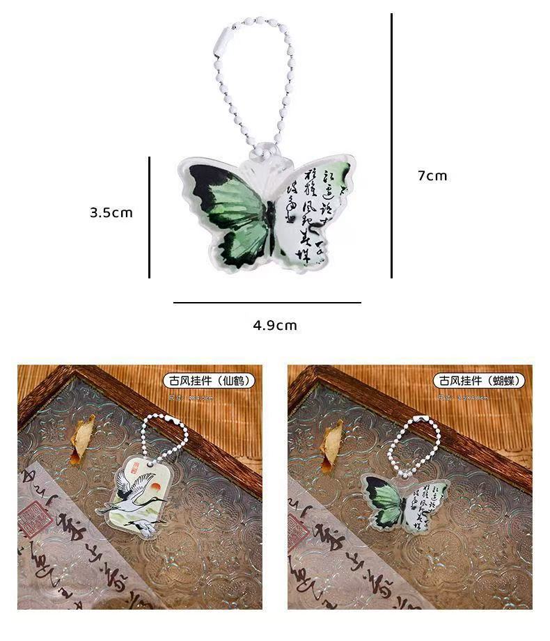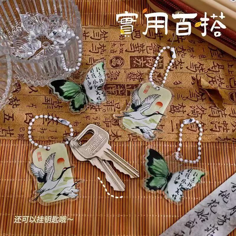 복고풍 스타일 나비 키 체인 크리 에이 티브 새로운 중국 스타일 크레인 키 체인 고가 아크릴 펜 가방 가방 펜던트스토어 가기