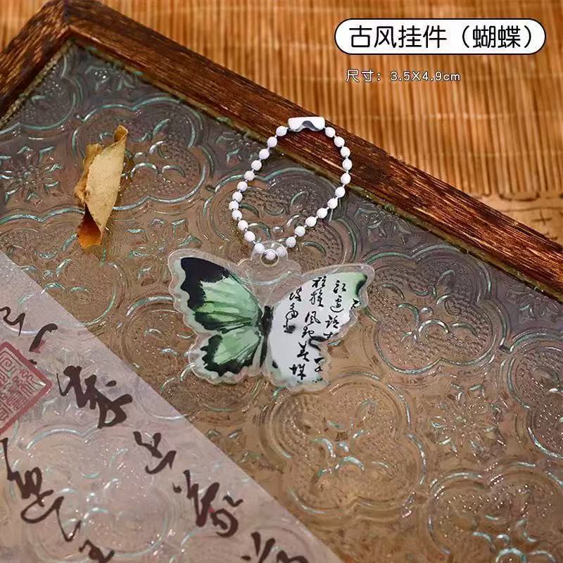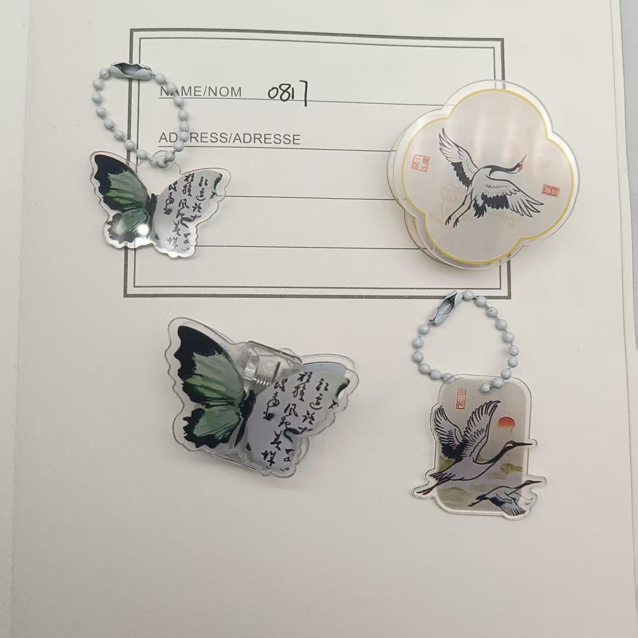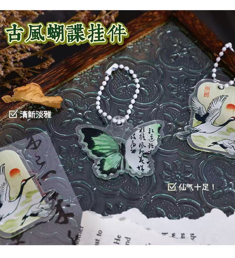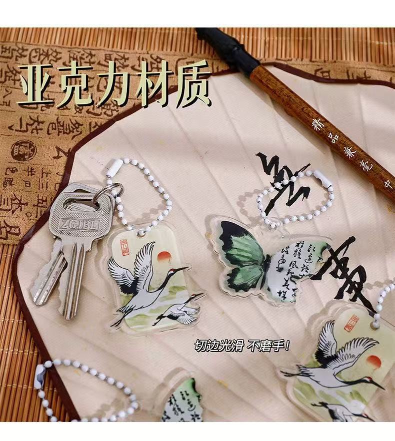 복고풍 스타일 나비 키 체인 크리 에이 티브 새로운 중국 스타일 크레인 키 체인 고가 아크릴 펜 가방 가방 펜던트스토어 가기