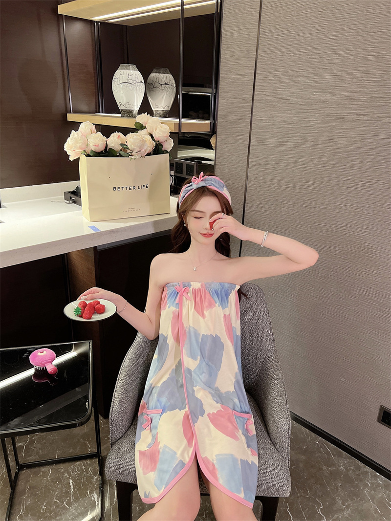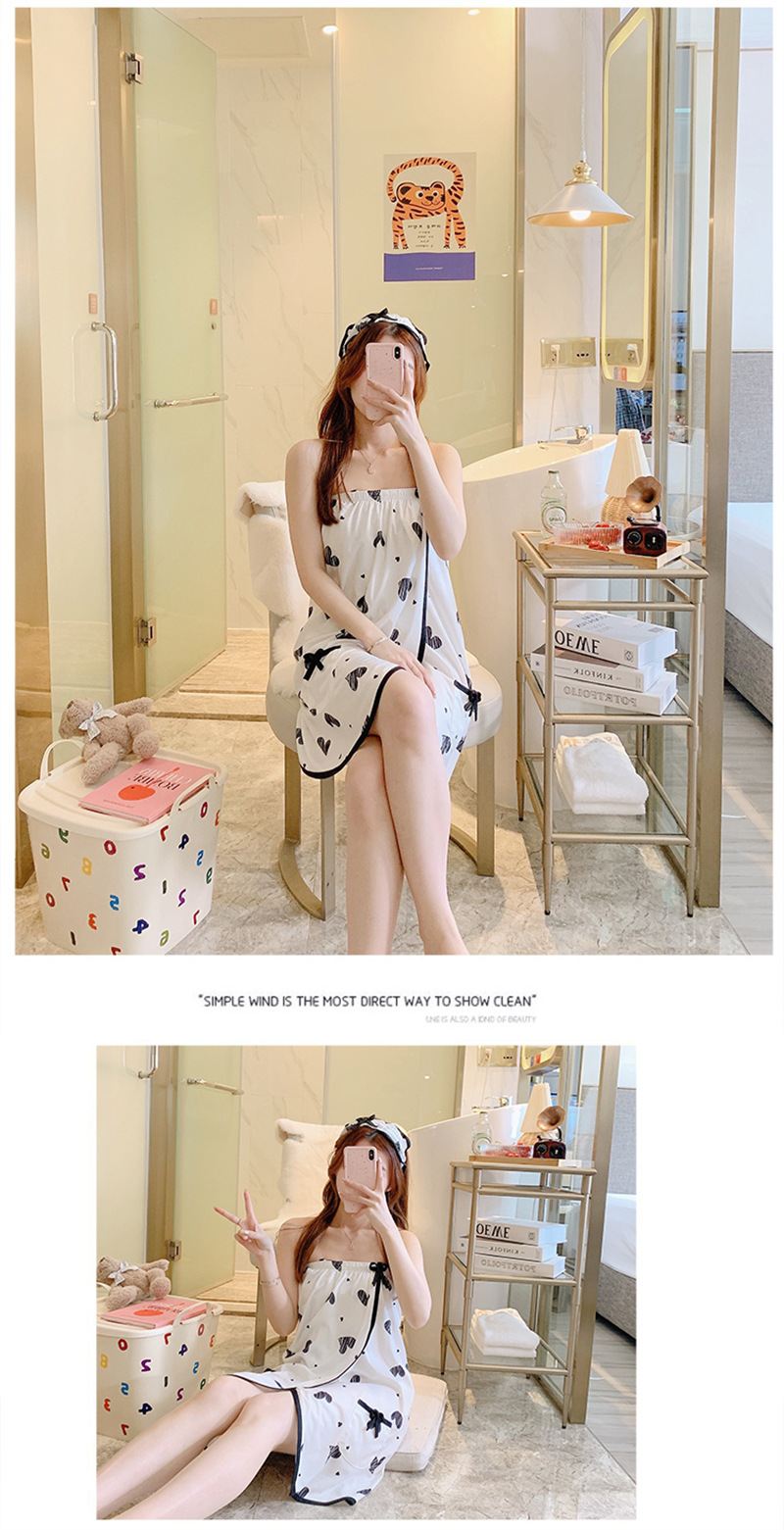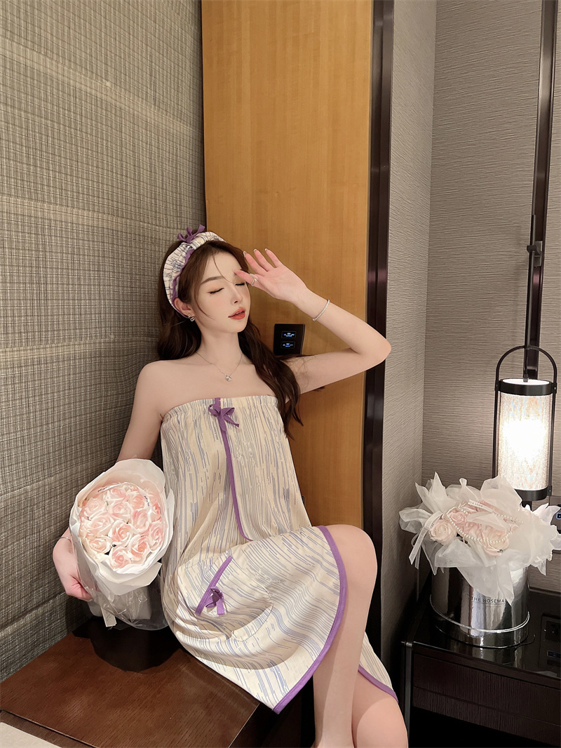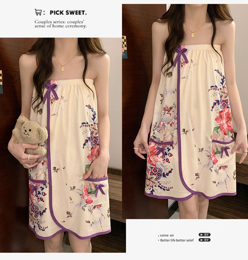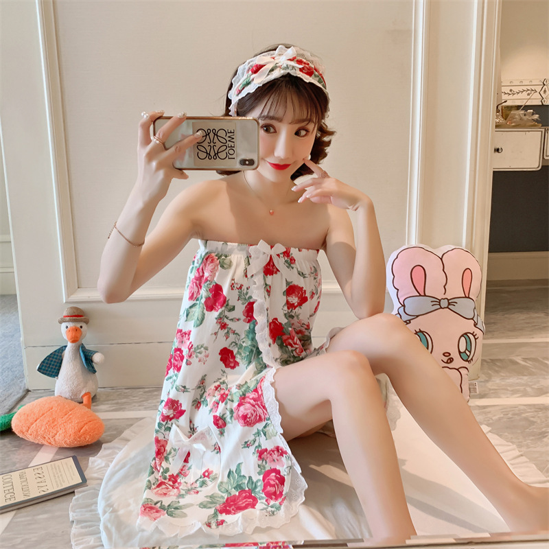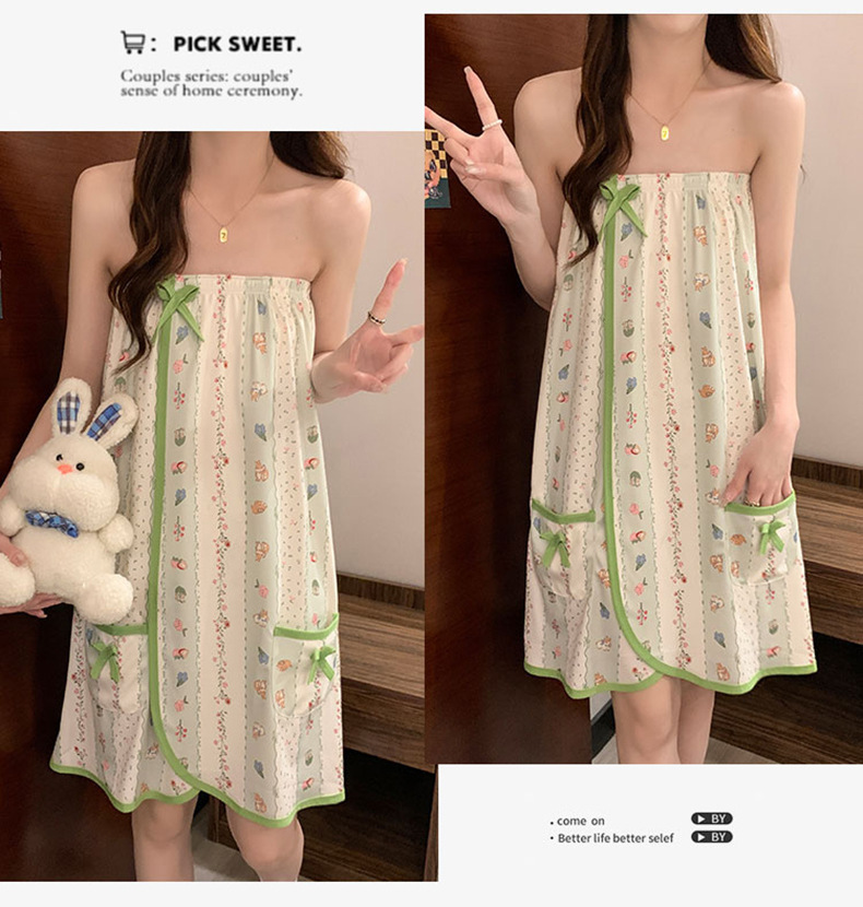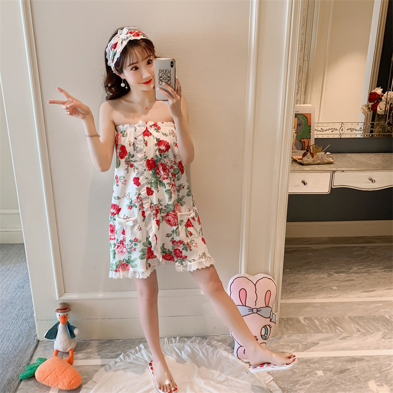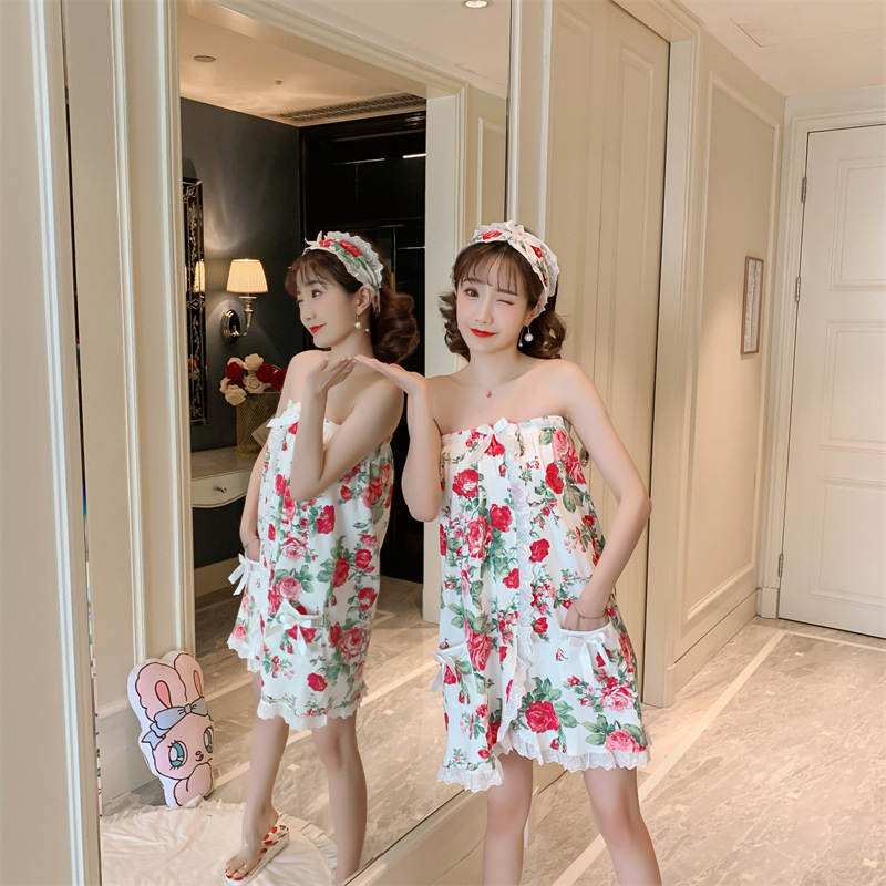 잠옷 여성의 여름 캐주얼 간단한 편안한 가정용 가슴 랩 목욕 타월 여름 섹시한 귀여운 땀 증기 사우나 목욕 가운 여성