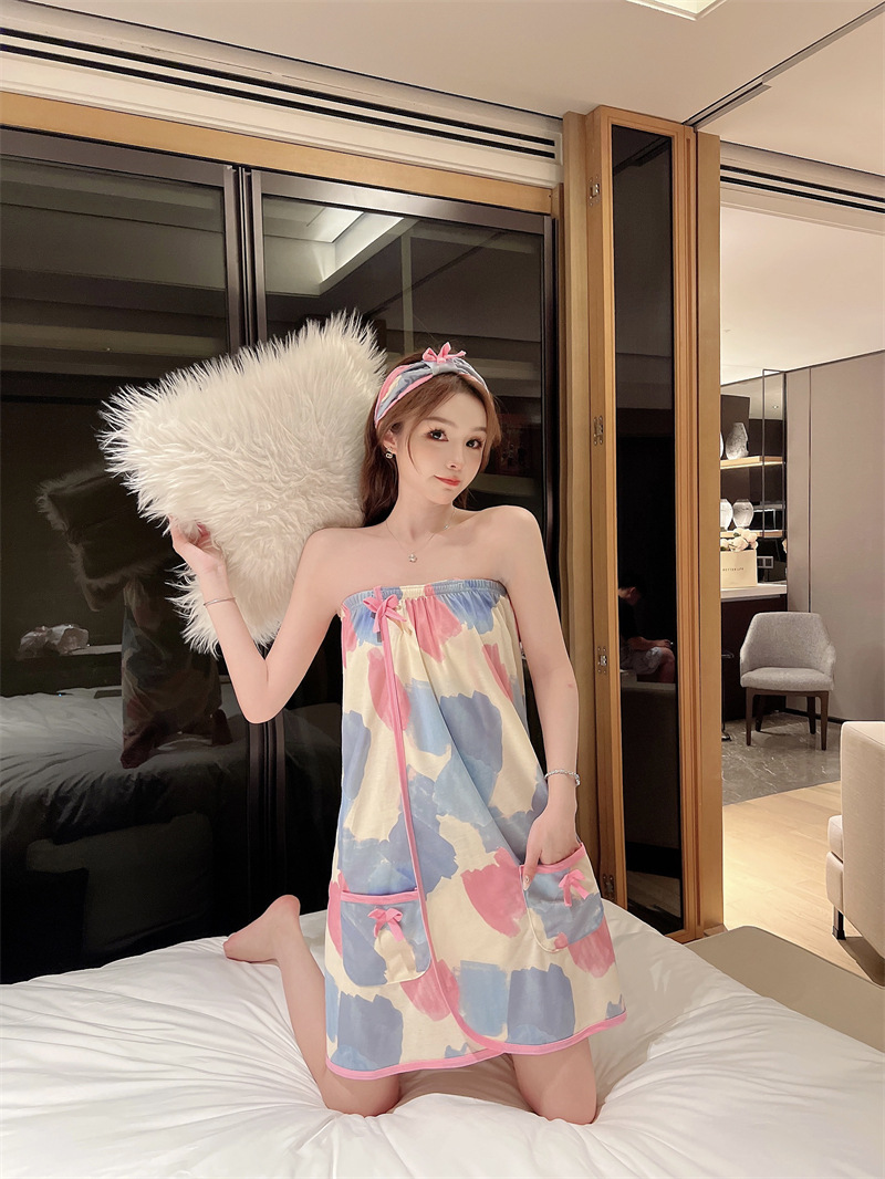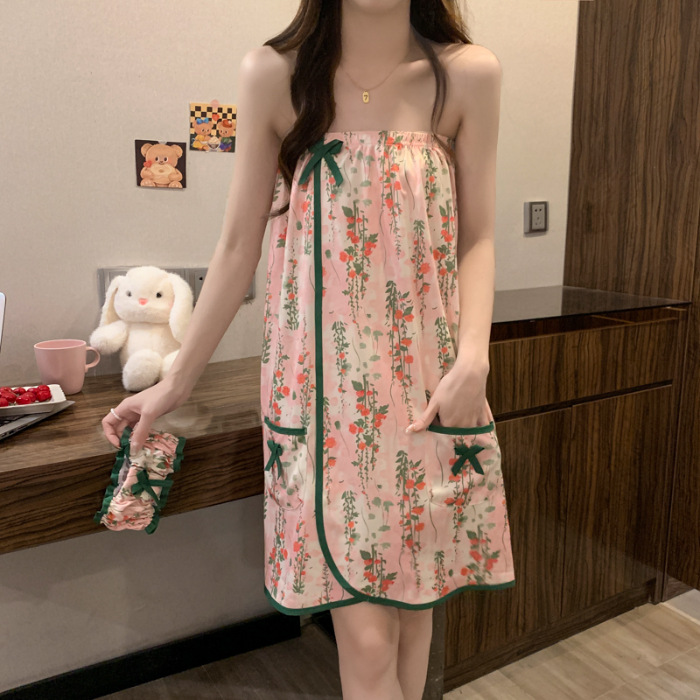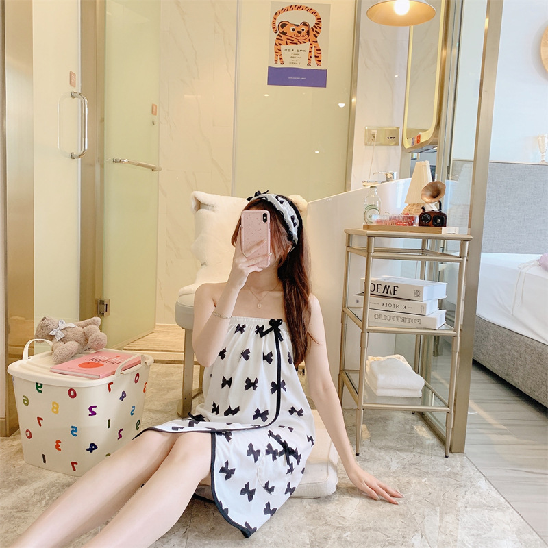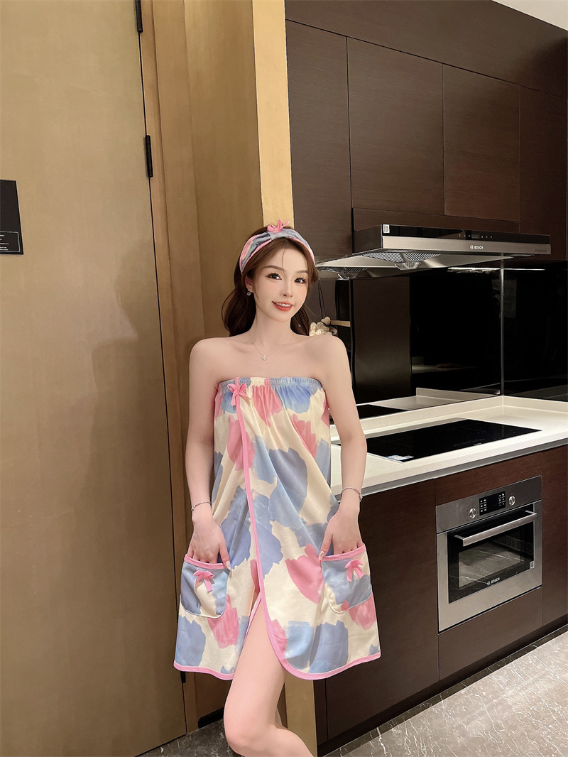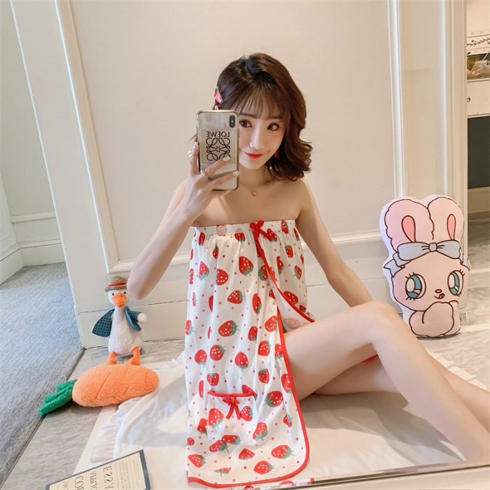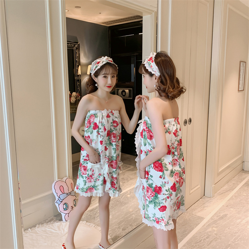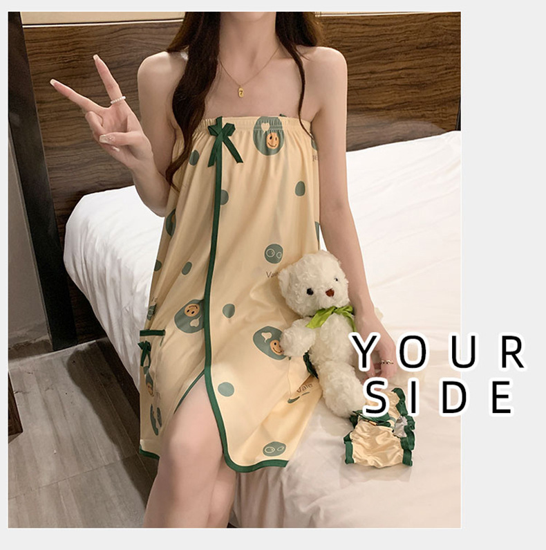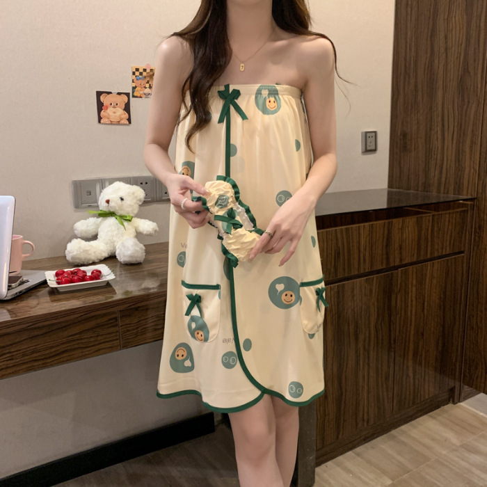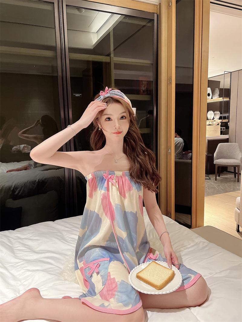 잠옷 여성의 여름 캐주얼 간단한 편안한 가정용 가슴 랩 목욕 타월 여름 섹시한 귀여운 땀 증기 사우나 목욕 가운 여성
