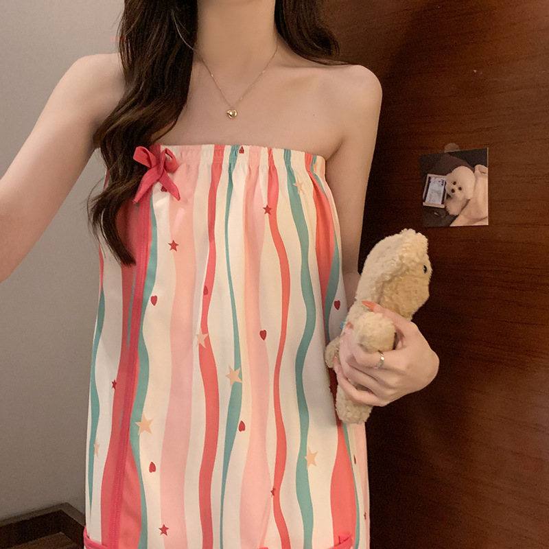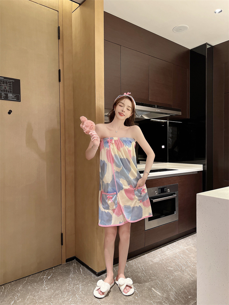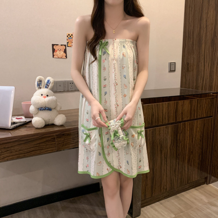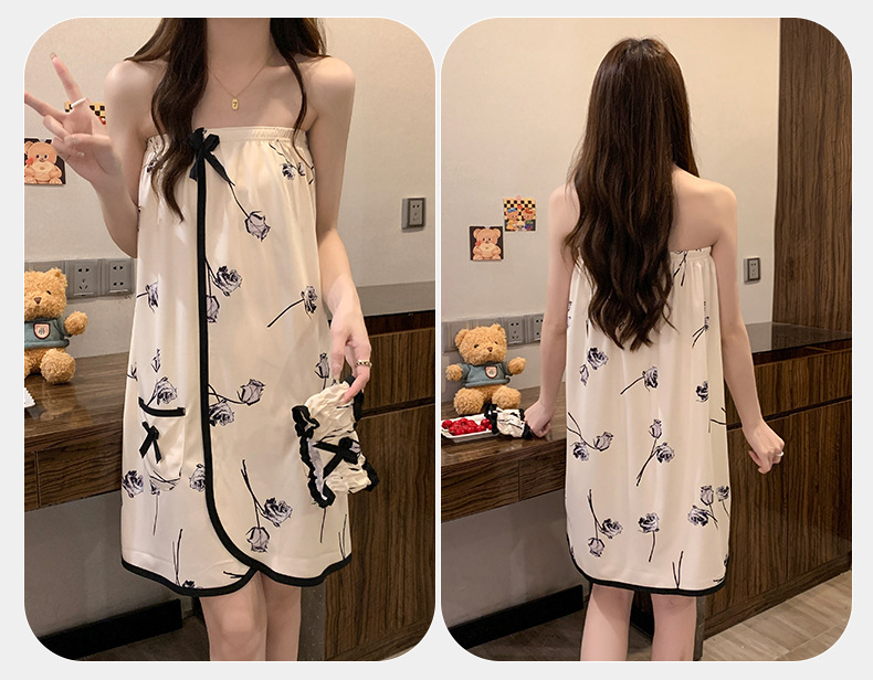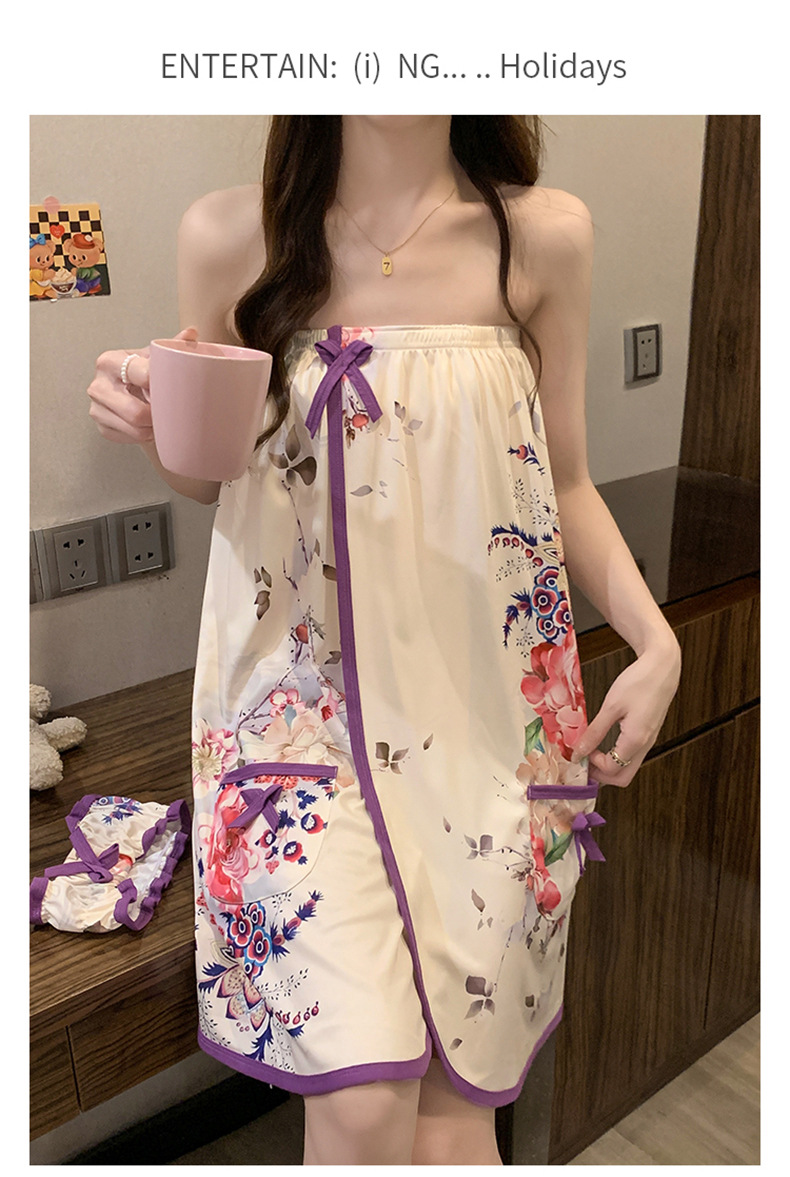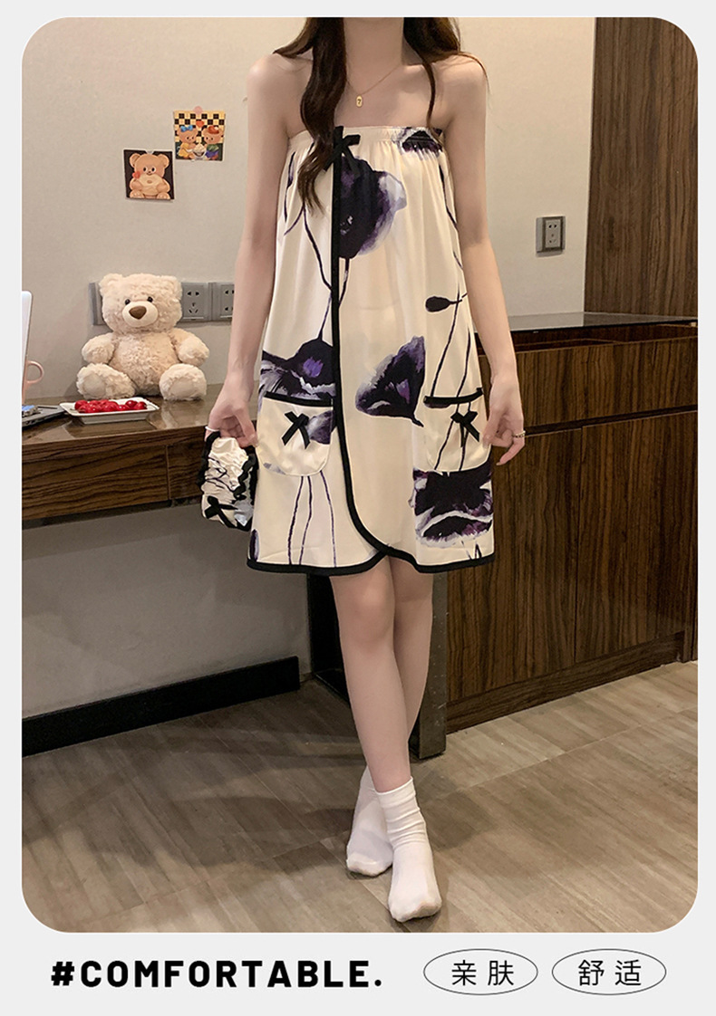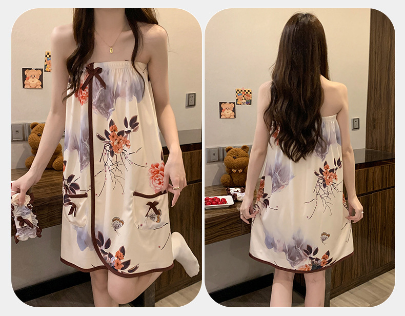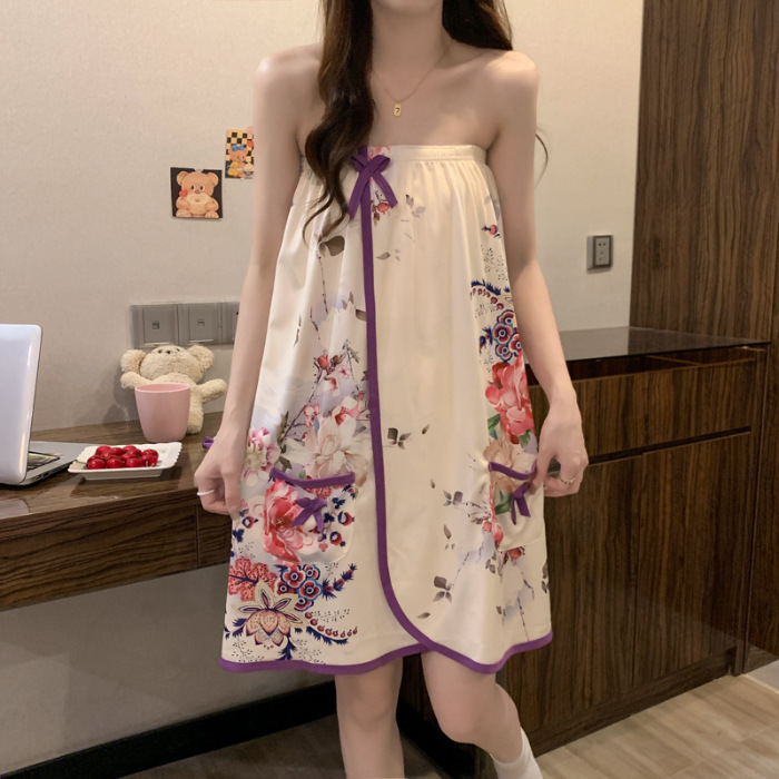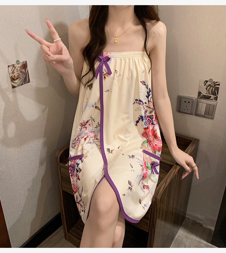잠옷 여성의 여름 캐주얼 간단한 편안한 가정용 가슴 랩 목욕 타월 여름 섹시한 귀여운 땀 증기 사우나 목욕 가운 여성