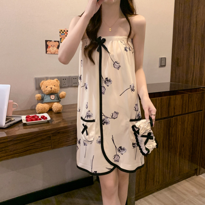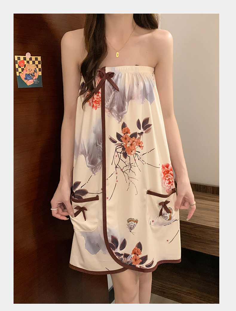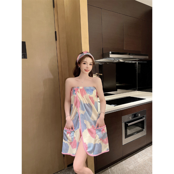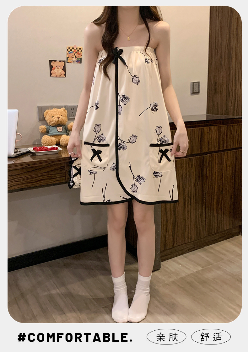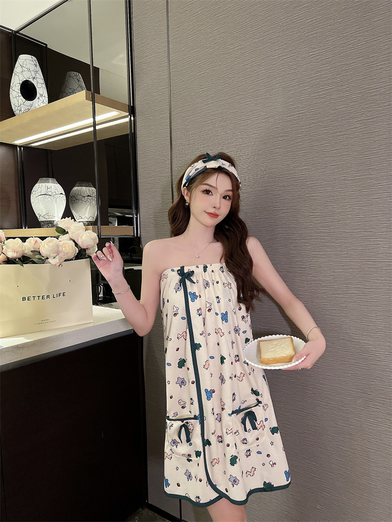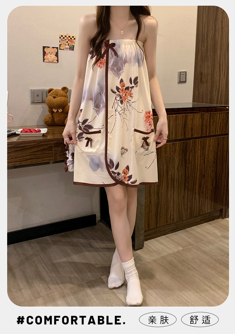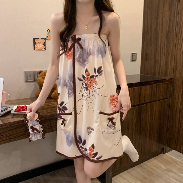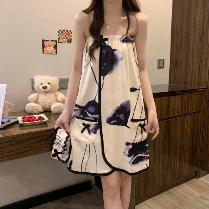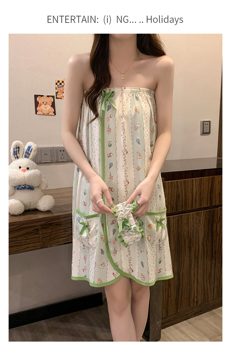 잠옷 여성의 여름 캐주얼 간단한 편안한 가정용 가슴 랩 목욕 타월 여름 섹시한 귀여운 땀 증기 사우나 목욕 가운 여성