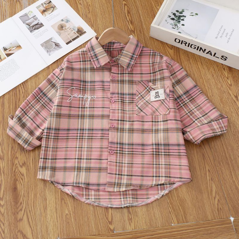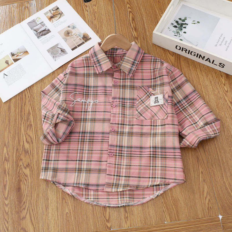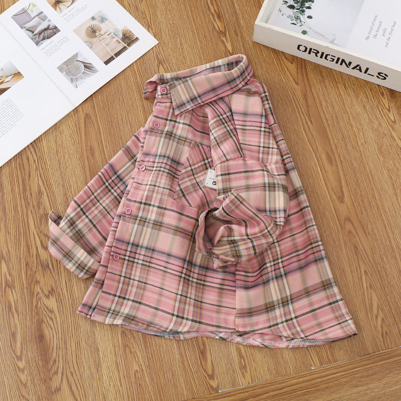여아 격자 무늬 셔츠 봄, 가을 2025 새로운 긴팔 스타일 봄, 가을 얇은 중대형 아동용 탑 봄 셔츠스토어 가기