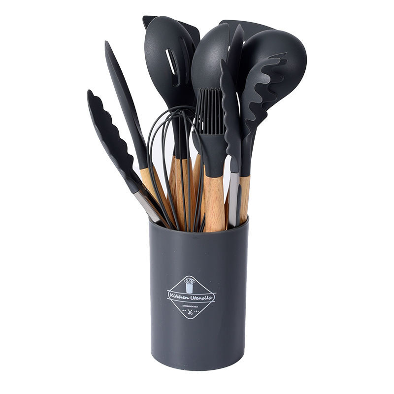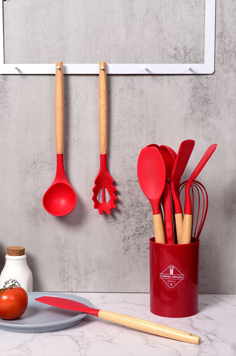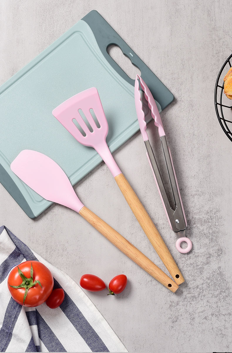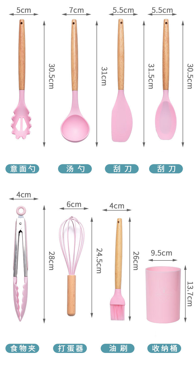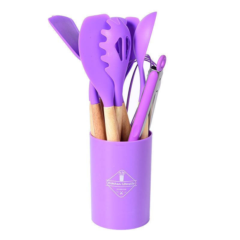 나무 손잡이 실리콘 주방용품 세트 12 조각 주방 높은 온도 저항하는 안티-스틱 냄비 실리콘 삽 숟가락 요리 도구