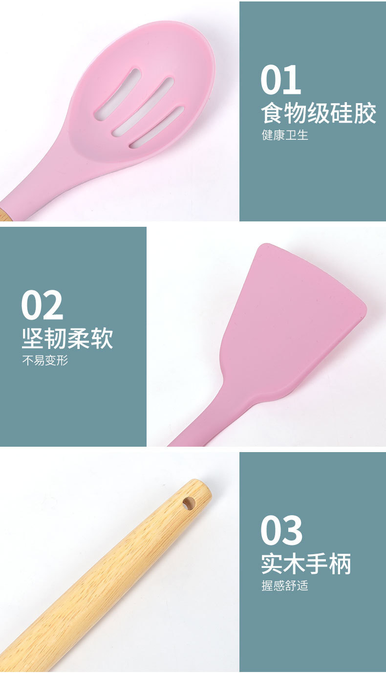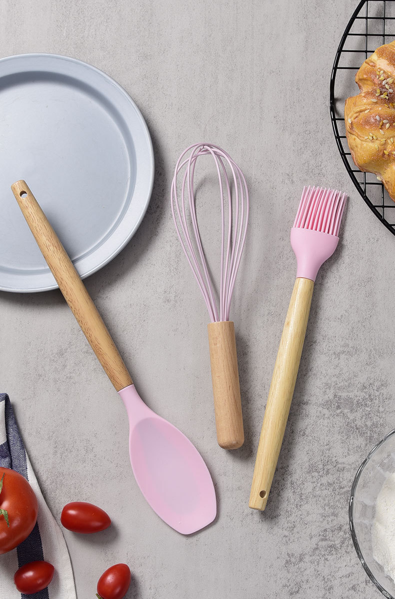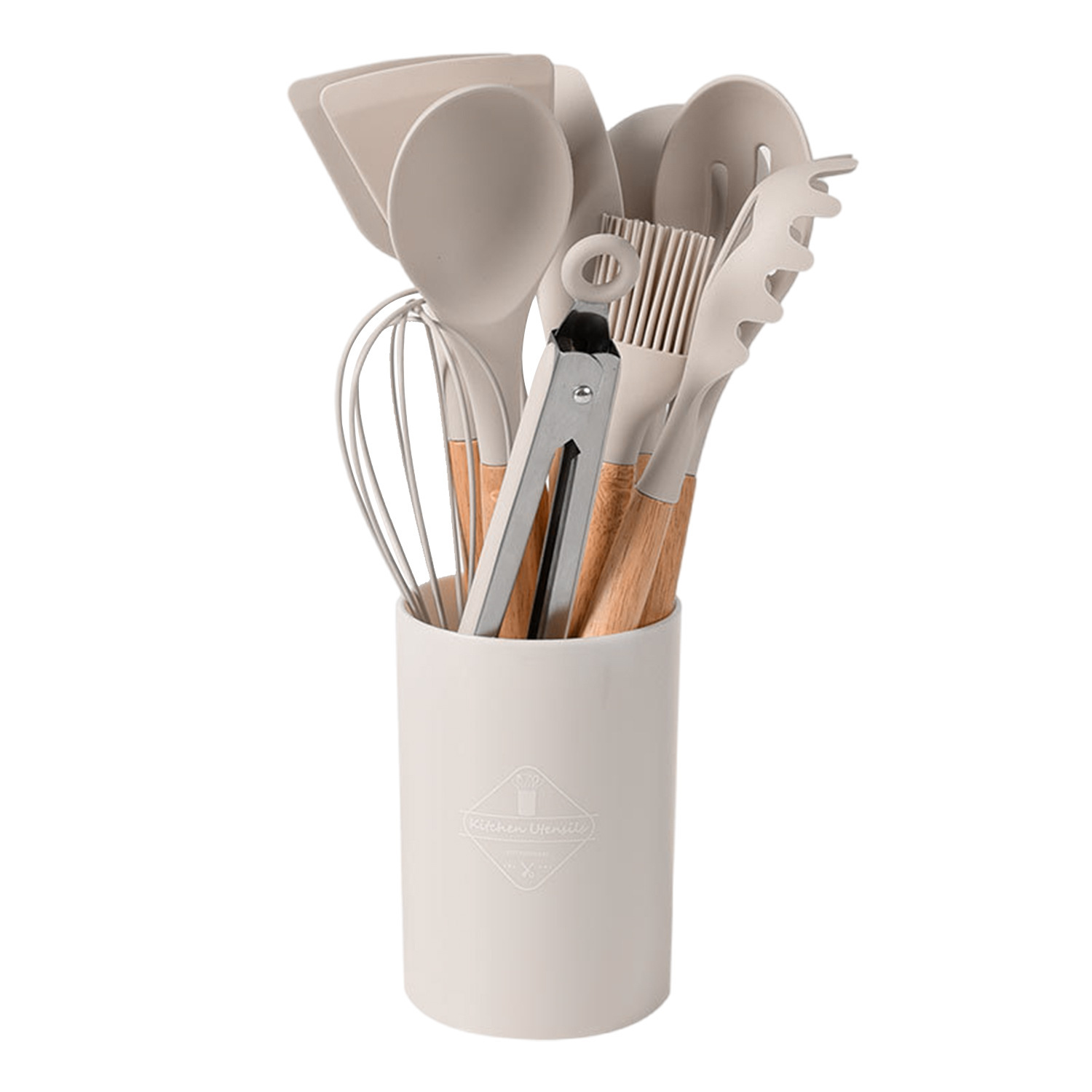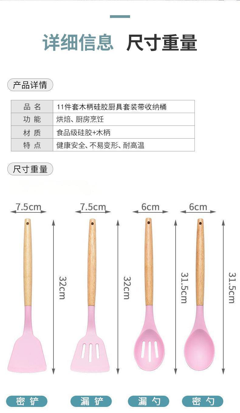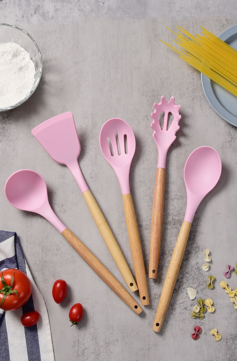 나무 손잡이 실리콘 주방용품 세트 12 조각 주방 높은 온도 저항하는 안티-스틱 냄비 실리콘 삽 숟가락 요리 도구