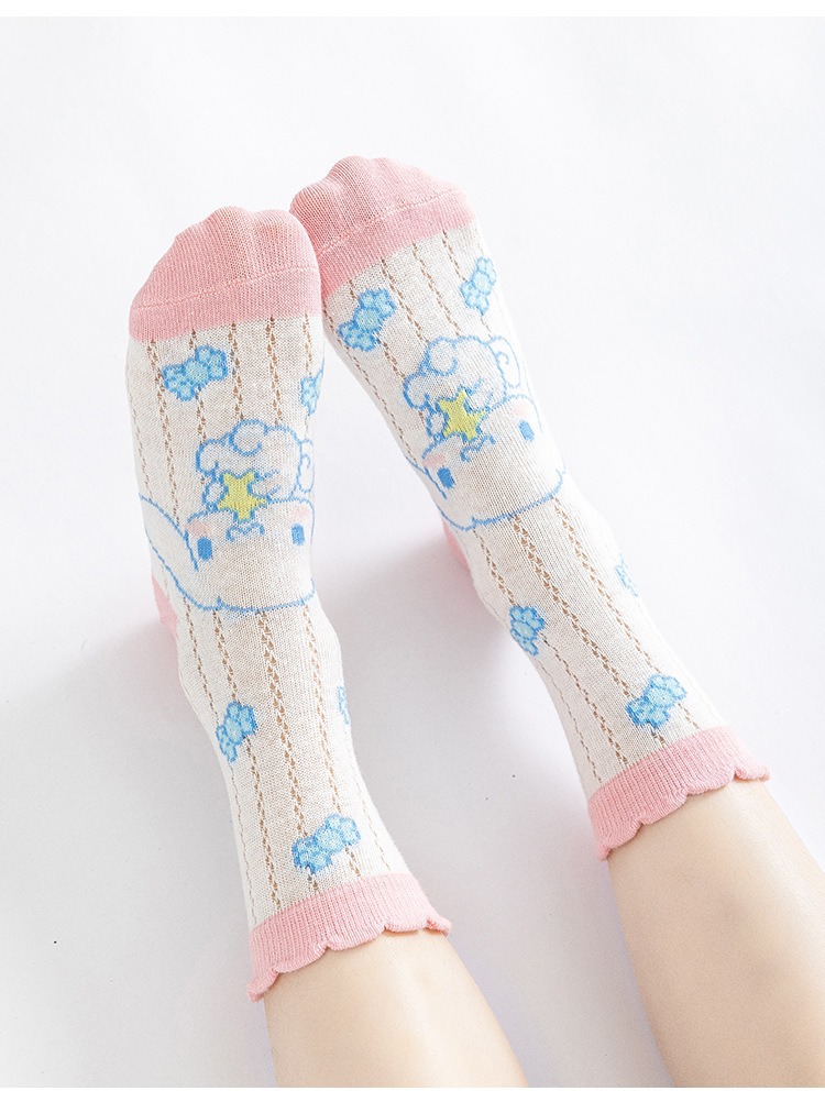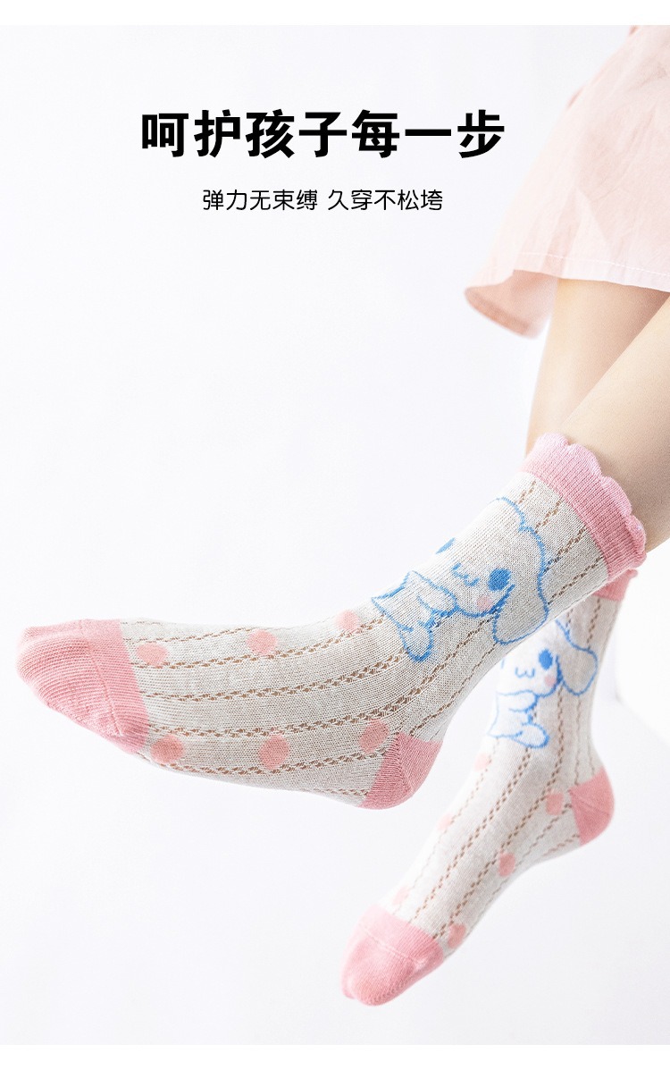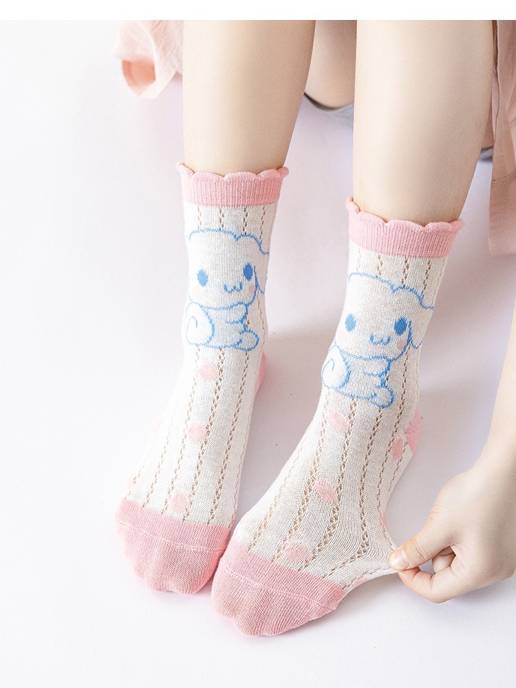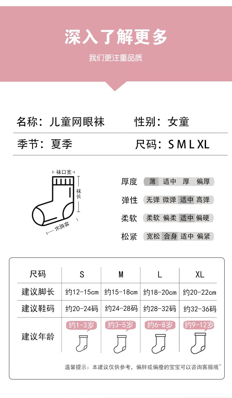 Jade Dog 새 어린이 양말 아기 소녀 메쉬 양말 면화 중간 길이 땀 흡수 통기성 답답하지 않은 만화 어린이 양말
