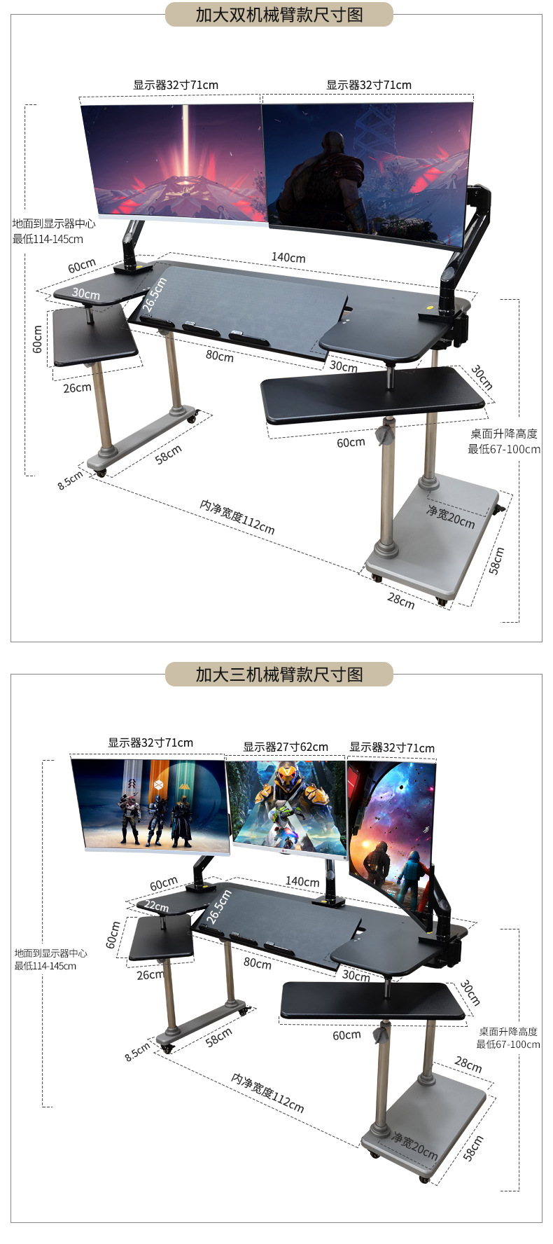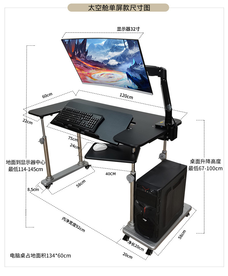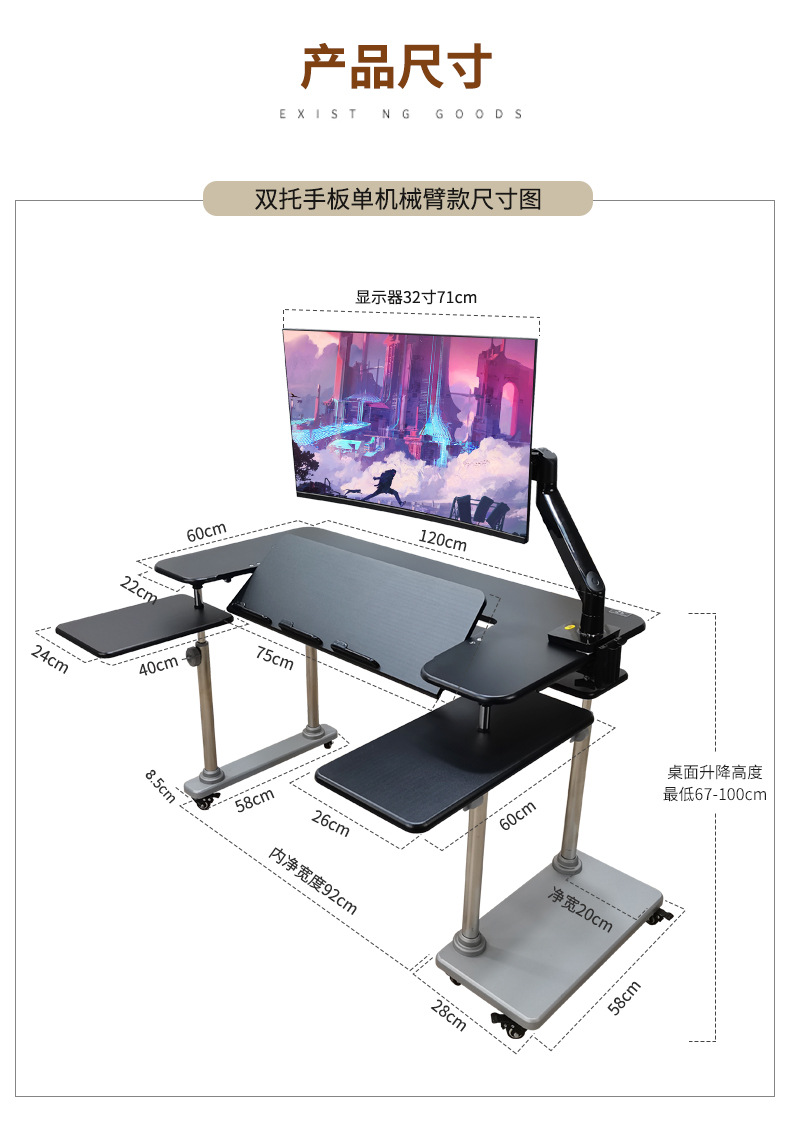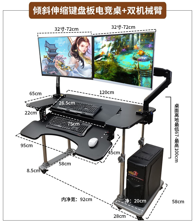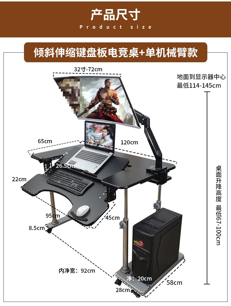 • 1. 새로운 기울기 텔레스코픽 키보드 플레이트 게이밍 테이블 + 단일 로봇 팔 모델