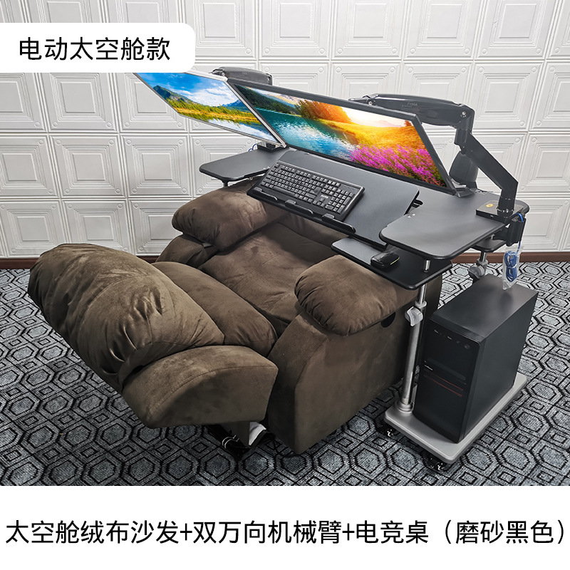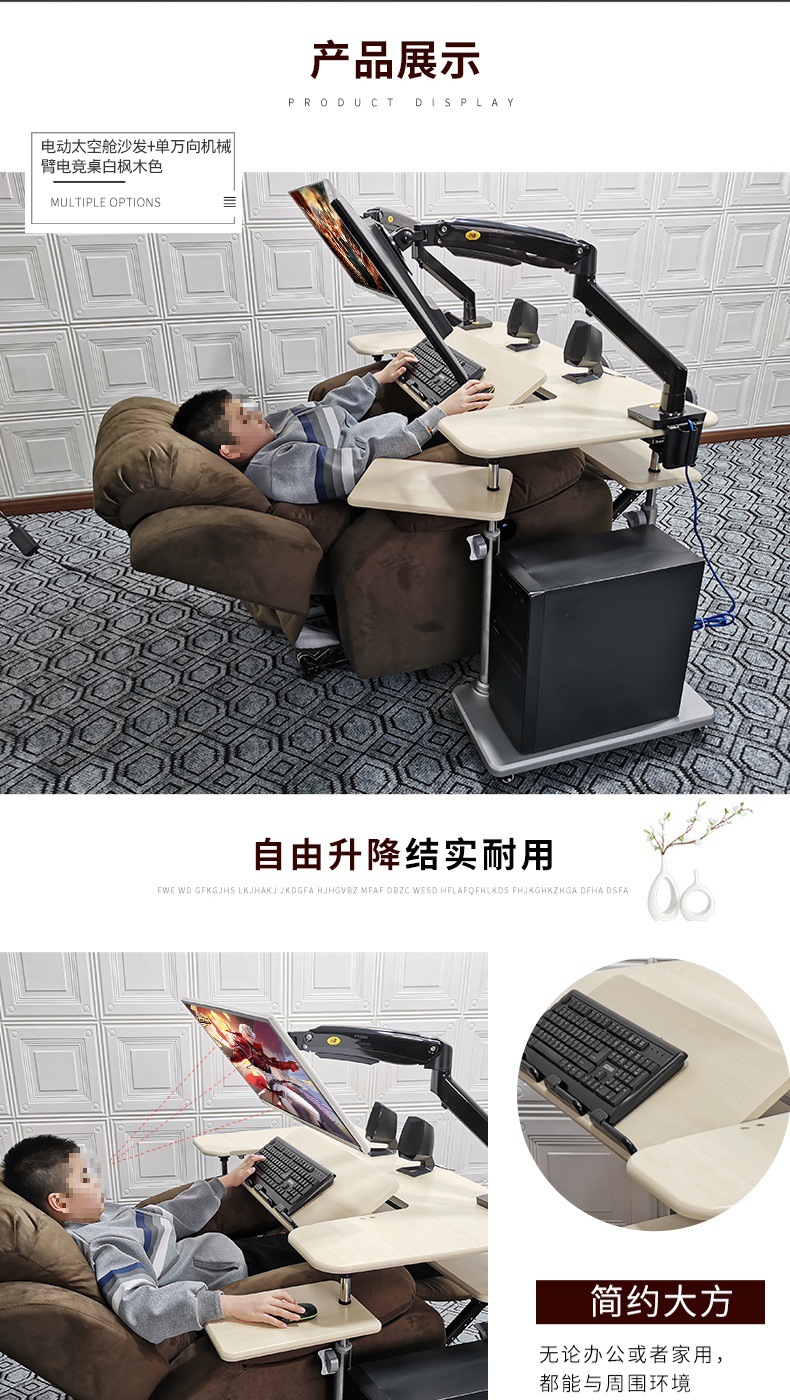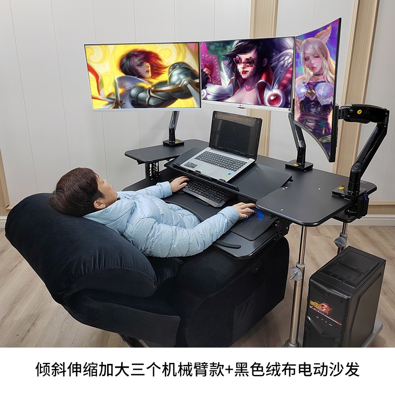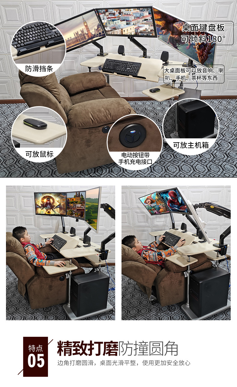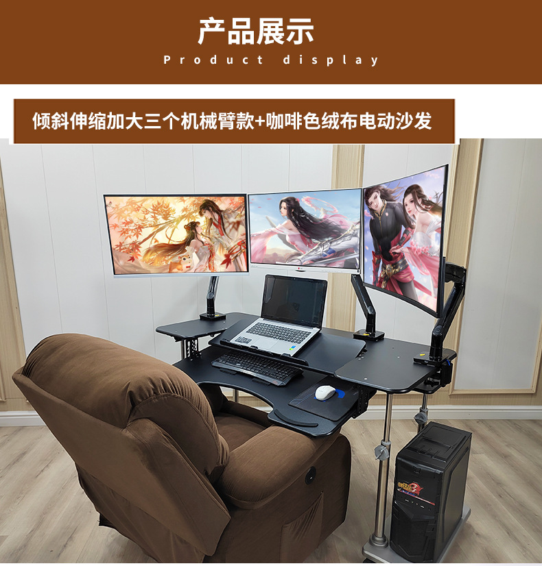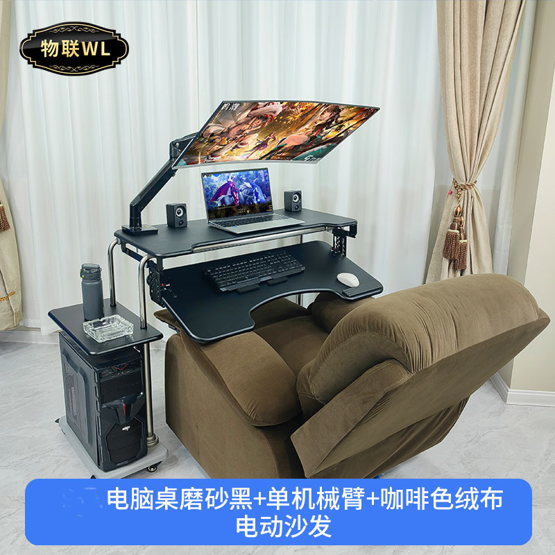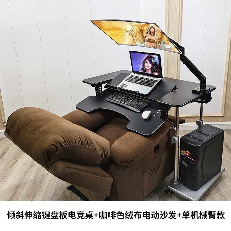 • 19. 신제품. 기울기 조절 키보드 트레이 게이밍 데스크 + 커피색 벨벳 전동 소파 + 싱글 로봇 팔 모델