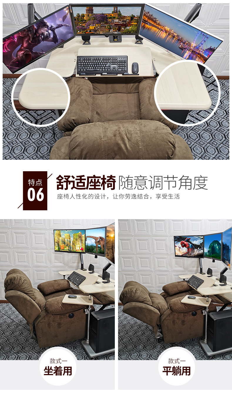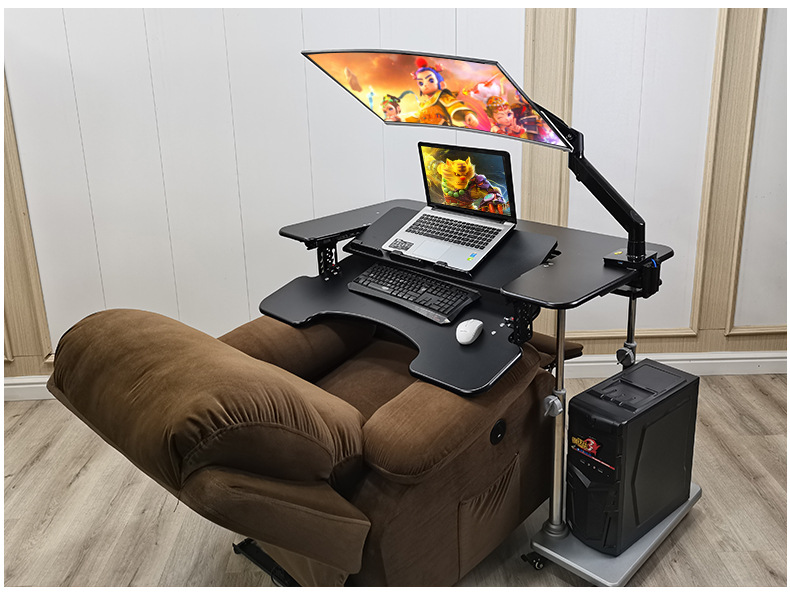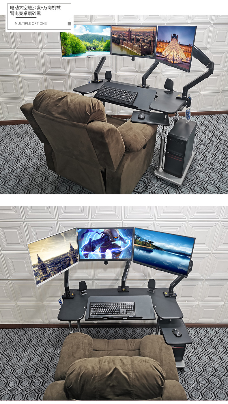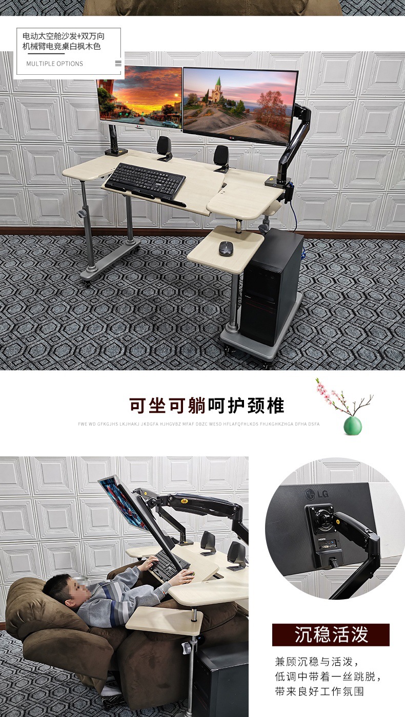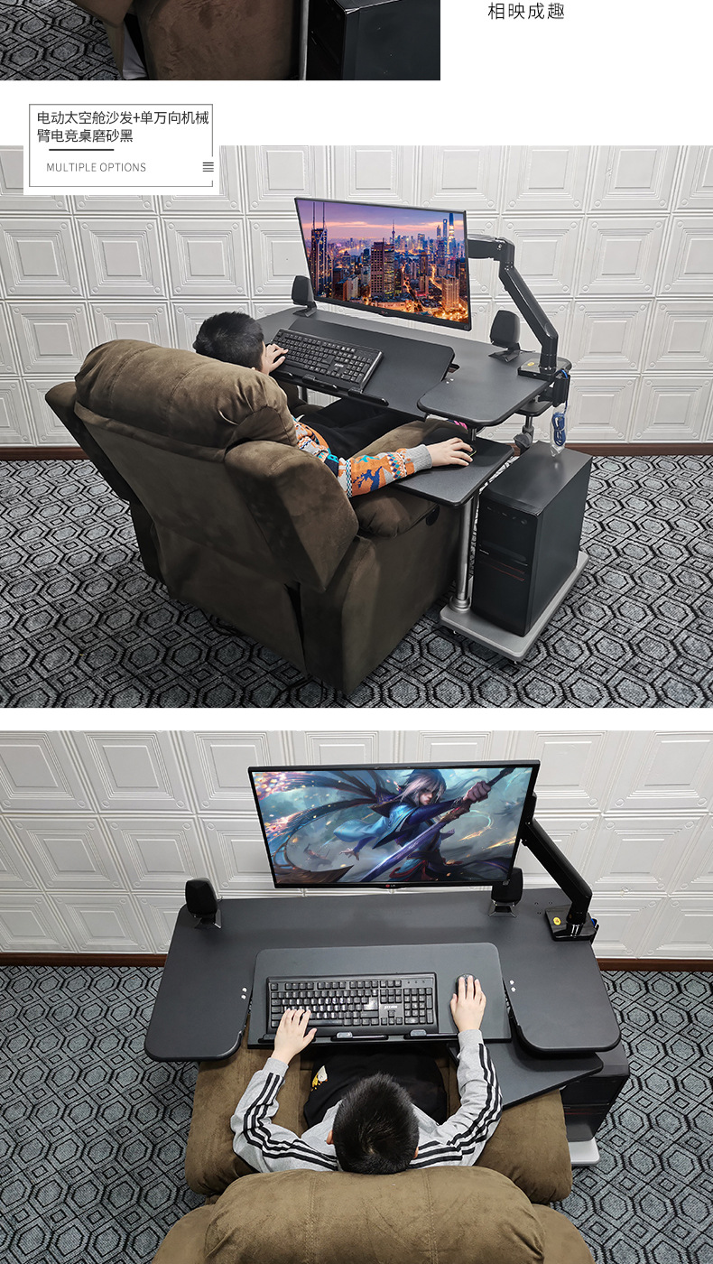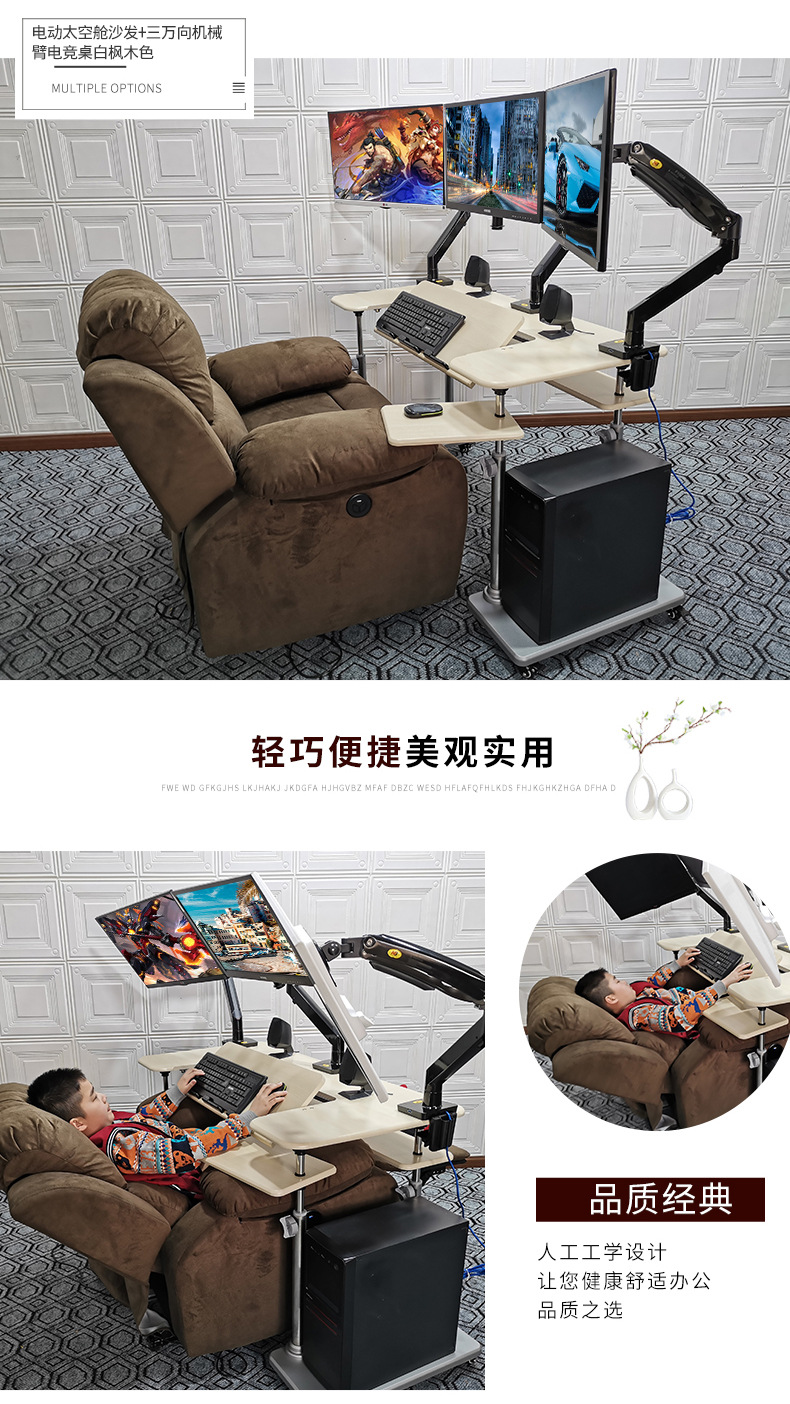 • 19. 신제품. 기울기 조절 키보드 트레이 게이밍 데스크 + 커피색 벨벳 전동 소파 + 싱글 로봇 팔 모델