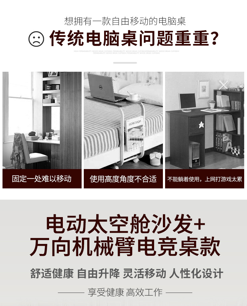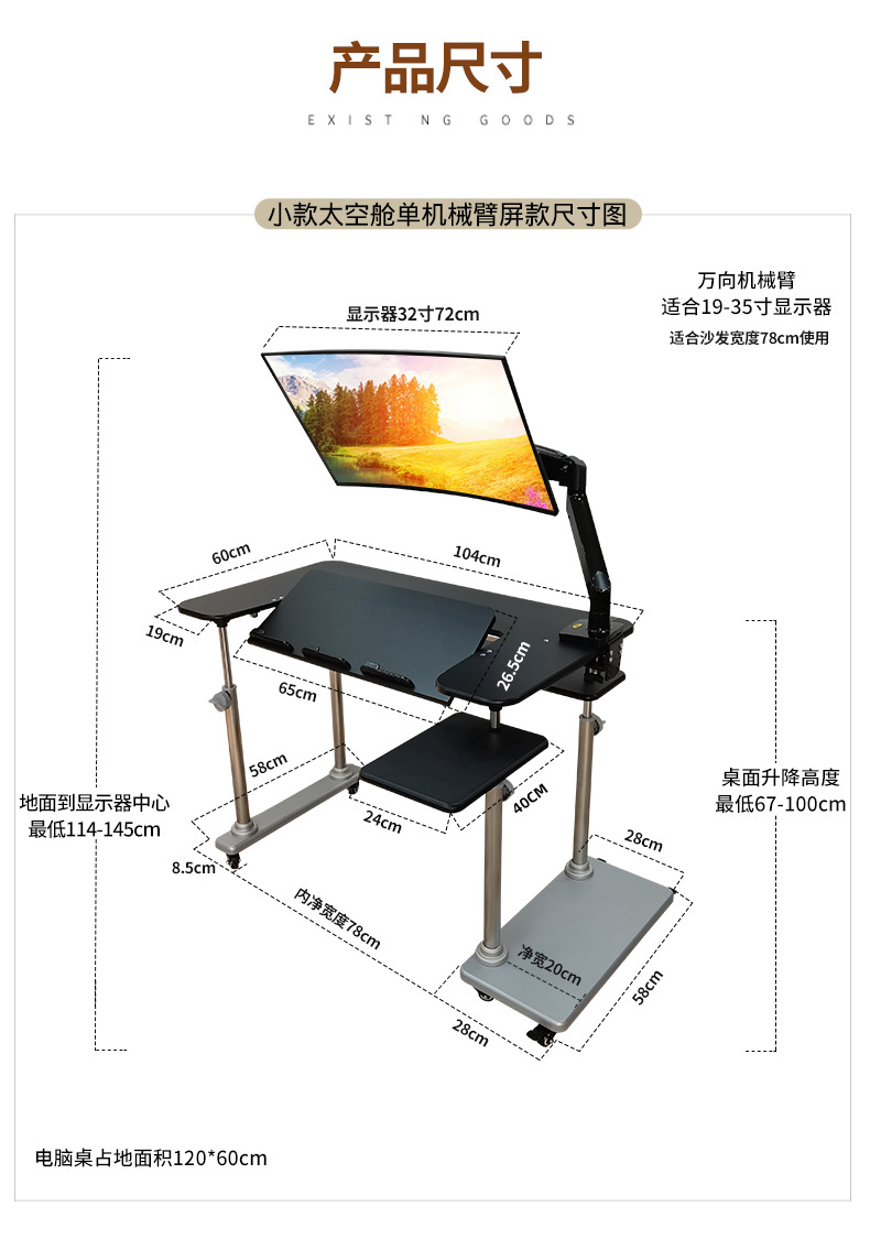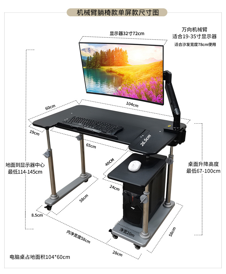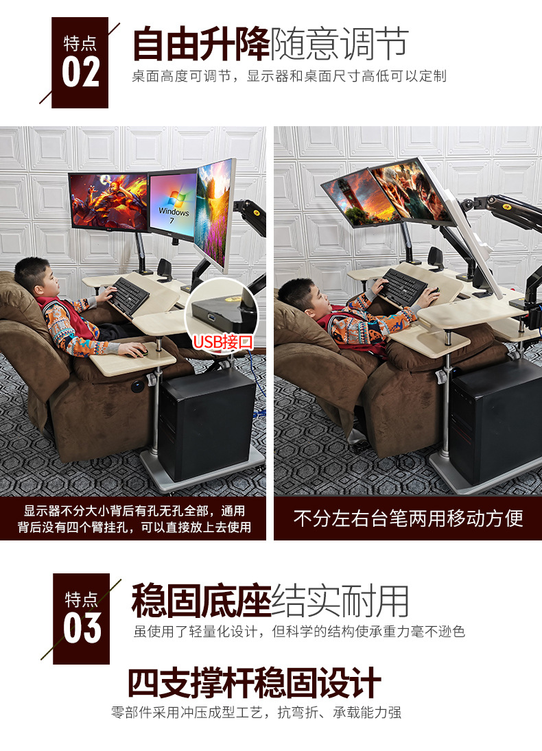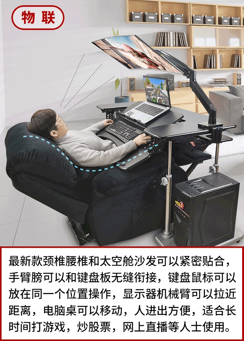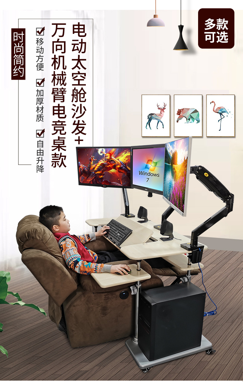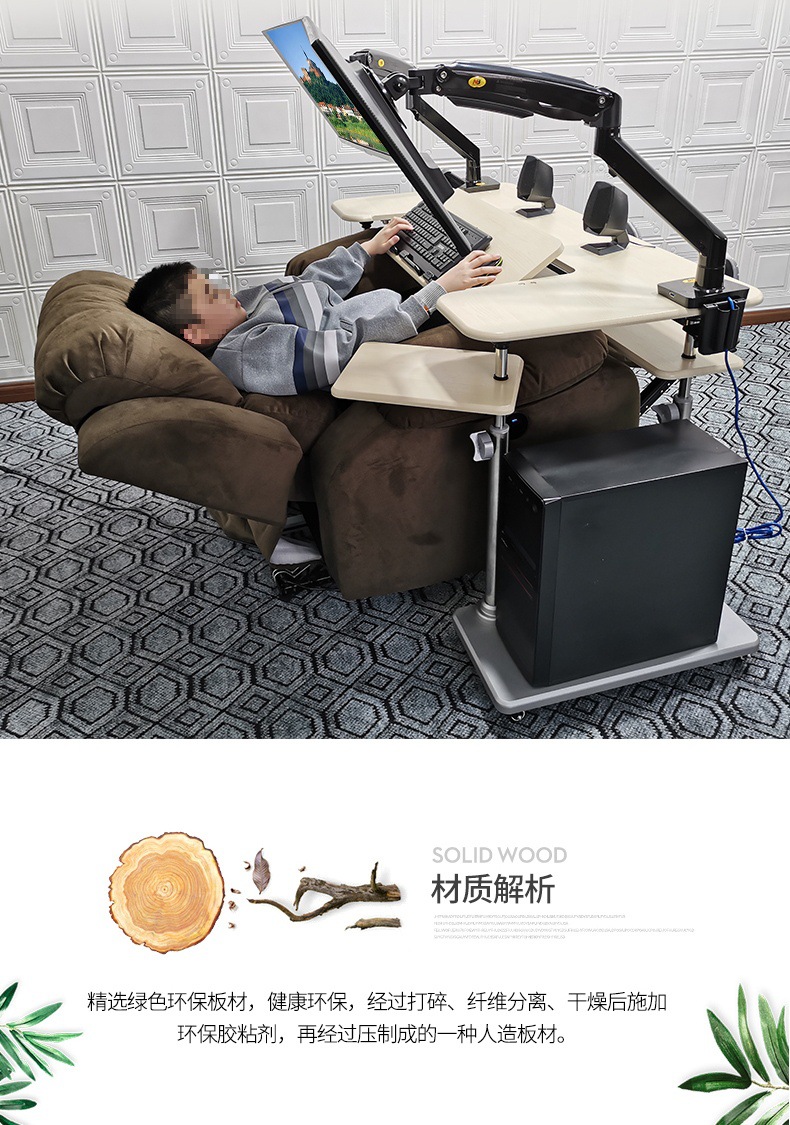 • 19. 신제품. 기울기 조절 키보드 트레이 게이밍 데스크 + 커피색 벨벳 전동 소파 + 싱글 로봇 팔 모델