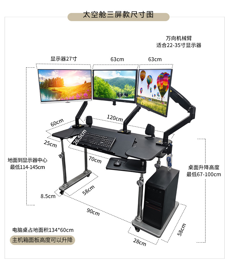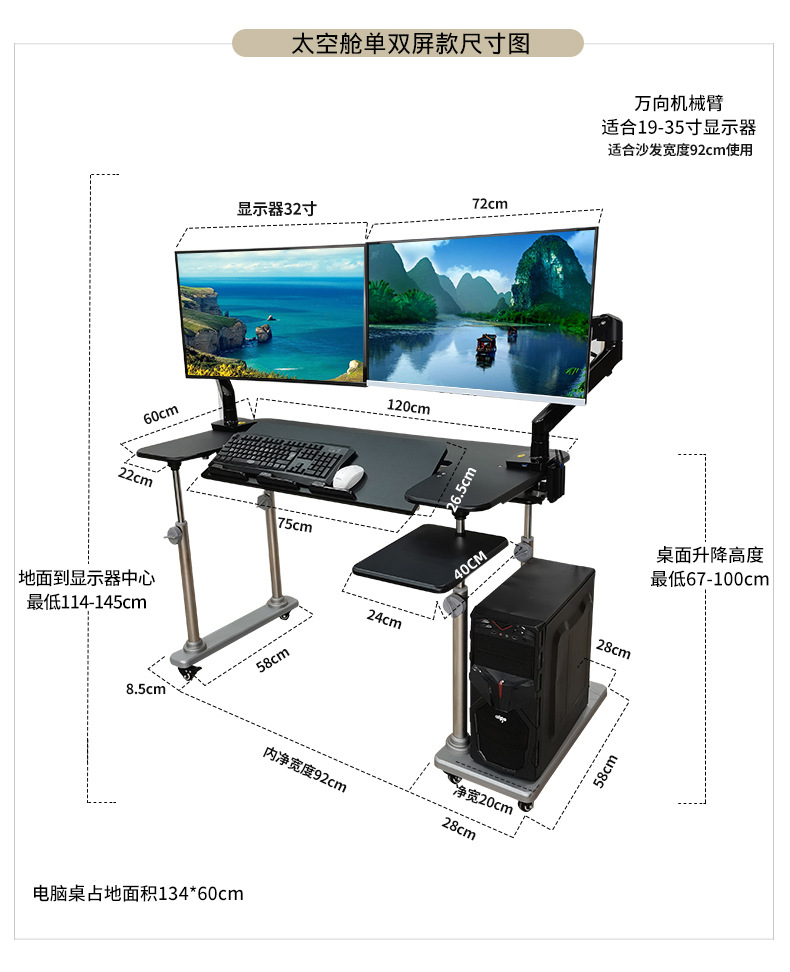 • 30. 데스크탑 매트 블랙 데스크탑 틸트 + 노트북 서스펜션 + 듀얼 로봇 팔 + 아치형 리클라이너 + 타격판