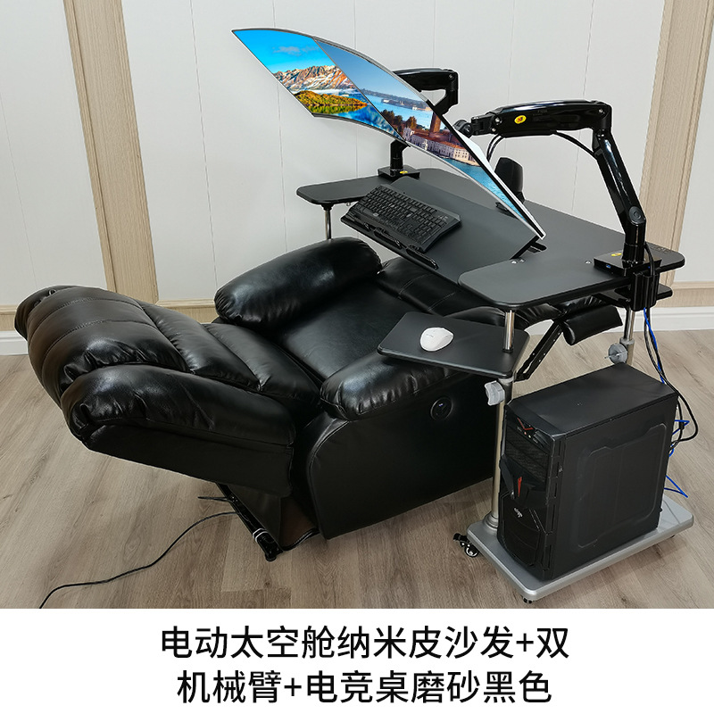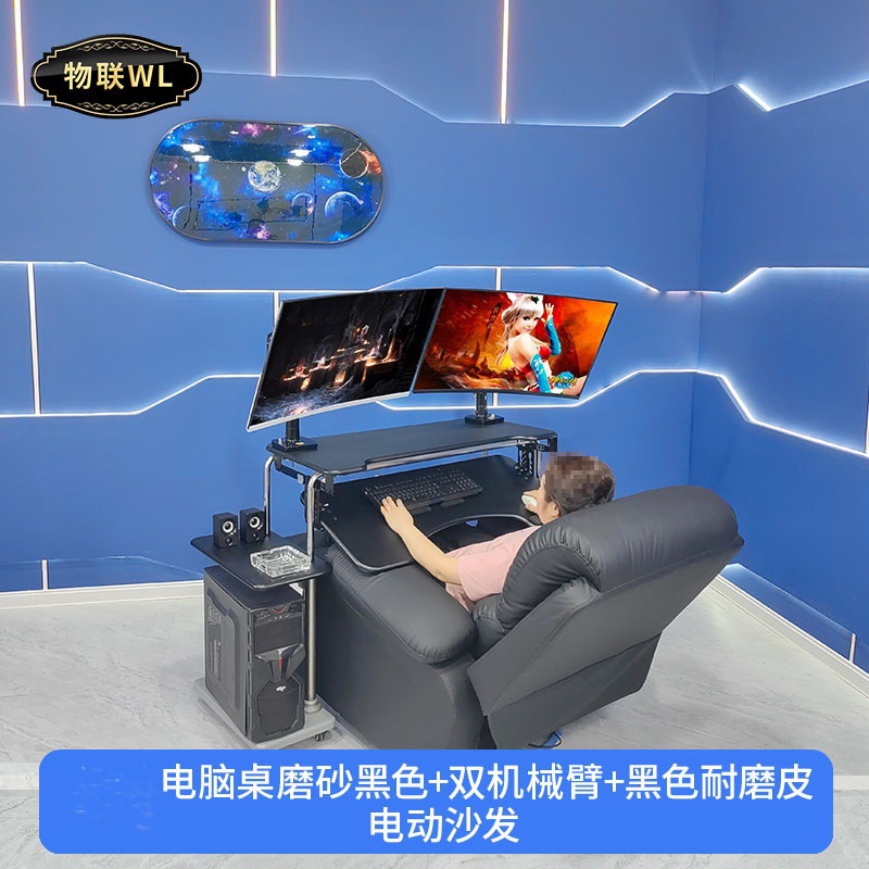 • 4. 구형 모델 더블 팔걸이 블랙 게이밍 테이블 + 싱글 로봇 팔 + 그레이 가죽 전동 소파 + 천 커버