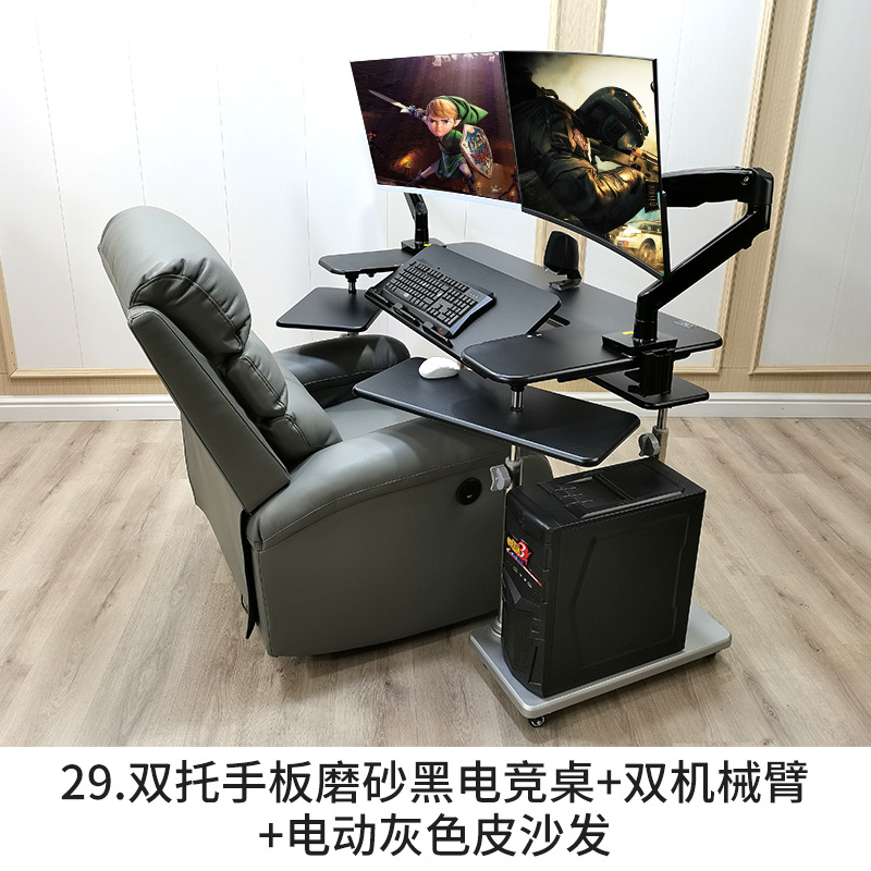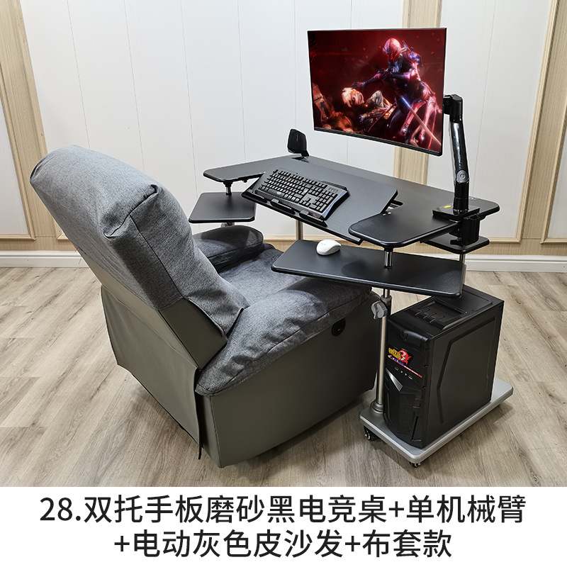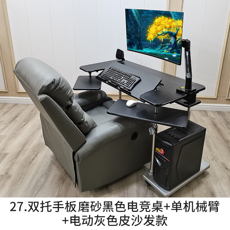 • 15. 구형 모델 더블 팔걸이 블랙 게이밍 테이블 + 싱글 로봇 팔 + 그레이 가죽 전동 소파