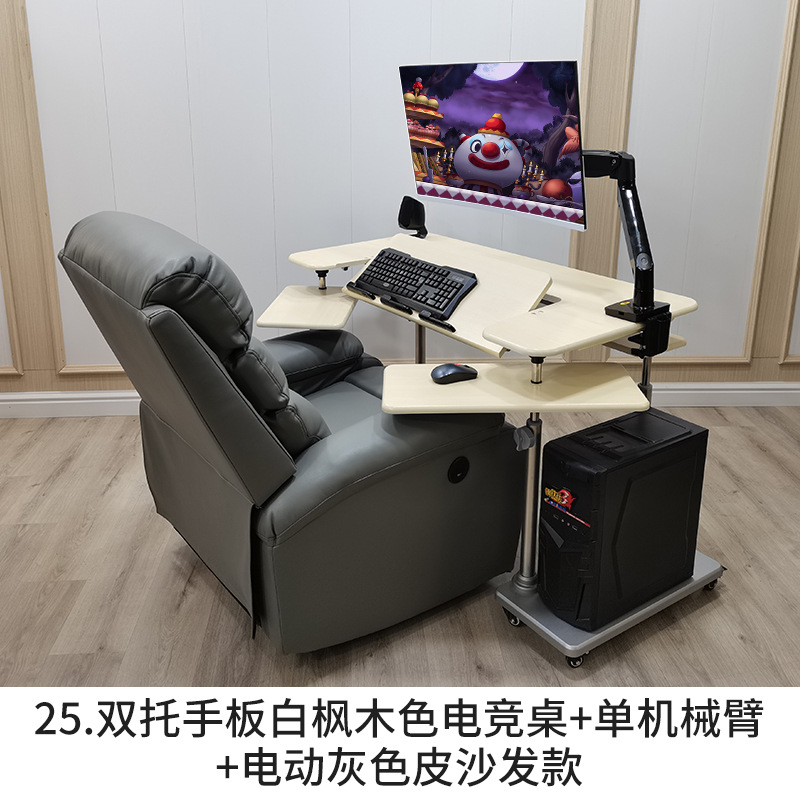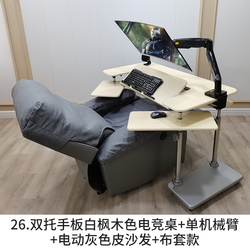 • 12. 구형 양손 받침대 화이트 메이플 색상 게이밍 데스크 + 싱글 로봇 팔 + 그레이 가죽 전동 소파