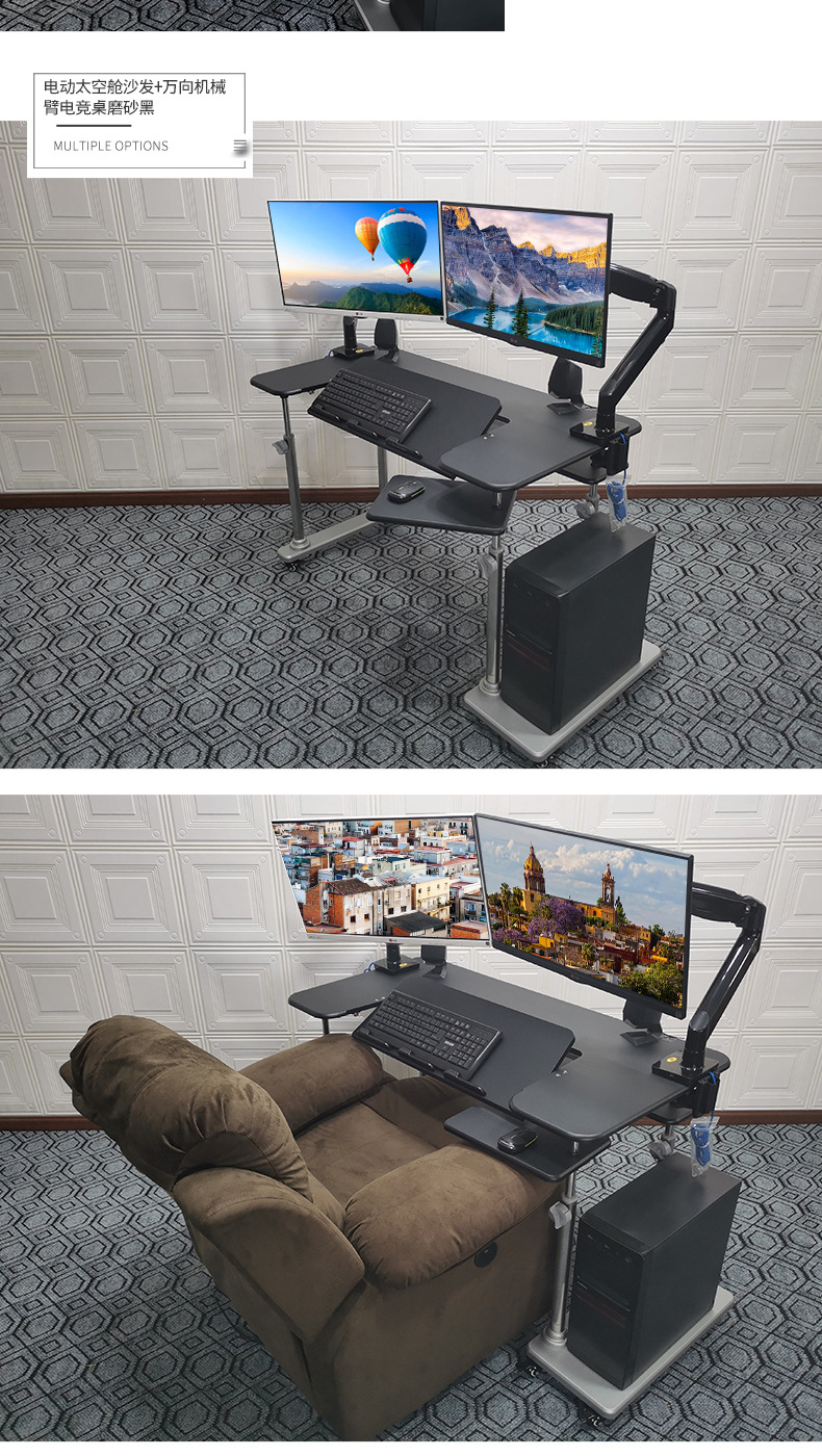 • 27. 데스크탑 틸트 컴퓨터 책상 매트 블랙 + 싱글 로봇 팔 + 블랙 내마모성 가죽 전기 소파 + 타악기