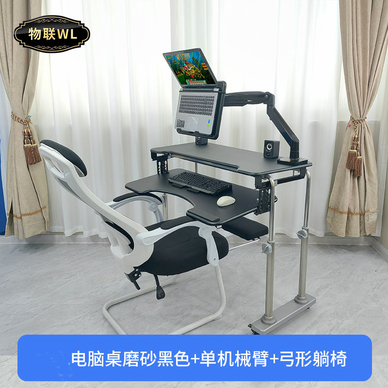 • 25. 데스크탑 기울어진 컴퓨터 책상 매트 블랙 + 단일 로봇 팔 + 노트북 걸이 플레이트 + 5성 회전 의자
