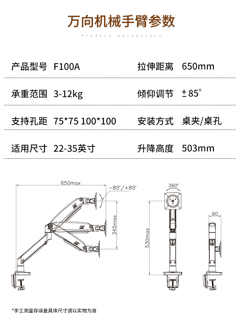 • 13.신형 틸트형 신축 확장 듀얼 로봇 팔 모델 – 무광 블랙