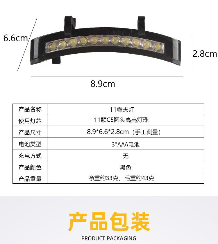국경 간 편리한 11LED 클립 캡 라이트 야간 낚시 라이트 3aaa 건전지 야외 하이킹 챙 라이트 조명