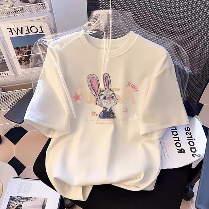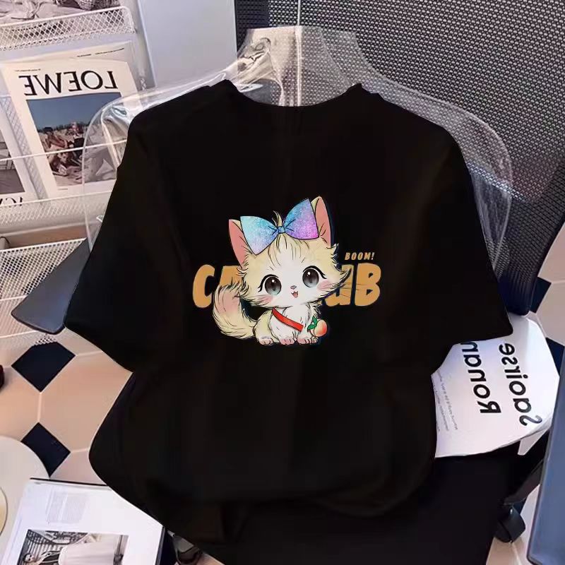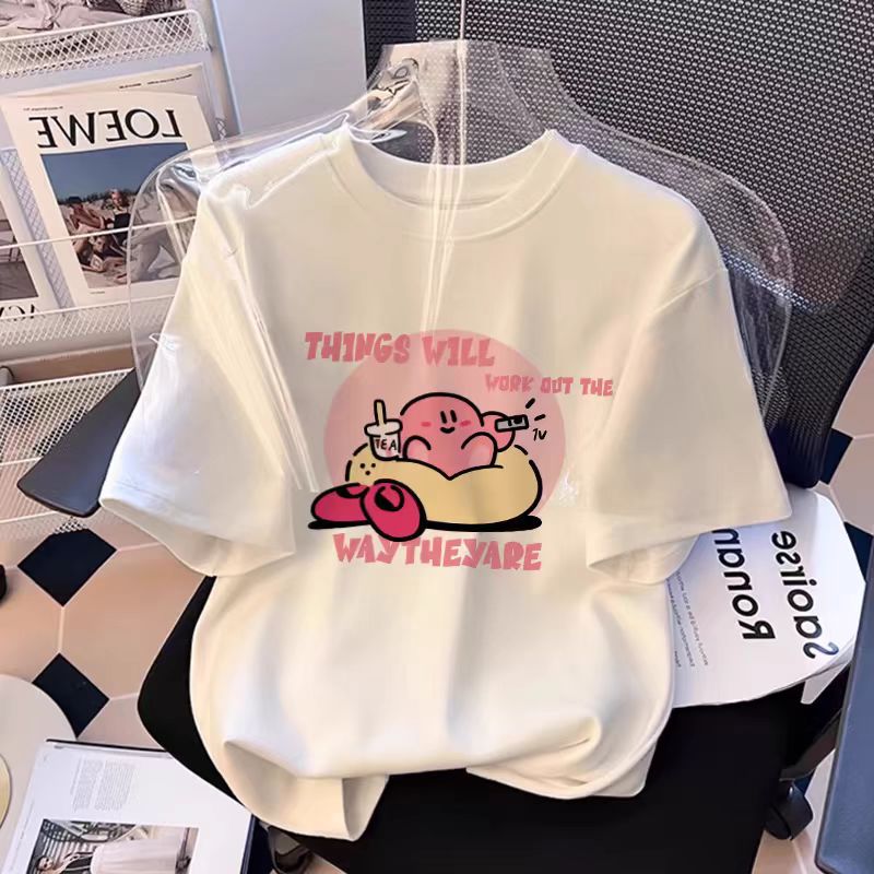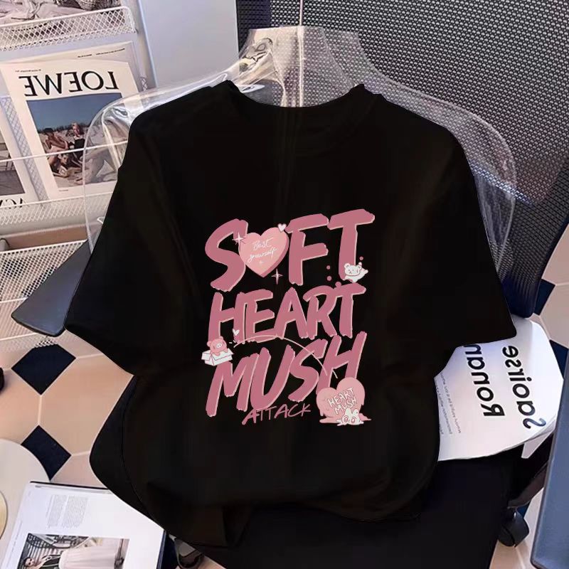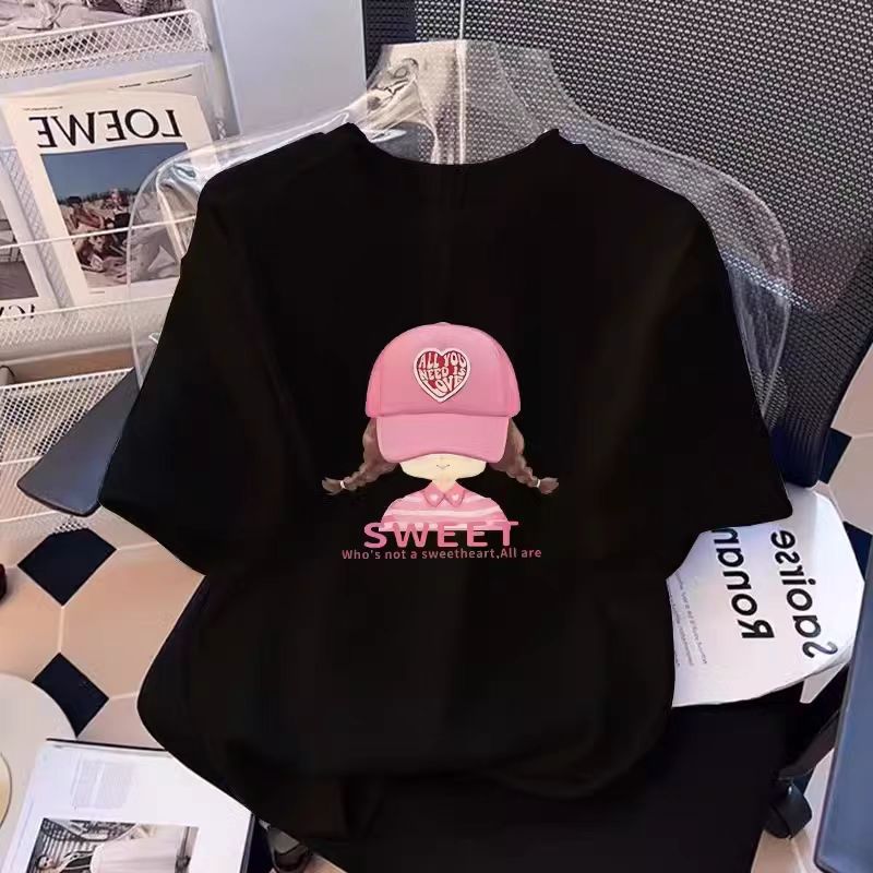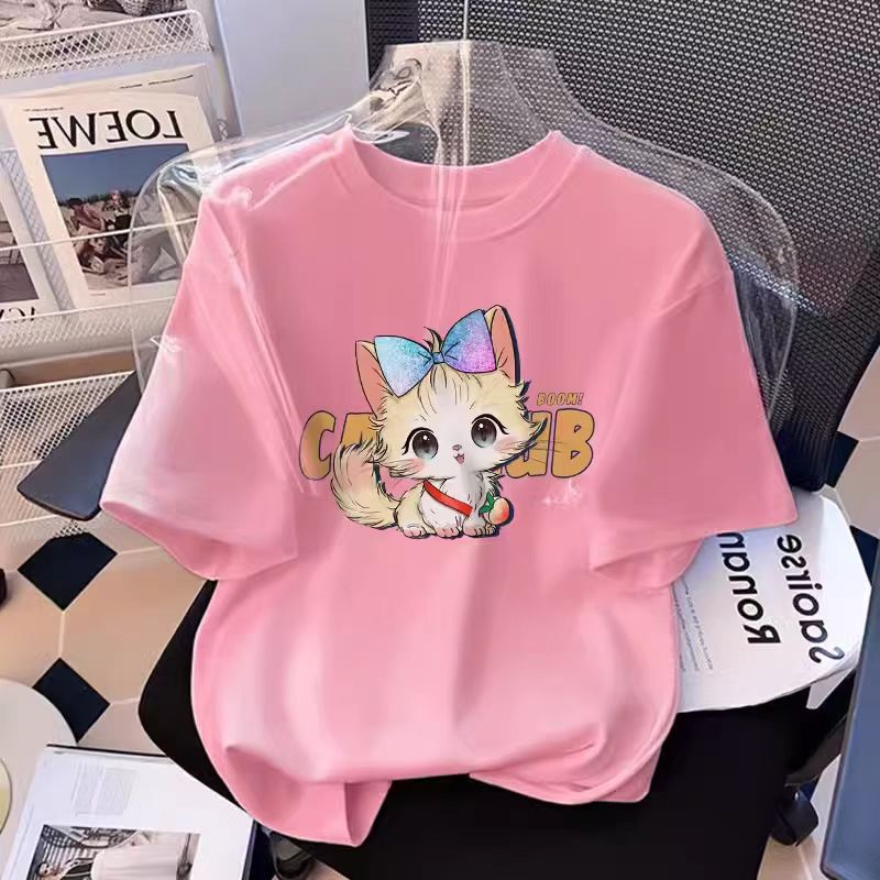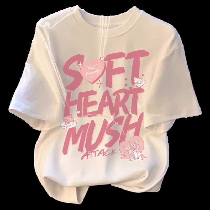 흰색 면 여학생 반팔 티셔츠 2025 여름 새로운 느슨한 탑 소녀 옷 여름 옷스토어 가기