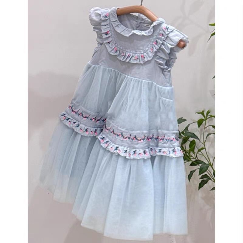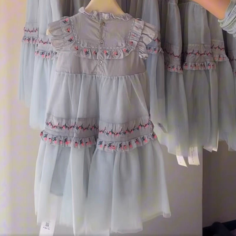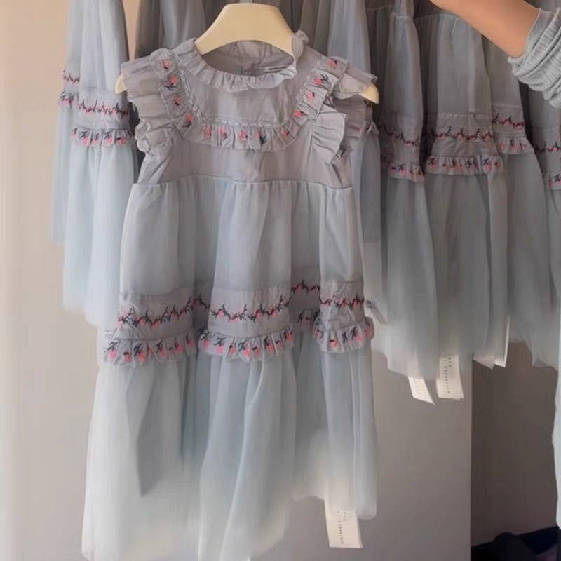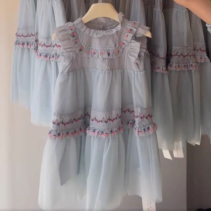 여아 드레스 2026 신상 여름옷 어린이 복고풍 자수 메쉬 공주 드레스 여아 궁궐풍 퍼프 드레스