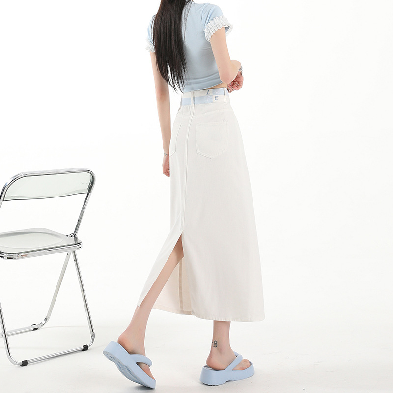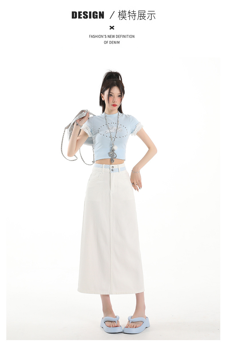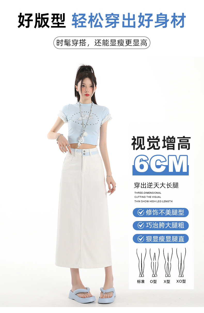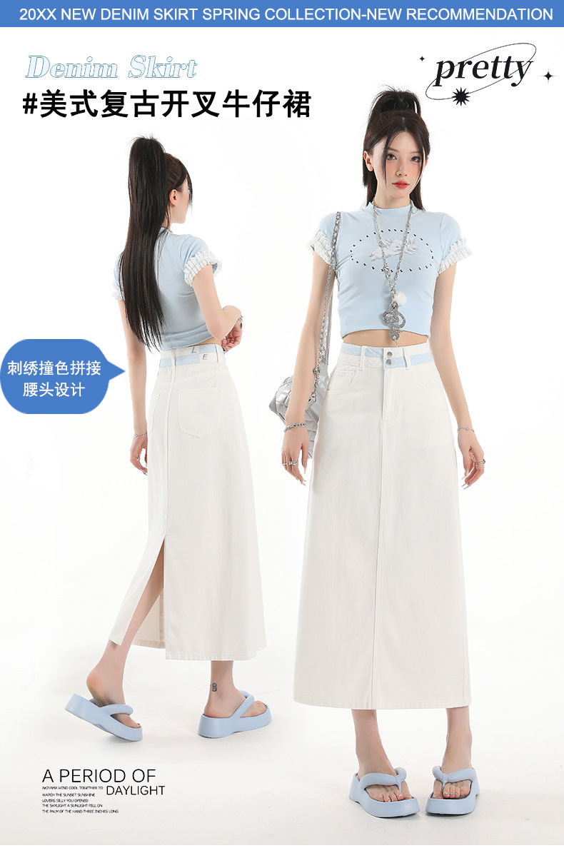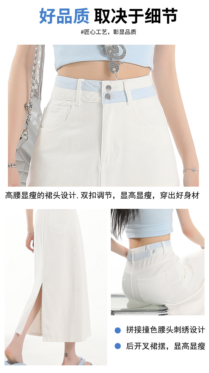 아이보리 데님 치마 여자 2025 여름 새로운 디자인 감각 분할 조커 중간 길이 스커트스토어 가기