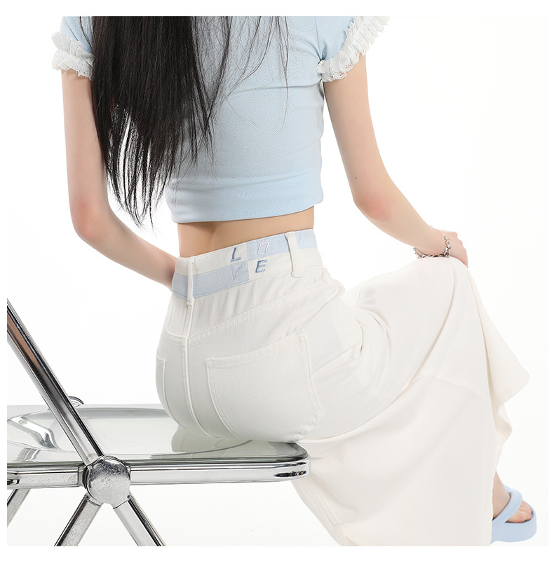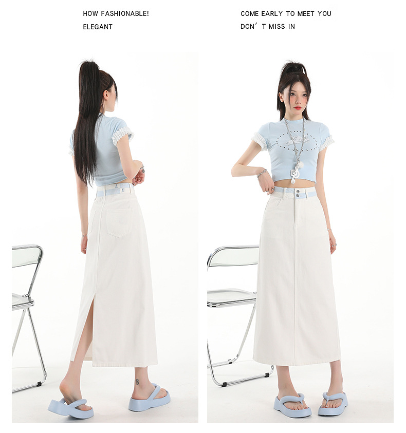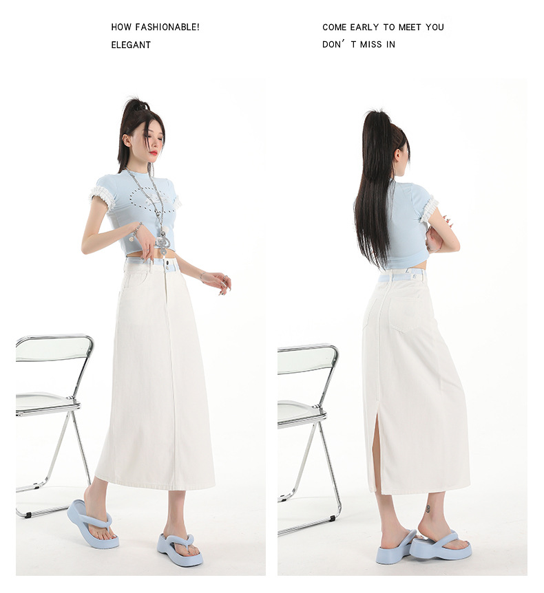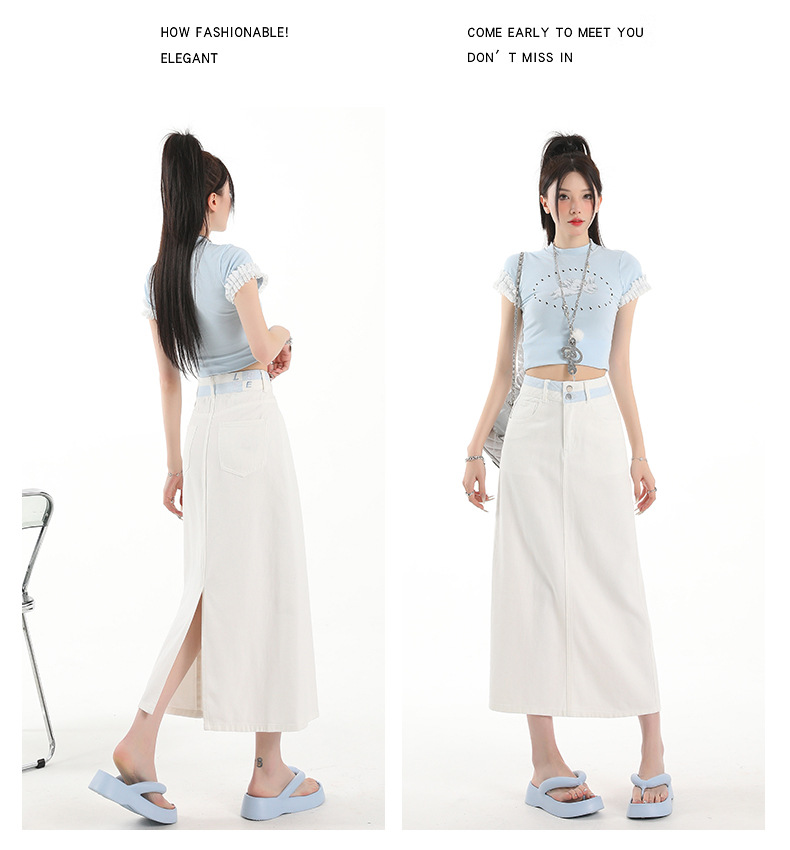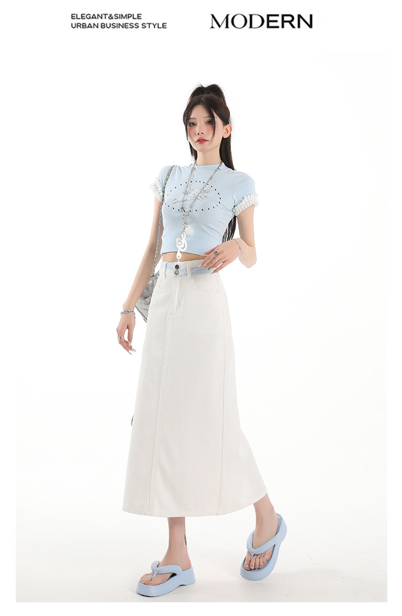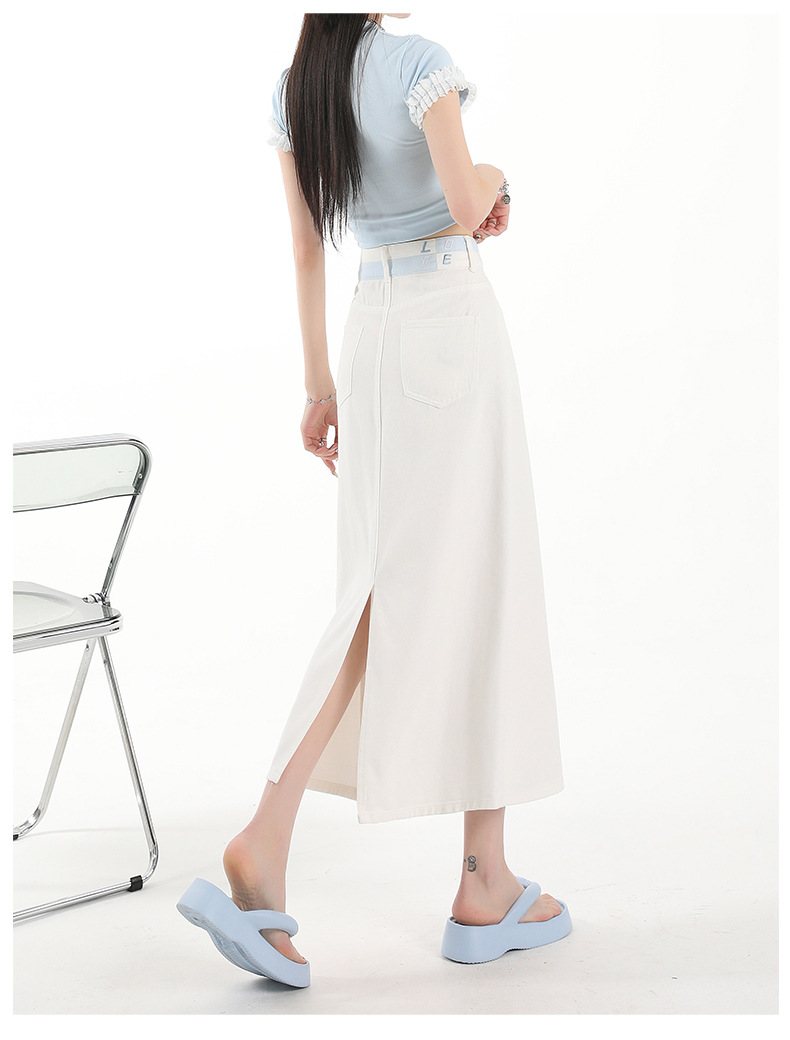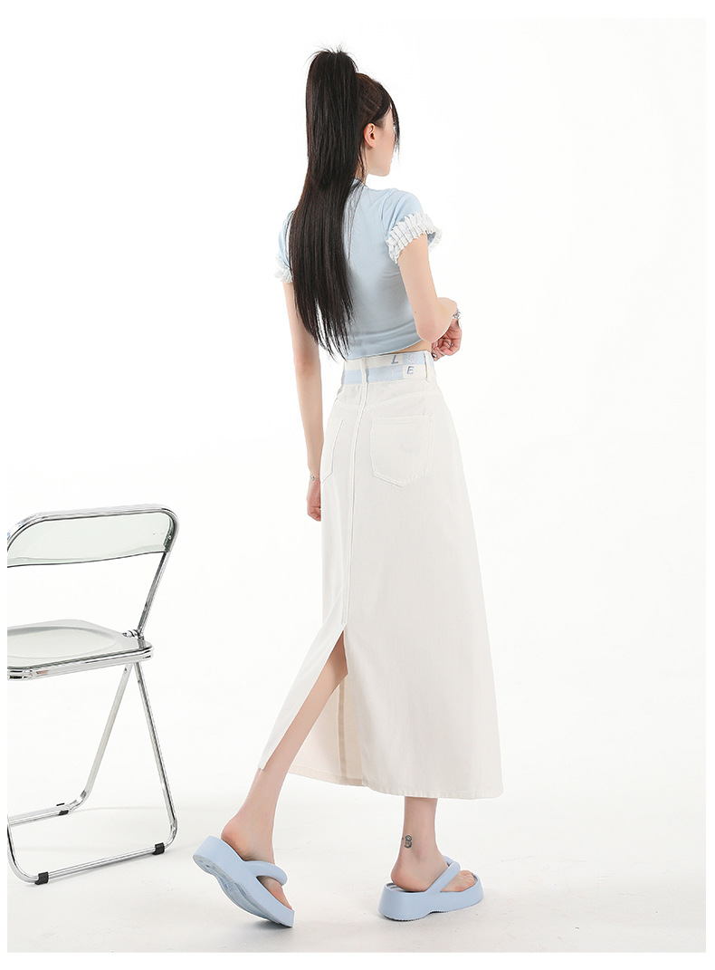 아이보리 데님 치마 여자 2025 여름 새로운 디자인 감각 분할 조커 중간 길이 스커트스토어 가기